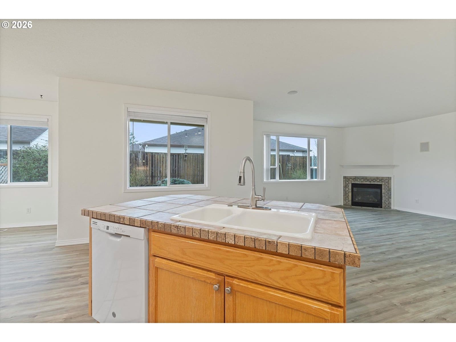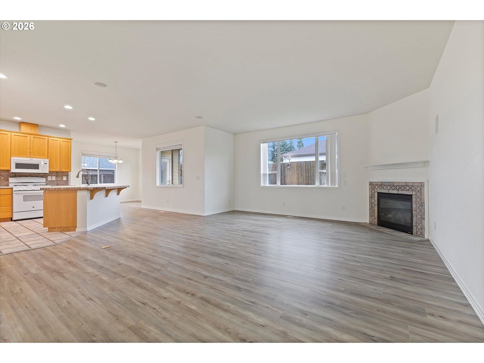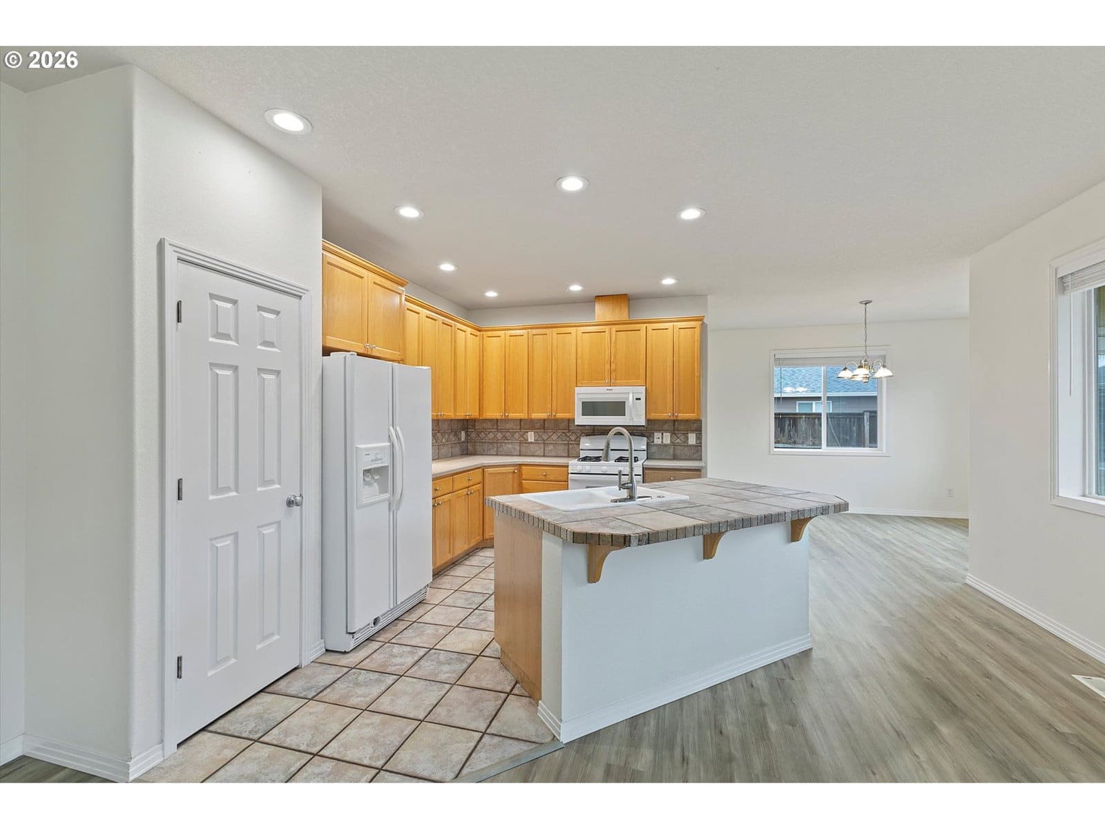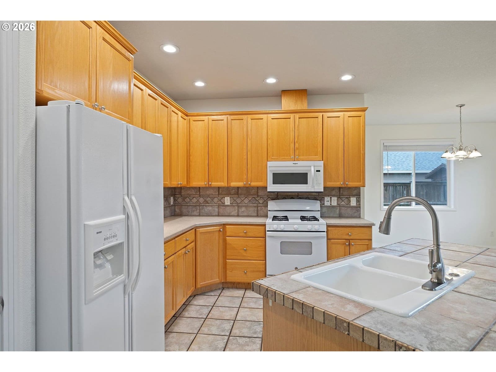 Welcome to 13204 Gaffney Lane, a beautifully updated single-level ranch home tucked into a quiet, desirable Oregon City neighborhood. Sitting on a spacious corner lot, this property offers great curb appeal with a manicured front lawn, ample parking, and gated RV parking. Inside, you’ll find a bright, open layout with high ceilings throughout, designed for both everyday living and entertaining. The living room features a cozy gas fireplace and flows seamlessly into the dining area and kitchen, with easy access to the backyard for true indoor/outdoor living. Recent upgrades include a new furnace & A/C, commercial-grade luxury vinyl plank flooring throughout, fresh interior paint, new water heater, & more, making this home completely turnkey. The three spacious bedrooms provide plenty of comfort, while an efficient floor plan ensures excellent use of space with generous closets and storage. Outside, the fully fenced backyard is a private retreat, complete with a custom stamped-concrete patio, raised garden beds, & a lush lawn, & gas connection for your BBQ, making this the perfect gathering place for those summer barbecues, or spending your time enjoying gardening, or simply relaxing. The large driveway, RV/Boat parking pad, & 2 car attached garage offer flexibility for parking, storage, or hobbies. Low monthly HOA dues of just $10 add extra appeal. Conveniently located near Gaffney Lane Elementary, as well as other Oregon City schools, parks, restaurants and shopping, this home offers both comfort and convenience. Completely move-in ready, this is a rare find you won’t want to miss!