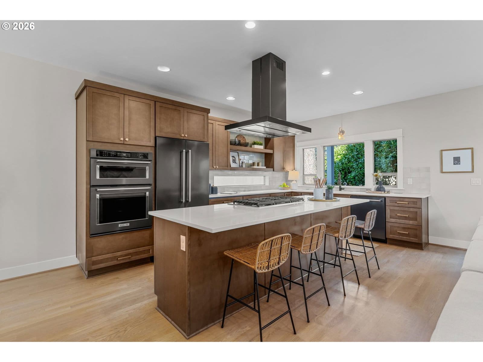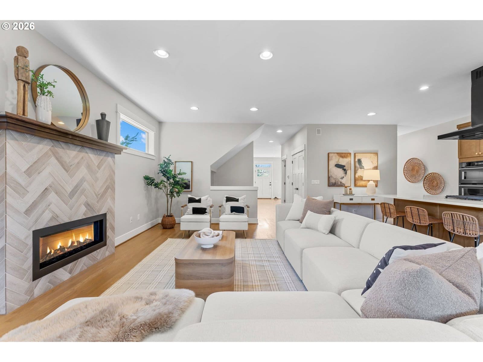 Welcome to 717 NE Beech Street, where modern construction meets the timeless charm of Portland’s beloved King/Sabin neighborhood. Built in 2016, this newer construction home offers the efficiency, layout, and amenities today’s buyers crave—all while being surrounded by the character, tree-lined streets, and community feel of one of Northeast Portland’s most historic enclaves. Ideally positioned near Irvington, Irving Park, and the vibrant energy of Alberta Arts District, this location delivers the best of city living.Spend your weekends exploring neighborhood boutiques, enjoying nearby bars and eateries, or unwinding at destination spas like Cascada—all just blocks from your front door.Inside, the home was designed for both everyday comfort and elevated entertaining. The heart of the home is the expansive open-concept kitchen, anchored by a massive island perfect for gatherings, meal prep, and conversation. Thoughtful finishes, generous storage, and seamless flow into the living area make this space ideal for hosting. The living room opens effortlessly to a covered back porch, creating a true indoor-outdoor experience that’s perfect for year-round entertaining in the Pacific Northwest.The main floor also features a soundproof den—ideal for remote work, creative space, or media room—a formal dining room for hosting memorable dinners, and a convenient butler’s pantry that enhances both function and style.Upstairs, the primary suite is a true retreat. Vaulted ceilings create an airy, expansive feel, while the spacious walk-in closet offers abundant storage. The spa-inspired bathroom features a walk-in shower so large it's "big enough to host a party," delivering both luxury and everyday indulgence.Just moments away, you’ll find Fremont Place Shopping Center featuring Whole Foods, local coffee shops, and popular restaurants. Additional highlights include an oversized garage with ample room for vehicles, gear, and storage, plus versatile flex space in the basement. [Home Energy Score = 5. HES Report at https://rpt.greenbuildingregistry.com/hes/OR10244145]