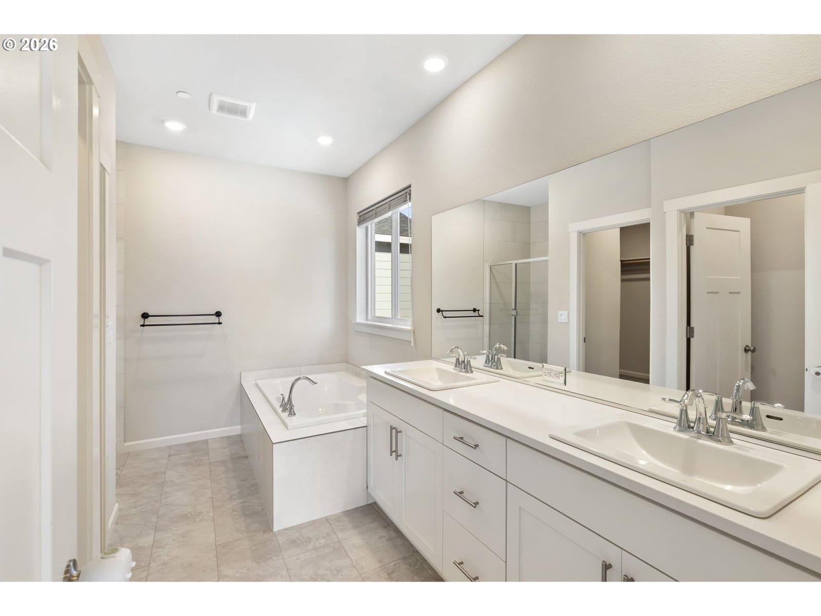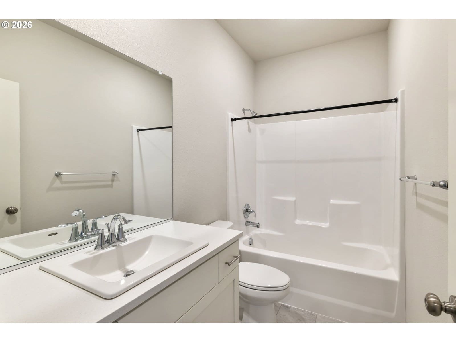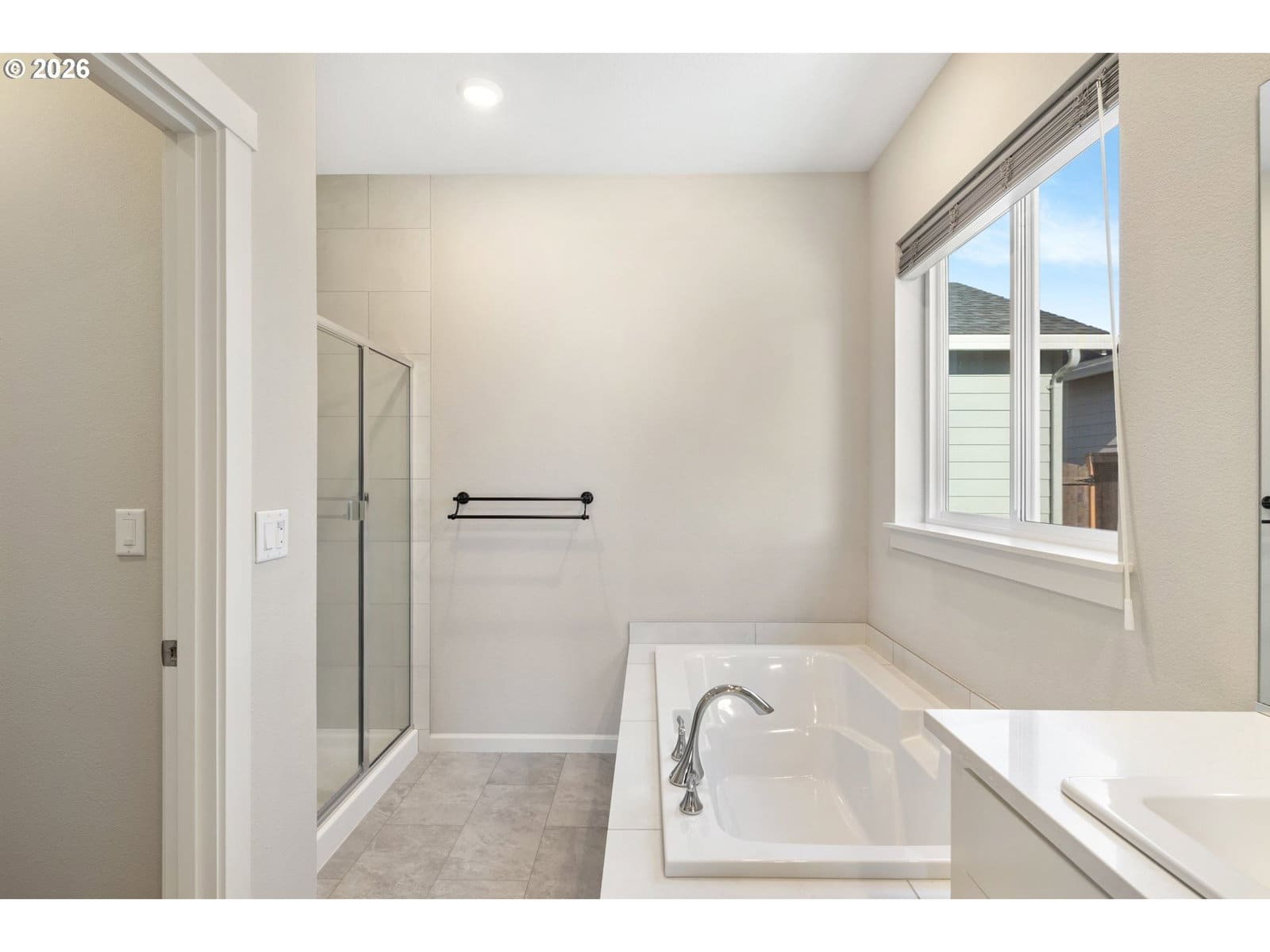 Almost new and built in 2024, this beautifully designed single-level home offers 4 bedrooms and a 3-car garage in a desirable Ridgefield neighborhood. The spacious great room features a cozy gas fireplace and flows seamlessly into the kitchen and dining area, creating an ideal space for everyday living and entertaining. The kitchen is thoughtfully appointed with quartz countertops, a large island, induction cooktop, stainless steel appliances, and a pantry. The private primary suite boasts a spa-inspired bathroom complete with a soaking tub, walk-in shower, double sinks, and an expansive walk-in closet. Step outside to a fully fenced backyard featuring a covered patio with extended concrete—perfect for relaxing or hosting gatherings. Nestled in a quiet community with walking trails, a park, and basketball court, this home is just minutes from shopping, dining, and convenient freeway access. Modern comfort, style, and location all in one exceptional property.