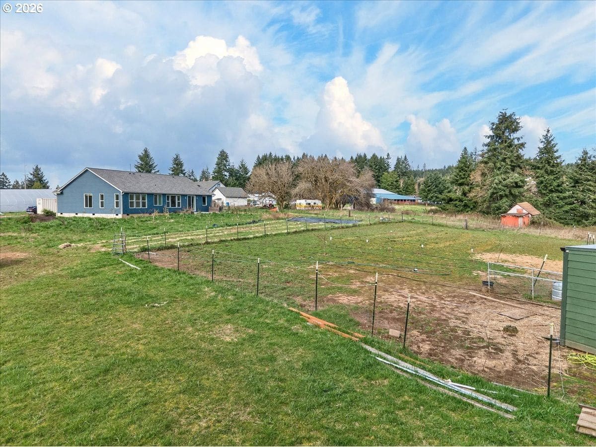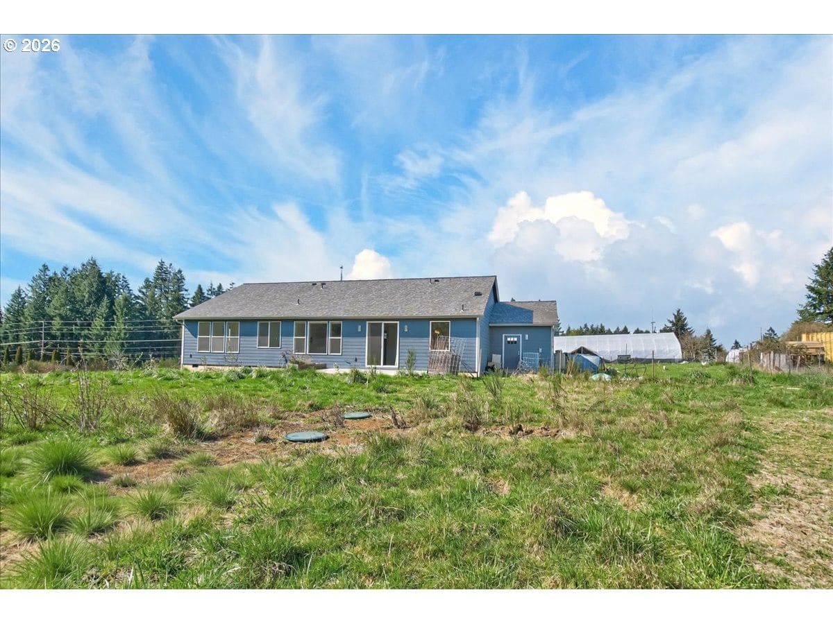 Beautifully built one-level home on 1.74 acres in Castle Rock, offering the perfect blend of comfort, space, and small-farm living. This 4-bedroom, 2-bath home features 2,699 sq. ft., a 3-car garage with charging station, A/C, double water heaters, leathered black pebble granite countertops, and a double-wall catalytic converter woodstove for efficient warmth.Designed for a true lifestyle property, the grounds include a 3,600 sq. ft. commercial automated high tunnel/grow tunnel with double 6 mil poly walls, along with a large chicken coop and established plantings already in place. Current crops include 2,500 garlic plants, 400 raspberries, 55 olive trees, 55 table grape vines, and fruit trees such as persimmon, apple, pear, gooseberry, pomegranate, and elderberry.There is also possible additional dwelling unit potential, offering even more flexibility for future use. Enjoy the opportunity to live, grow, and garden on a beautiful property with room to expand your vision.