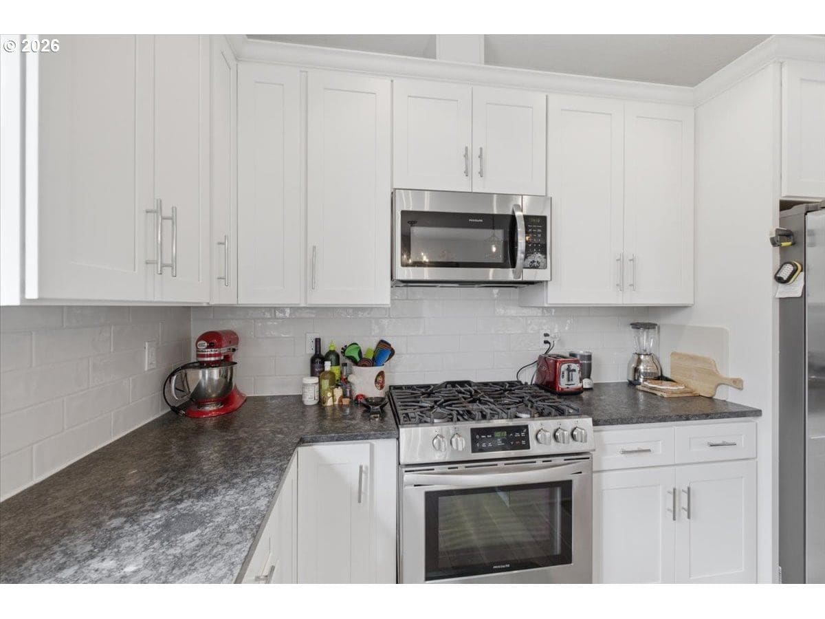 Single level home w/ spacious great room floor plan. Includes white kitchen cabinetry, gas range, leathered granite countertops and kitchen island. 9 ft ceilings throughout creates an open feel. Features include RV parking, fenced yard, beautiful perennial garden beds and covered patio for outdoor living this summer. Solar panels are included and are paid off.