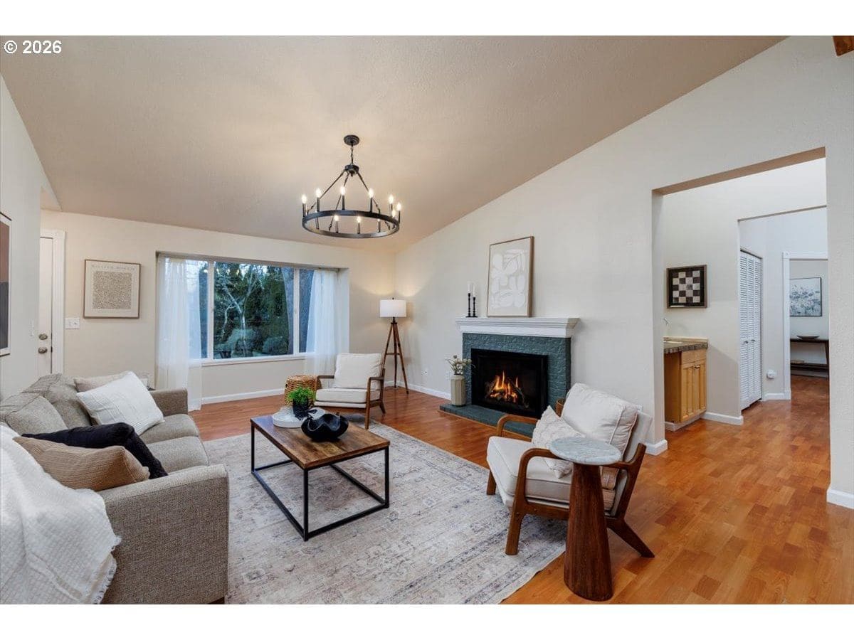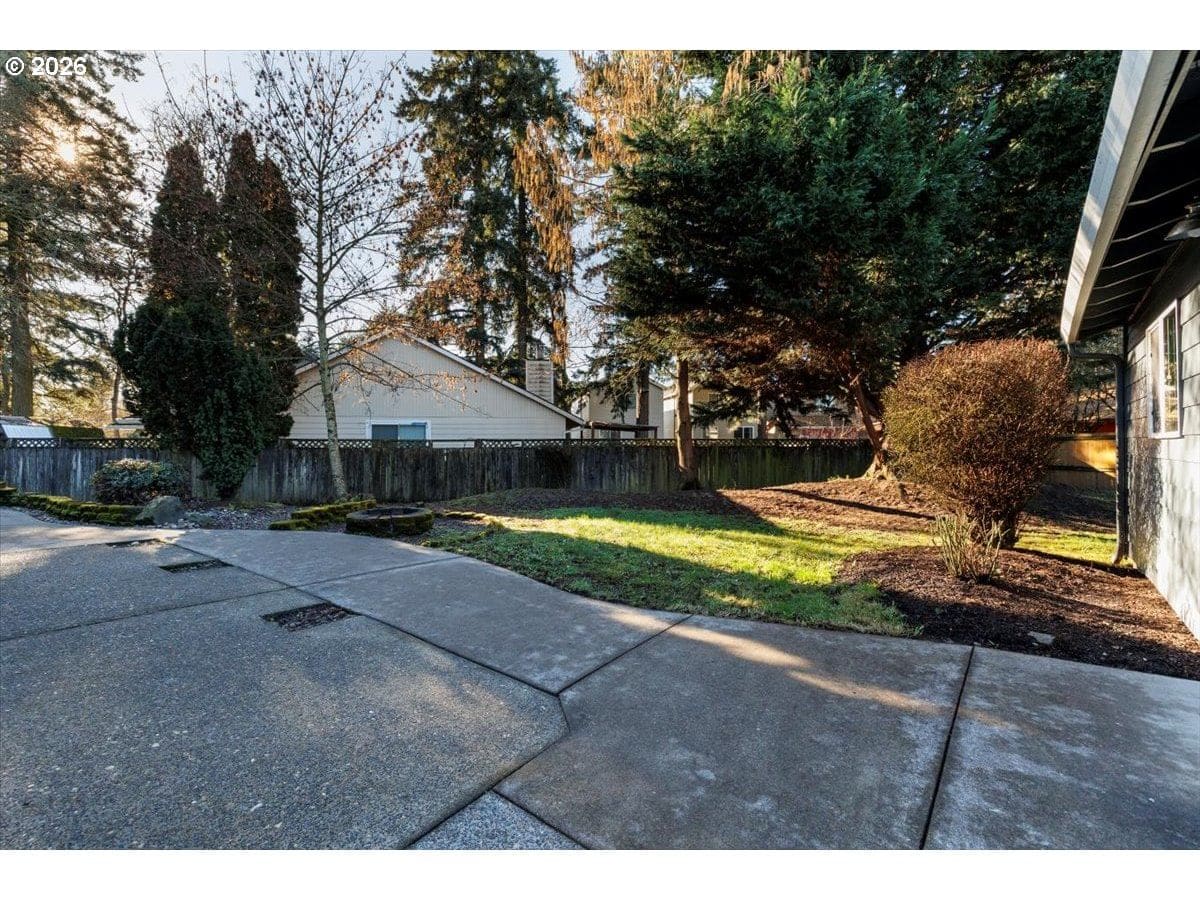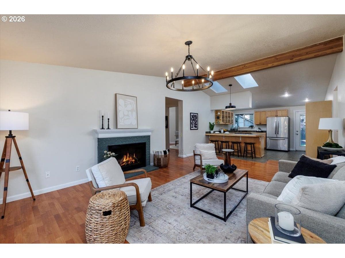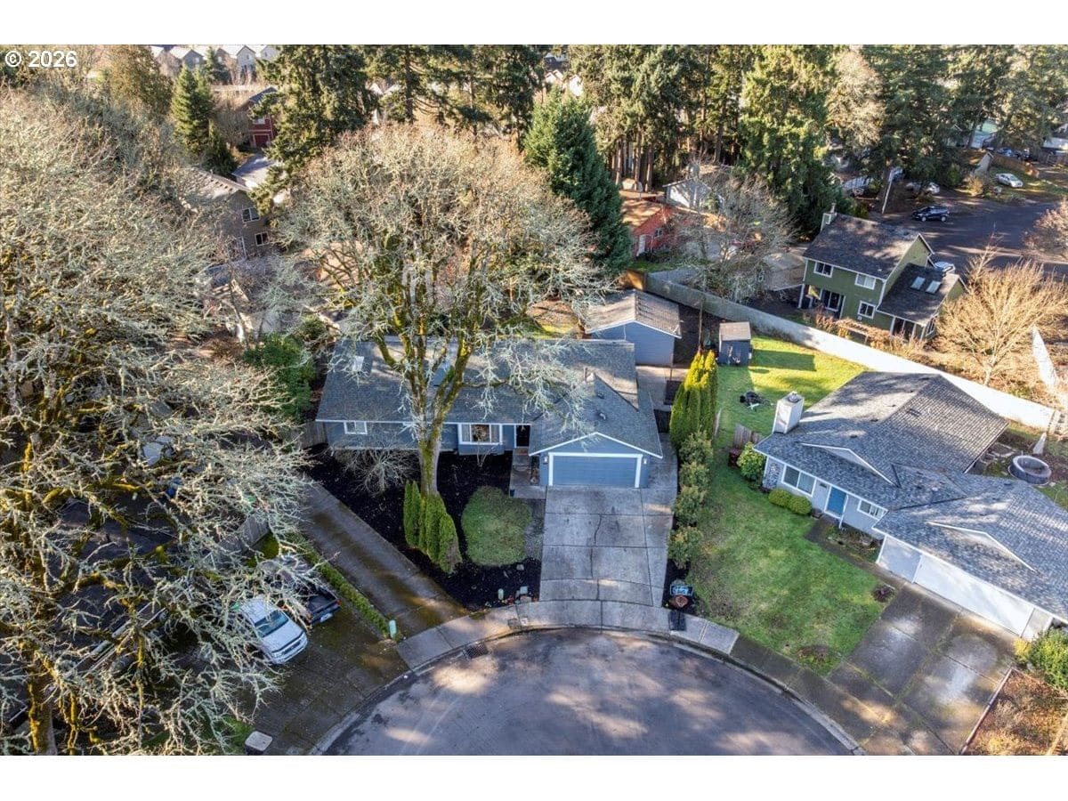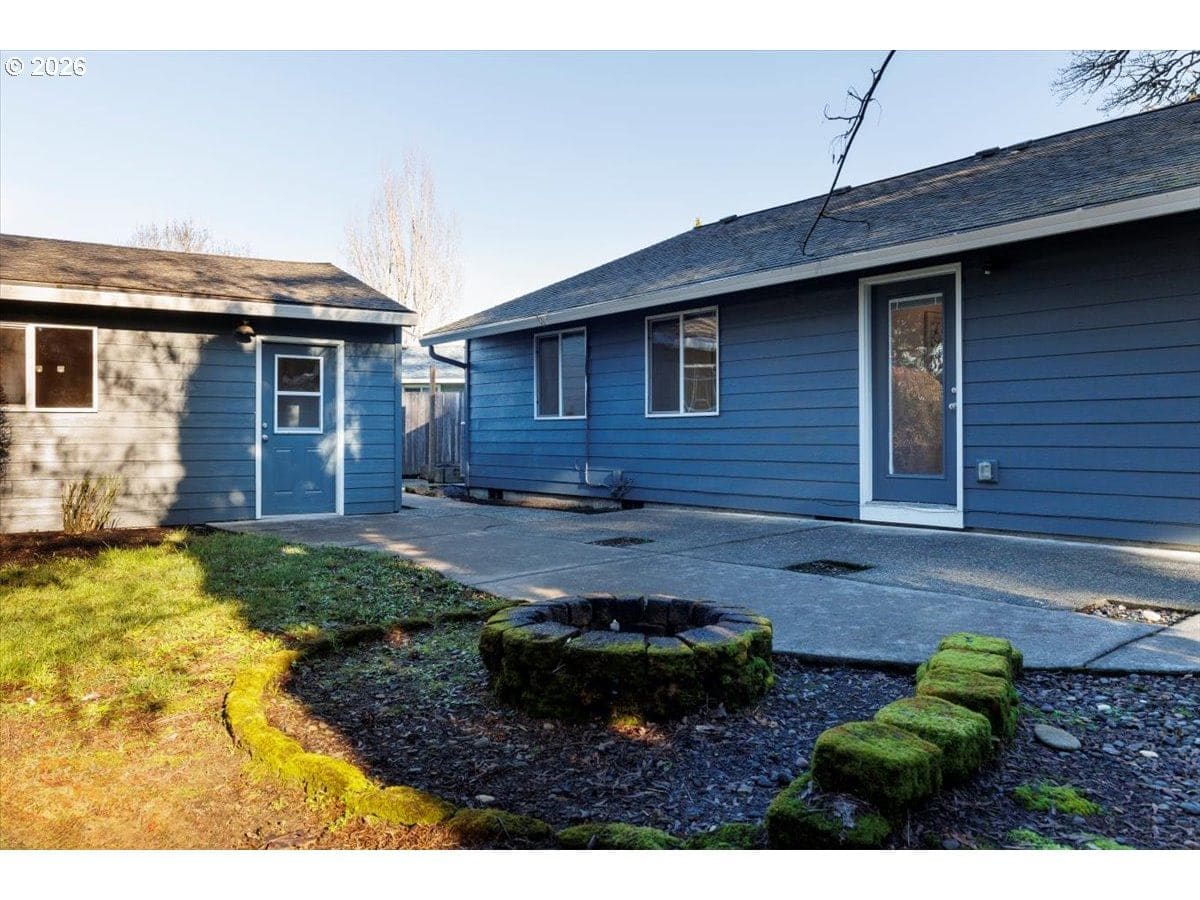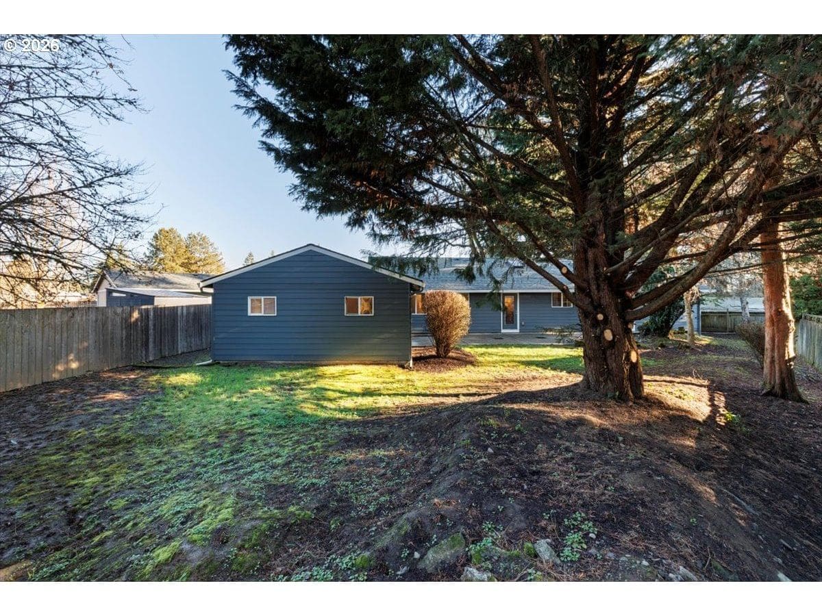 Enjoy easy one-level living in this spacious home tucked away on a quiet cul-de-sac. Vaulted ceilings and skylights create a bright, airy atmosphere throughout.Designed with flexibility in mind, the home features two primary suites plus three additional bedrooms—ideal for multigenerational living, guests, or work-from-home needs. The vaulted great room is the heart of the home, complete with a cozy wood-burning fireplace and open to the kitchen, which offers stainless steel appliances and abundant cabinet space. Freshly painted interior and exterior, updated. hall bath, new light fixtures throughout.Step outside to a fully fenced backyard with a patio, fire pit, and mature landscaping—perfect for relaxing or entertaining. The heated 415 sq ft outbuilding provides incredible versatility and can serve as a home office, playroom, studio, workshop, storage space, or your own private retreat. [Home Energy Score = 4. HES Report at https://rpt.greenbuildingregistry.com/hes/OR10243359]