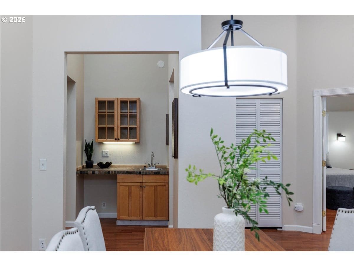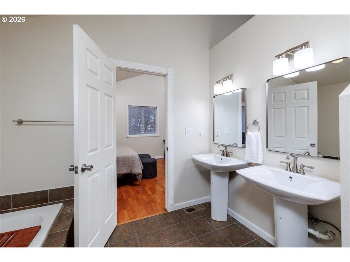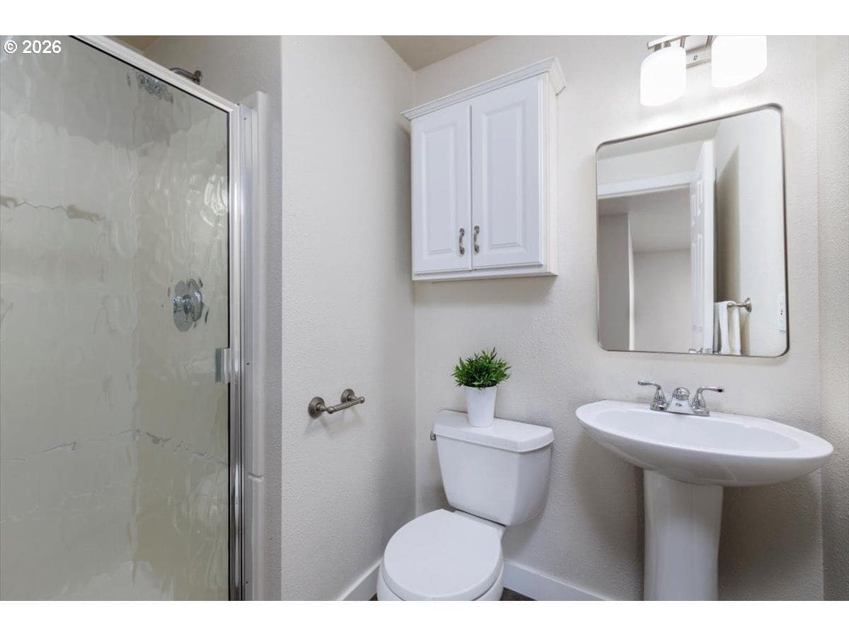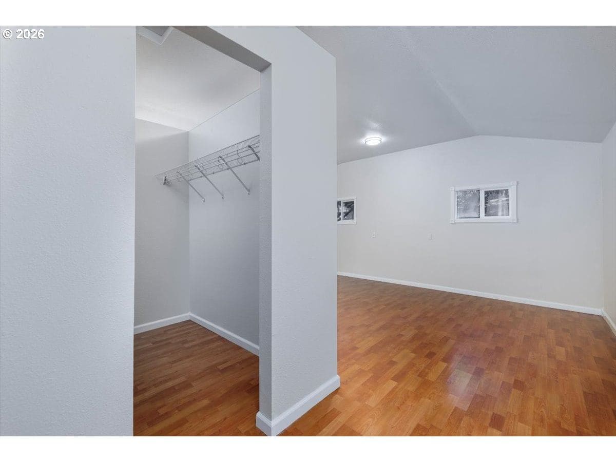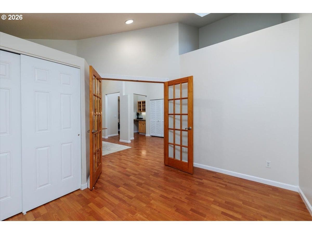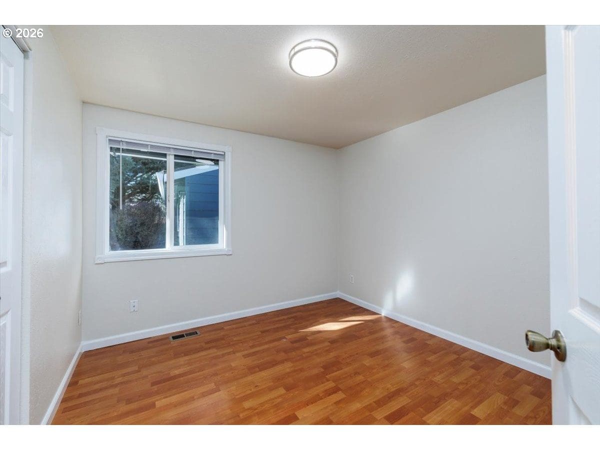 Enjoy easy one-level living in this spacious home tucked away on a quiet cul-de-sac. Vaulted ceilings and skylights create a bright, airy atmosphere throughout.Designed with flexibility in mind, the home features two primary suites plus three additional bedrooms—ideal for multigenerational living, guests, or work-from-home needs. The vaulted great room is the heart of the home, complete with a cozy wood-burning fireplace and open to the kitchen, which offers stainless steel appliances and abundant cabinet space. Freshly painted interior and exterior, updated. hall bath, new light fixtures throughout.Step outside to a fully fenced backyard with a patio, fire pit, and mature landscaping—perfect for relaxing or entertaining. The heated 415 sq ft outbuilding provides incredible versatility and can serve as a home office, playroom, studio, workshop, storage space, or your own private retreat. [Home Energy Score = 4. HES Report at https://rpt.greenbuildingregistry.com/hes/OR10243359]