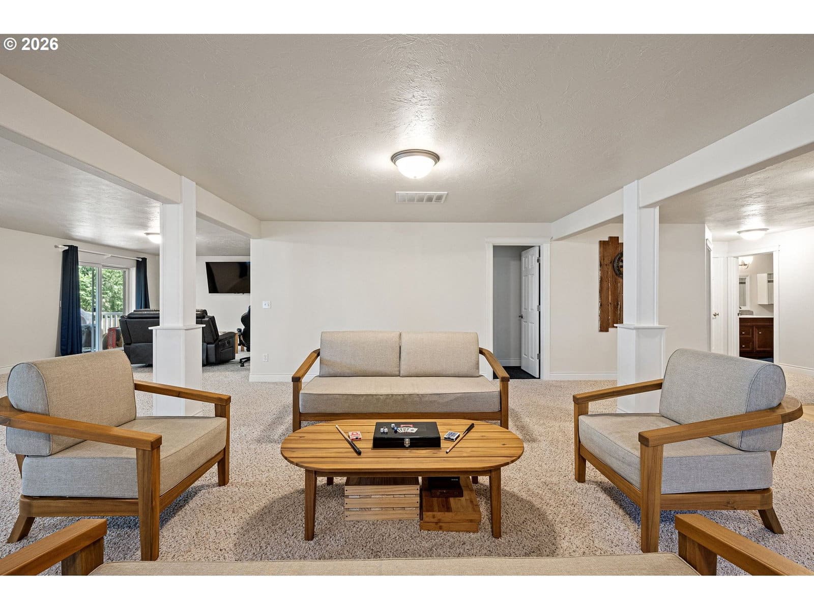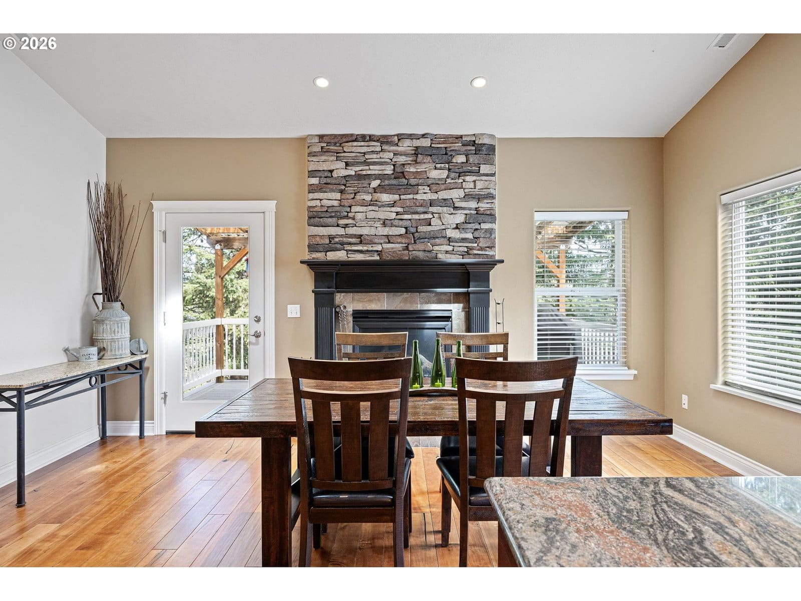 Tucked away on a quiet dead end road, this exceptional custom home offers a rare blend of privacy, sophistication, and thoughtful design. Rich hardwood floors, vaulted ceilings, and expansive windows create a light filled, inviting atmosphere. The chef’s kitchen is designed for both entertaining and everyday living, featuring granite solid surface countertops, tile backsplash, extensive cabinetry, and abundant storage. Enjoy a professional grade Monogram gas range with griddle and grill, pot filler, double ovens/convection oven, stainless appliances, and an expansive island with prep sink, garbage disposal, and double drawer beverage refrigerator. Multiple pantry spaces add convenience. The kitchen flows seamlessly into the dining and living areas, where a gas fireplace and access to a covered Trex deck create ideal indoor/outdoor living. The main level offers true single level living with three bedrooms, including a private primary suite with vaulted ceilings, walk in closet, and ensuite bath with spa like soaking tub, walk in shower, and double sinks. An oversized laundry room includes extensive cabinetry, utility sink, and exterior access. The lower level features a massive family/bonus room with wet bar, sink, refrigerator, storage, two additional bedrooms, full bath, and slider to the deck, perfect for entertaining or multi generational living. This level offers flexibility without compromise. Outdoor spaces include two tiers of Trex decking with gas hookups for BBQ's/fire pits, easy maintenance grounds with WiFi-controlled (You can control it from your phone!) B-hyve irrigation that serves the front and side yards, including shrubs and landscaping, garden shed, apple and pear trees, and mature pines for added privacy and shade. A large stand up attic provides excellent storage. New roof in 2021. Dual heat pumps and two furnaces ensure year round comfort and efficiency. A beautifully crafted home combining luxury, function, and privacy. OPEN HOUSE SUN 11AM-1PM.