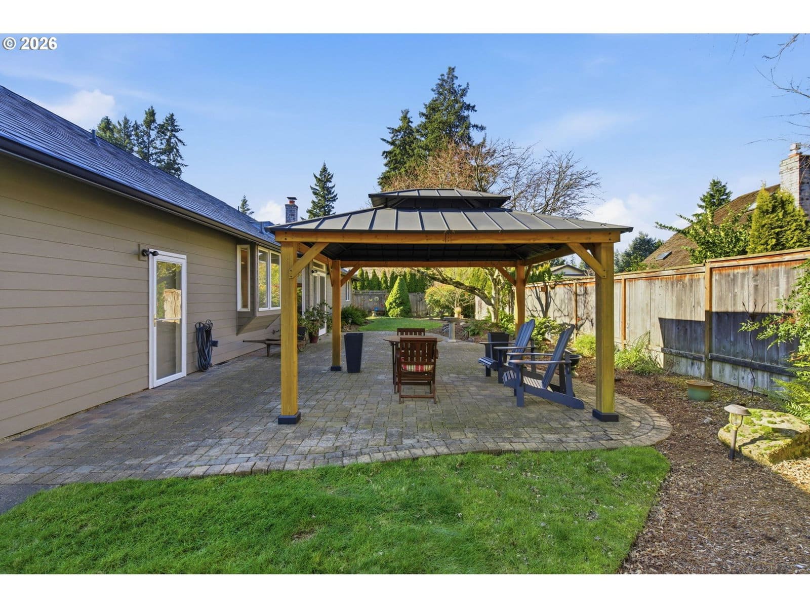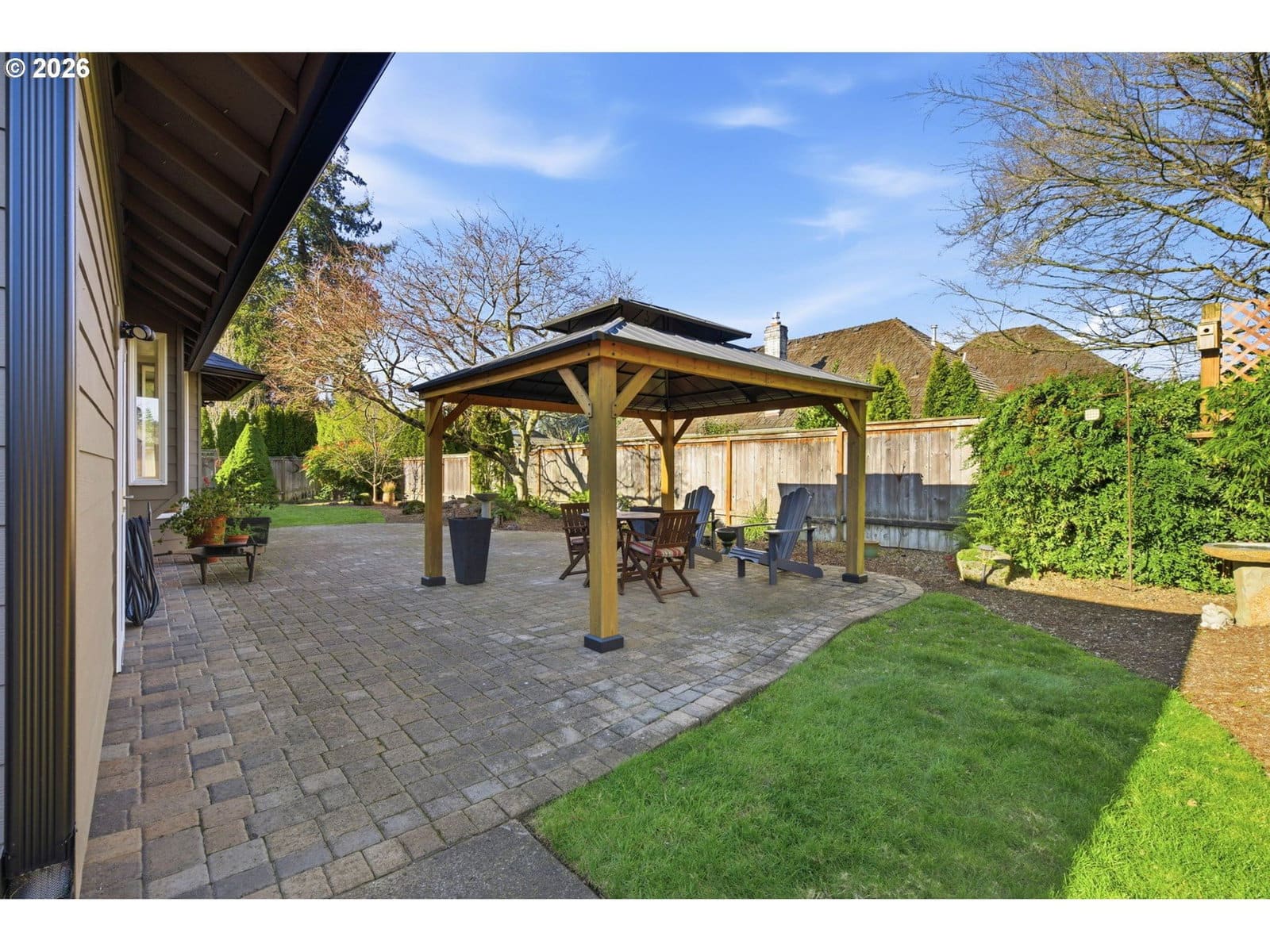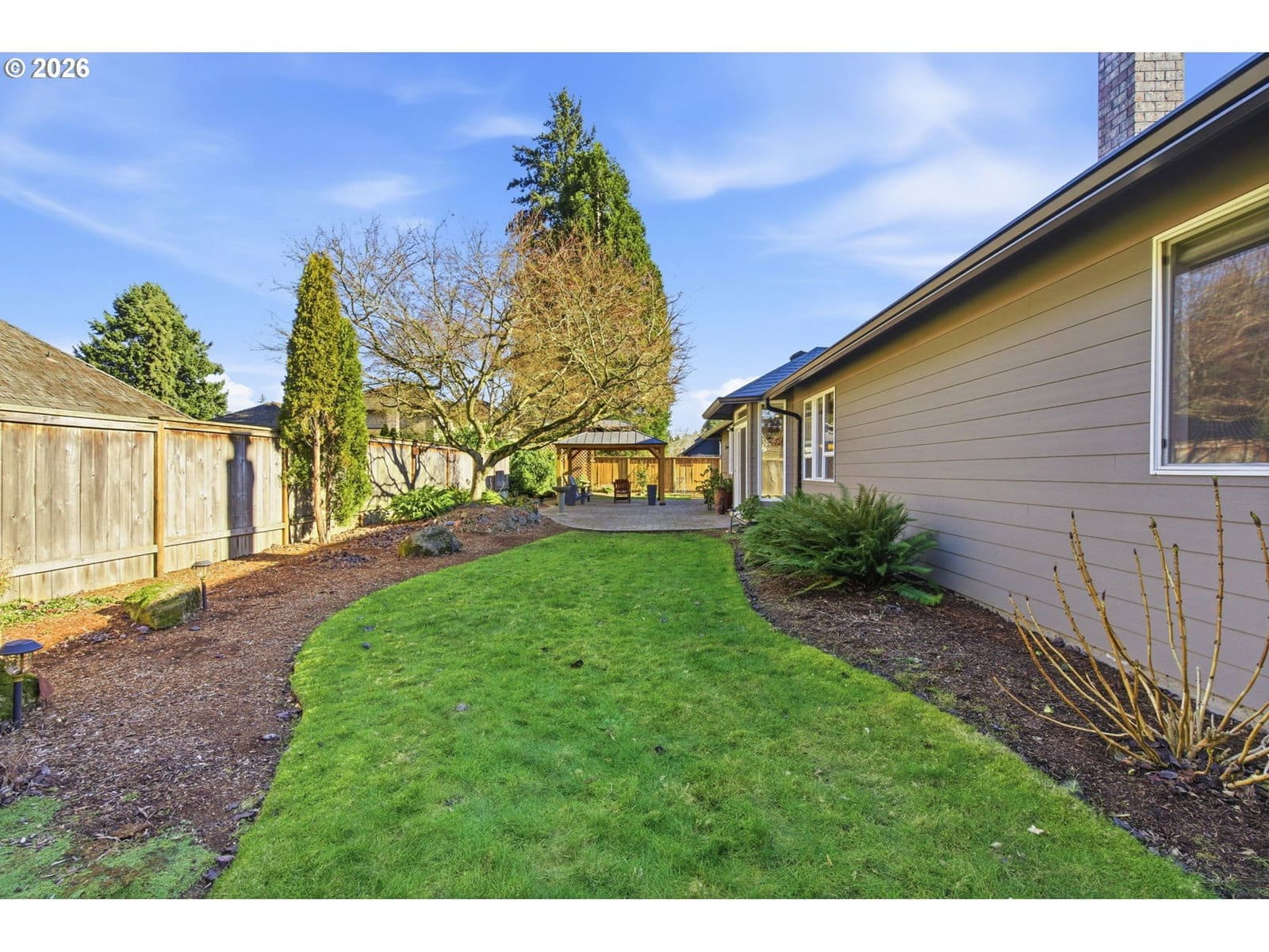This turnkey single-story in popular First Place is an incredible value with nearly $200k in recent seller improvements that include: 50-year custom metal roof, gutters, Trane HVAC, water heater, appliances, carpet, paint, hardware, fans, remote controlled window coverings, storm doors, gazebo, greenhouse, Tuff shed, metal fencing and gate, garage doors/openers and much more. Real hardwood floors through entry, kitchen and nook. Efficient kitchen layout with under cabinet lighting, all new appliances, walk-in pantry, 6-burner gas cooktop and built-in features including desk space. 3 car tandem garage (3rd bay has fan and is set up for WORKSHOP, or use for xtra storage/parking). Gated access to wide paved side yard with concrete pad. Nearly 1/4 acre fenced lot with large back paver patio, water feature and bubbler. Spectacular yard in warmer months—as it bursts alive with gorgeous flora and fauna, lush greenery and seasonal blooms for added privacy. All appliances are included + 1-year home warranty. Just three homes from the 3.5 acre neighborhood park featuring paved paths, benches, garden, gazebo, playground and open grass area. There are numerous resident-focused activities too. Conveniently located near groceries, restaurants, medical facilities, vet and easy access to I-205. All the work is done—just move in and enjoy.