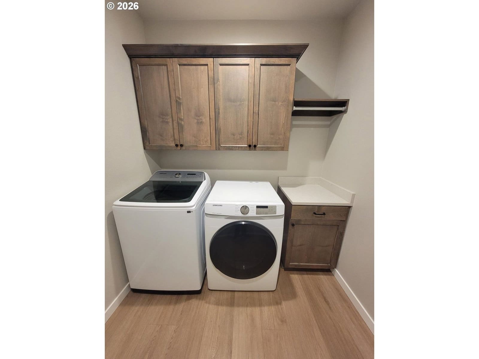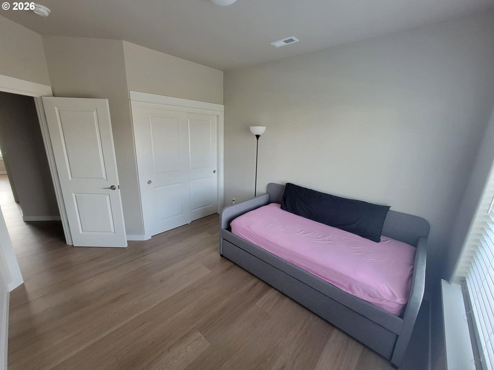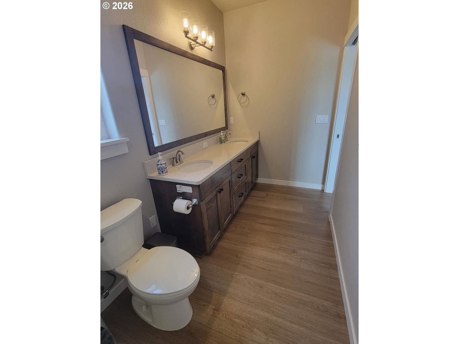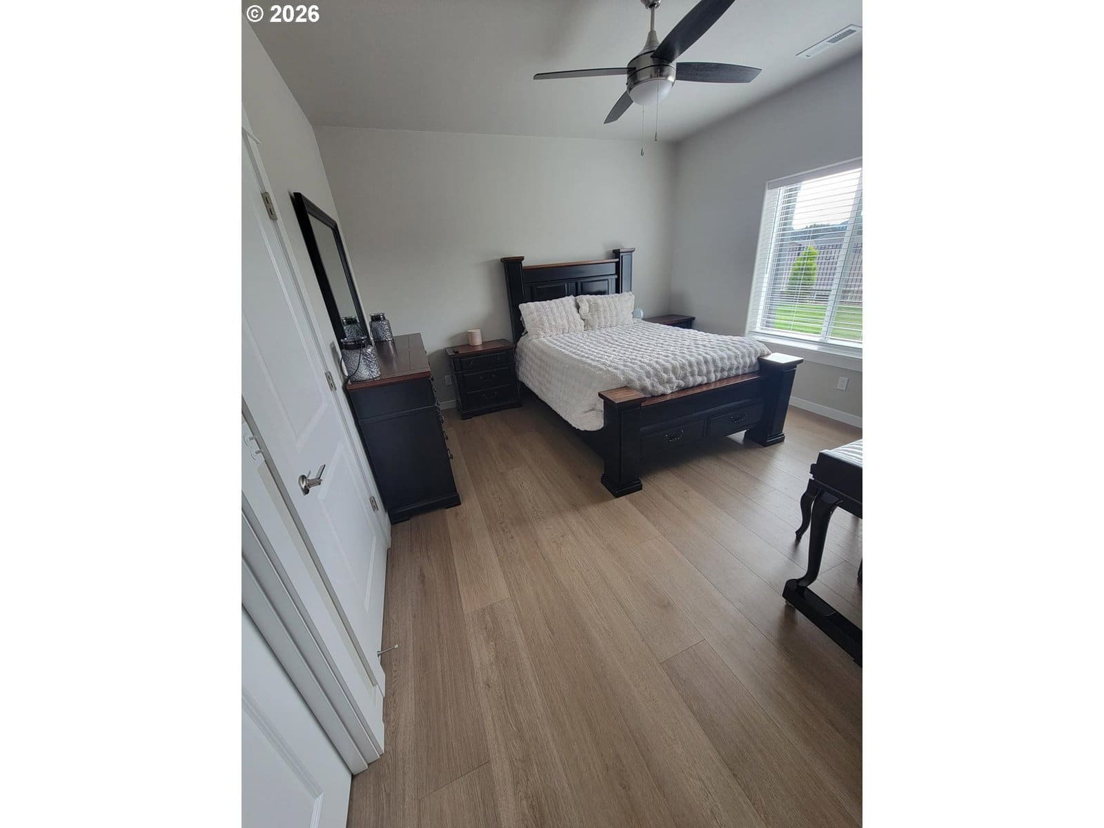 2024 construction with lots of upgrades. This home features energy efficient 95+% forced air heating/cooling. Siding is both cement/lap board/batten siding. Spacious living includes 3 bedrooms and 2 bathrooms on one level, perfect for accessibility and ease of movement. Ample Outdoor Space situated on a generous 10,018 sq. ft. corner lot providing plenty of room for gardening or outdoor entertaining. Experience modern luxury at every turn. The open-concept kitchen and baths are anchored by solid quartz countertops and sleek undermount sinks, offering a seamless, high-end look. Throughout the entire 1,585 sq. ft. floor plan, you'll find durable, water and scratch-proof laminate flooring-perfect for effortless maintenance, busy households, or pet owners who don't want to sacrifice style for function. Attached parking includes an additional 457 sq. ft. 2-car garage.