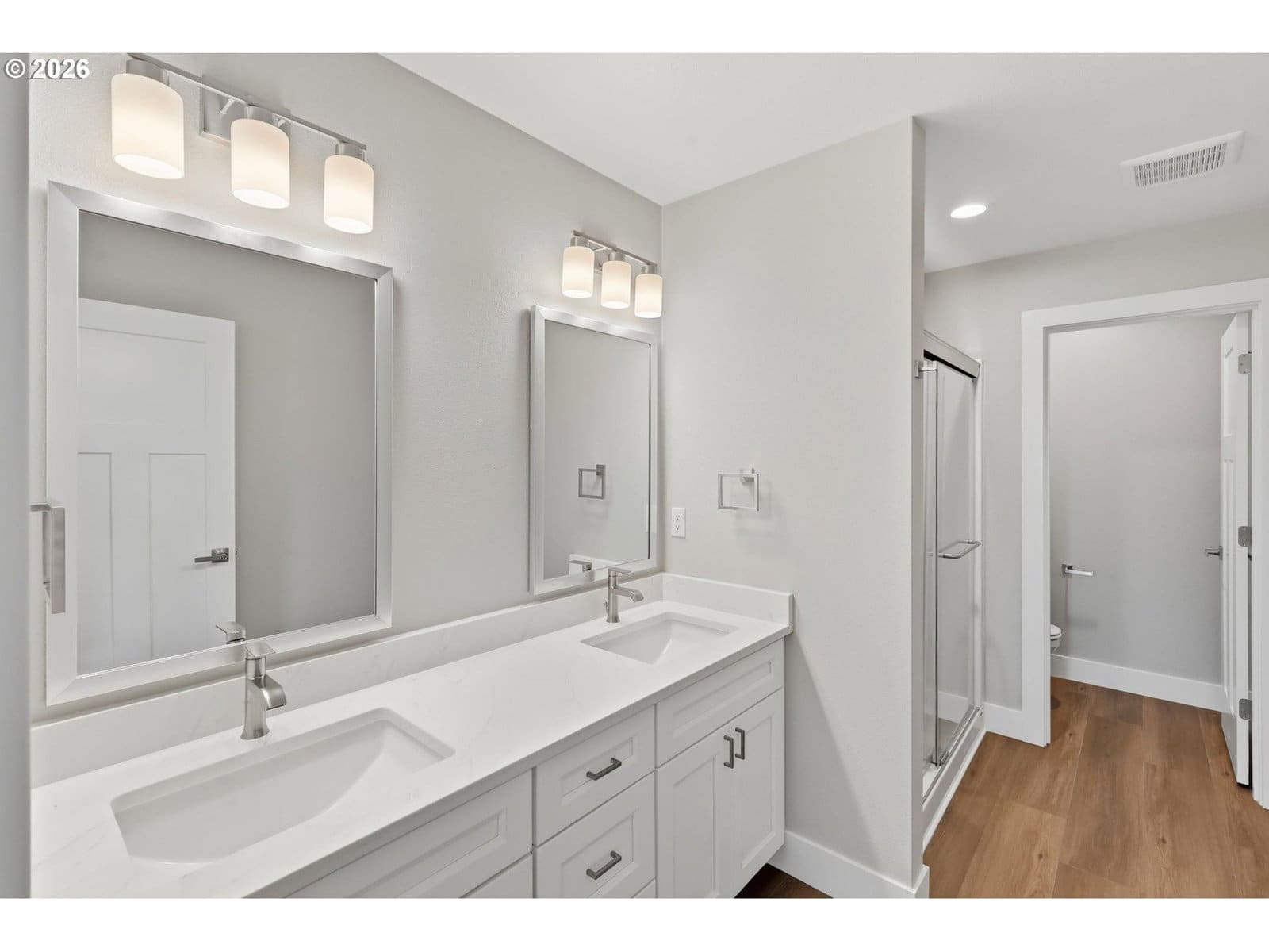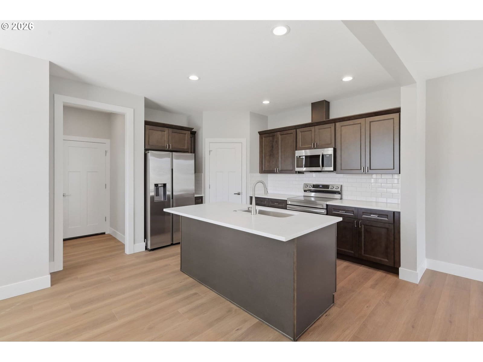 Across from a planned future park with a playground, pet area, and open green space, this move-in ready townhome delivers the kind of lifestyle buyers are searching for right now—with even more value on the horizon. Step inside and it just feels right. High ceilings, oversized windows, and a light-filled open layout make the home live larger than expected. The main level is grounded with durable LVP flooring and designed for both everyday living and entertaining. The kitchen is a true standout, featuring quartz countertops, stainless steel appliances, and custom cabinetry, along with a walk-in pantry and a generous island that naturally becomes the heart of the home. A dining nook adds just the right touch of intention for gatherings. Upstairs, the primary suite is where this home really elevates. Overlooking the surrounding green space, it offers room to unwind, space for a sitting area or workspace, and a true retreat feel. The ensuite bath features a large walk-in shower, dual vanity, and a spacious walk-in closet. Laundry is thoughtfully placed upstairs near the bedrooms for everyday convenience. Built by a respected local builder known for clean design and quality craftsmanship, the home blends elevated finishes with smart functionality, including a multi-zone heat pump for efficient year-round comfort. A two-car garage, private driveway with EV prewiring, and low-maintenance landscaping round out the practical perks. The community continues to grow, with a future park currently in the planning phase, adding long-term value to an already desirable location in South Gresham’s Pleasant Valley, just minutes from schools, shopping, and recreation. This is the one that feels elevated the moment you walk in.