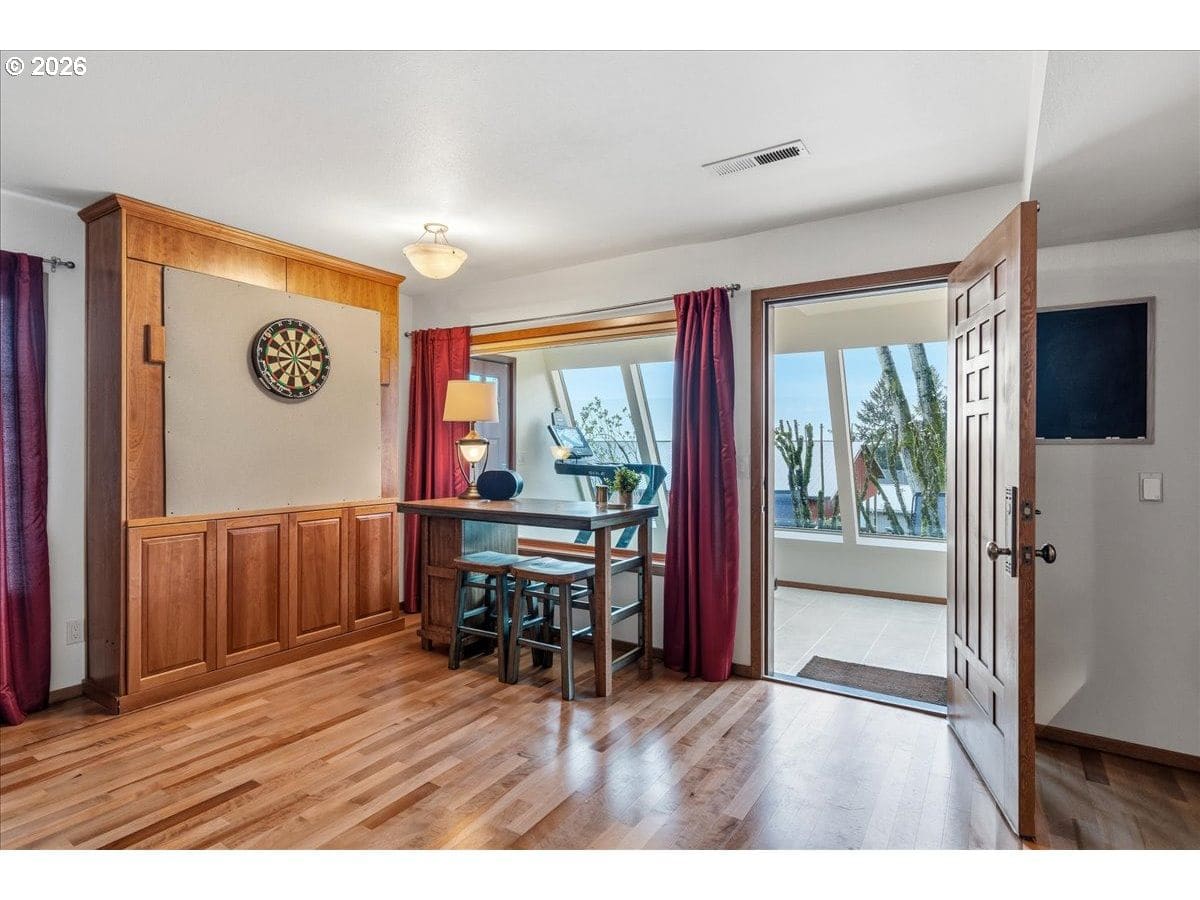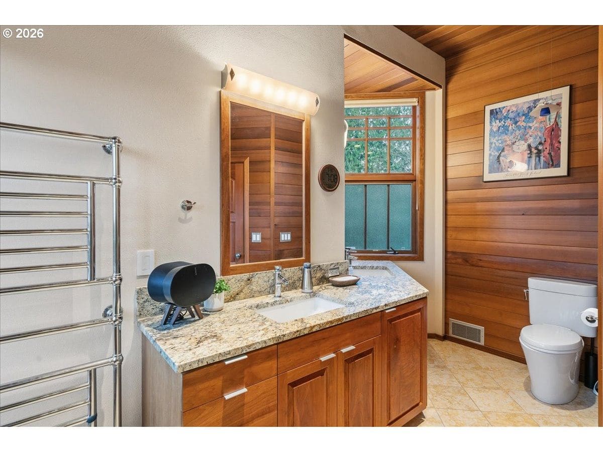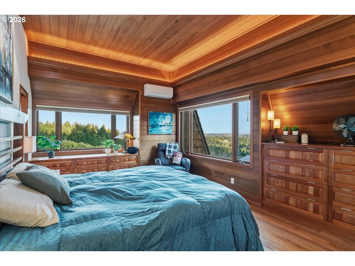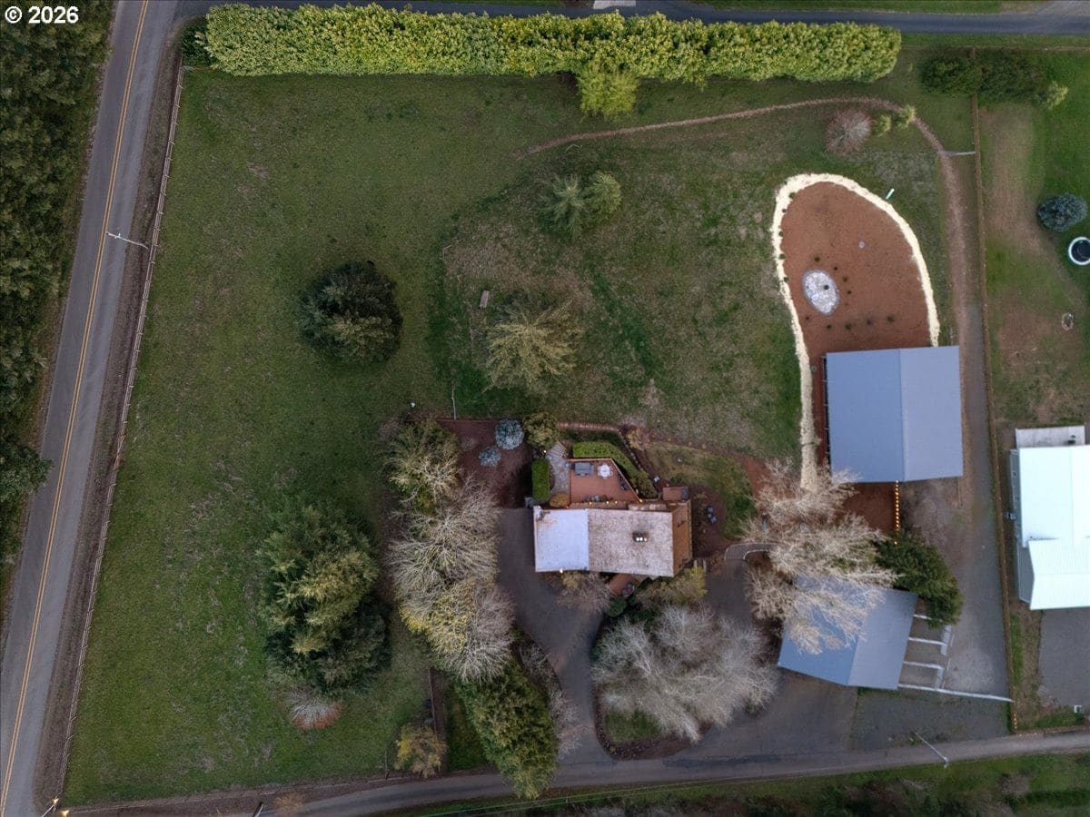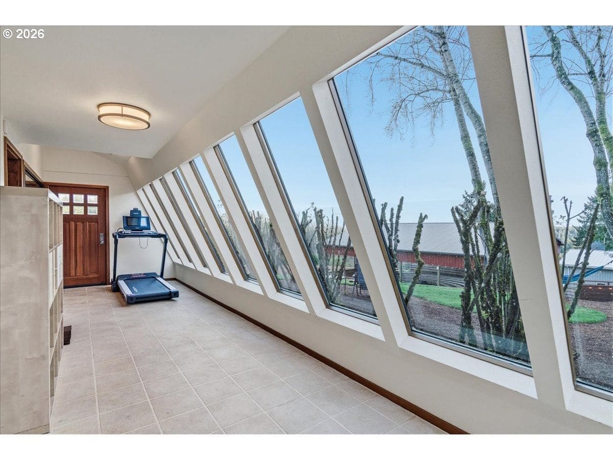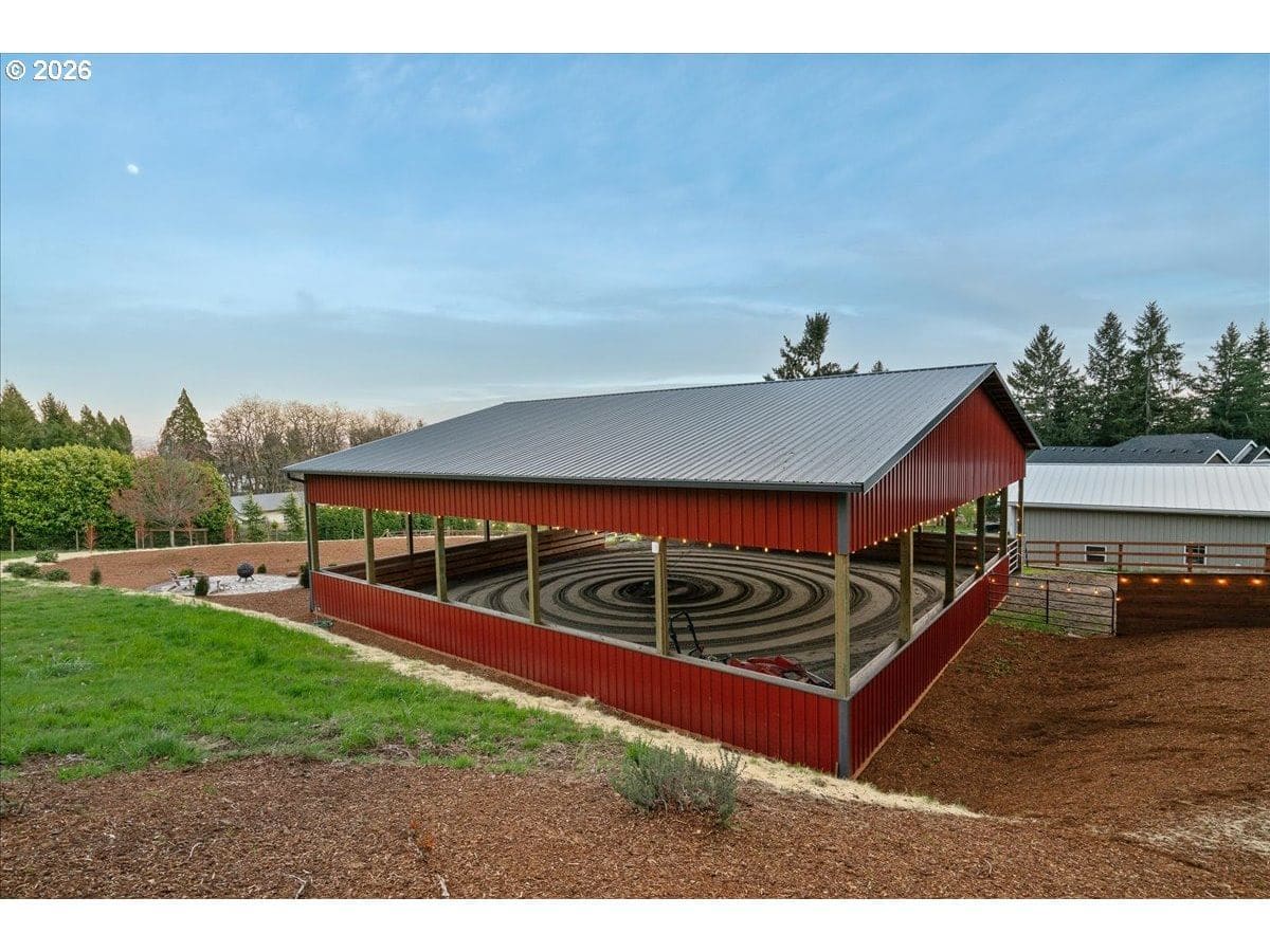 Custom château-style retreat with breathtaking mountain views! This stunning NW contemporary luxury home sits on 3.64 acres, offering sweeping valley and Cascade views in a serene, private setting. A rare blend of cozy cabin charm, vintage elegance, and modern sophistication, this one-of-a-kind property showcases exceptional quality and craftsmanship throughout. The thoughtfully designed interior features a chef’s kitchen, custom cherry cabinetry, and a striking two-sided fireplace with slate and metal surround, creating a warm yet refined gathering space. An impressive wood and metal staircase serves as a true architectural centerpiece. Expansive windows flood the home with natural light, highlighting the beautiful finishes and surrounding landscape. Light-filled living spaces offer both comfort and style, ideal for everyday living or entertaining. The primary suite is a spa-like retreat, featuring a limestone shower with a granite outline of Mt. Hood. Dedicated spa/sauna room brings tranquility to your everyday living. Conveniently located just 7 minutes from Wilsonville, Sherwood, and I-5, this property provides peaceful country living with easy access to town. True dual living includes a separate entry, kitchen, laundry, and parking—perfect for Airbnb income potential or multi-generational living. Outdoors, enjoy gorgeous, fenced pastures, a new arena, and a refreshed 3-stall barn with new roof and siding (2024), making this property ideal for equestrian use or hobby farming. A rare opportunity to own a private retreat that seamlessly combines luxury, functionality, and natural beauty.