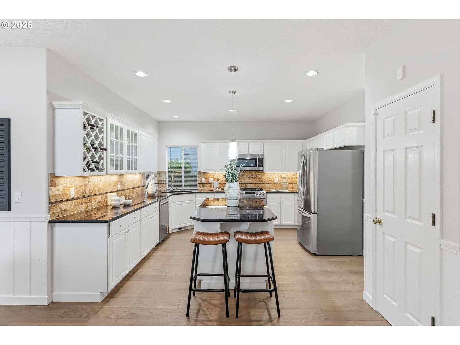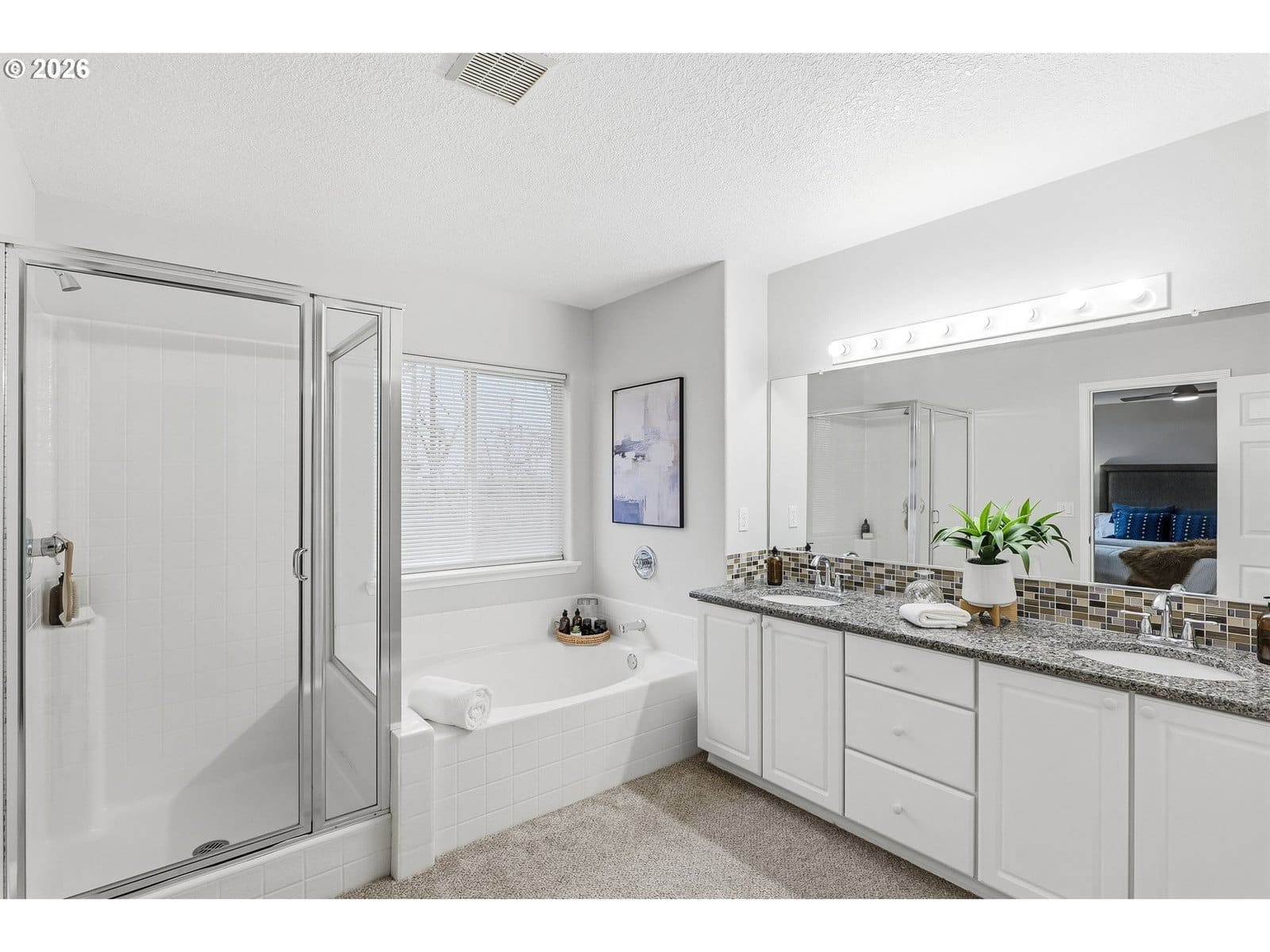 OPEN HOUSE FEB 14, SAT 12-3PM Beautiful Bethany Terrace home is warm, bright, and move-in ready. Updates include engineered hardwood floors on the main level, fresh interior paint, stainless steel appliances, granite countertops, carpet and pad, a Carrier furnace and air conditioner, water heater, roof, and exterior paint. Formal living and dining rooms flow into a well-appointed kitchen featuring a stainless steel gas range with touch screen, built-in microwave, dishwasher, French-door refrigerator, granite counters with under-mounted stainless steel sink, white cabinetry, wine rack, glass doors, full backsplash, under-cabinet lighting, pantry, breakfast nook, and island with pendant lighting and eating bar. The light-filled, two-story family room offers a gas fireplace, built-in entertainment center, and dual staircases for added convenience. The primary suite & bath includes a garden tub, step-in shower, dual vanities with under-mounted sinks, granite counters, and a large walk-in closet. Additional bedrooms include ceiling fans, and the oversized bonus/media room or additional bedroom features a built-in desk. Outside, enjoy a private fenced backyard with pavers and deck, tool shed, and direct access to the greenbelt and walking trail. Conveniently located near Bethany Centre, shopping, gym facilities, and more! Must See