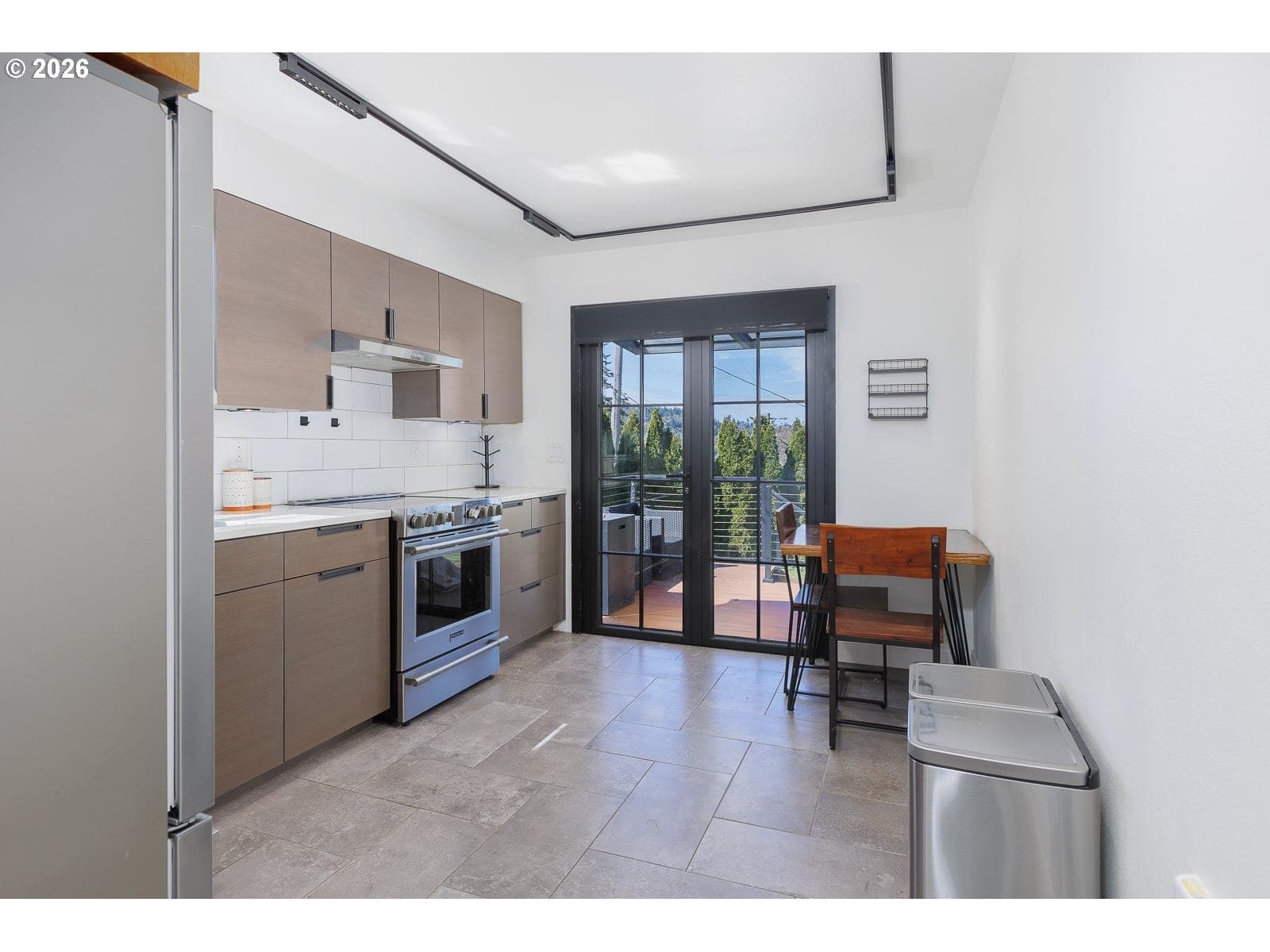 Charming and meticulously maintained 2 bed, 1.5 bath home with stylish modern updates throughout. The light-filled living room shines with a bay window, 3 skylights, and vaulted ceilings, anchored by a sleek bio-ethanol fireplace. The upstairs primary suite offers a walk-in closet and peaceful river views. Enjoy true main-level living with a bedroom and full bath downstairs featuring a beautifully tiled walk-in shower. Step out to a covered deck overlooking a private fenced yard. A huge plus - separate laundry area with storage, washer/dryer included. Recent upgrades include new LVP flooring, brand new water heater, and ceiling fans.