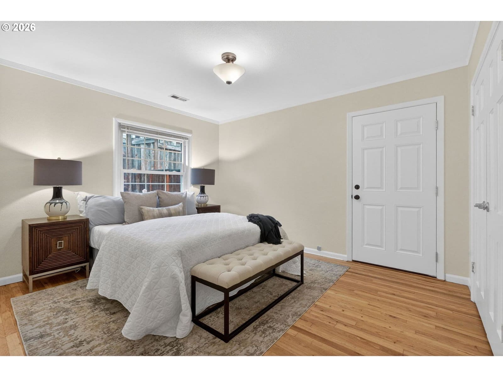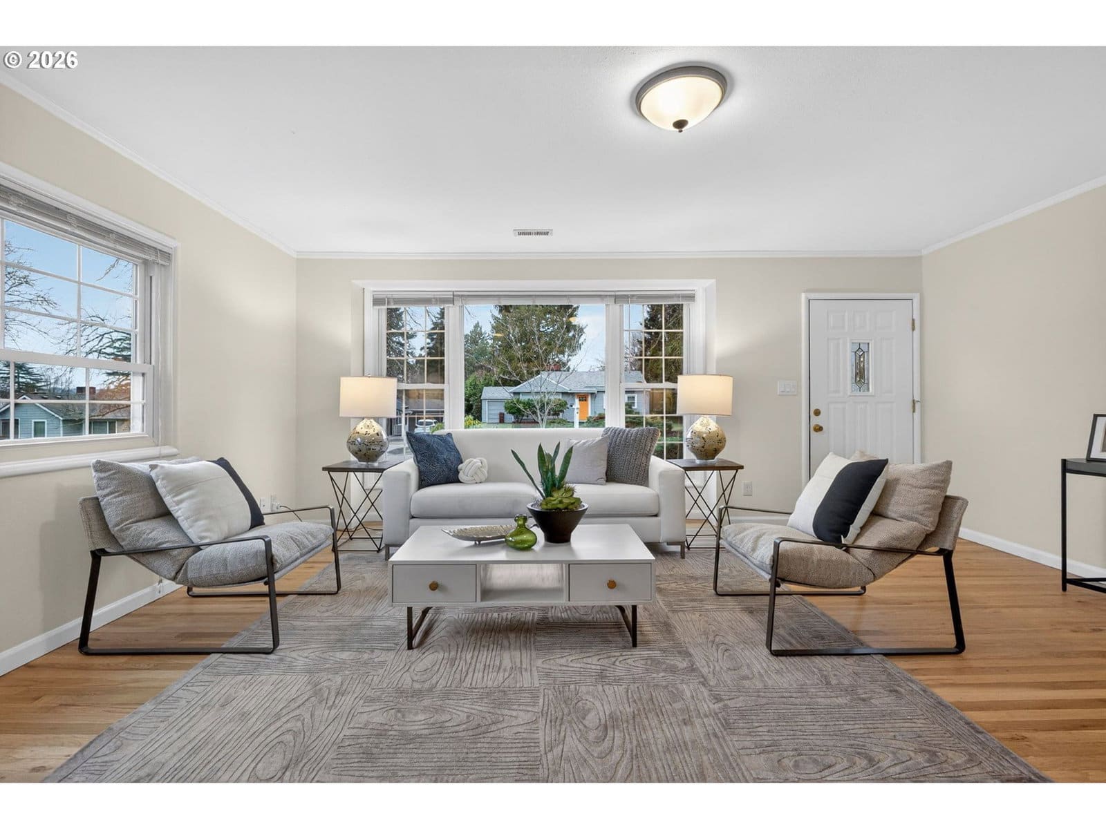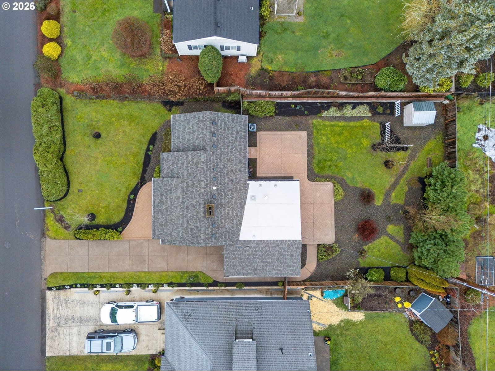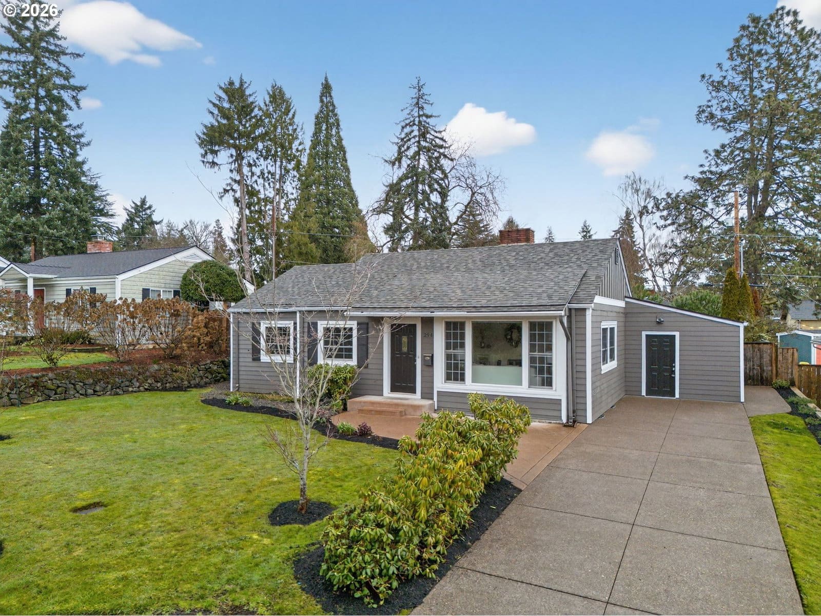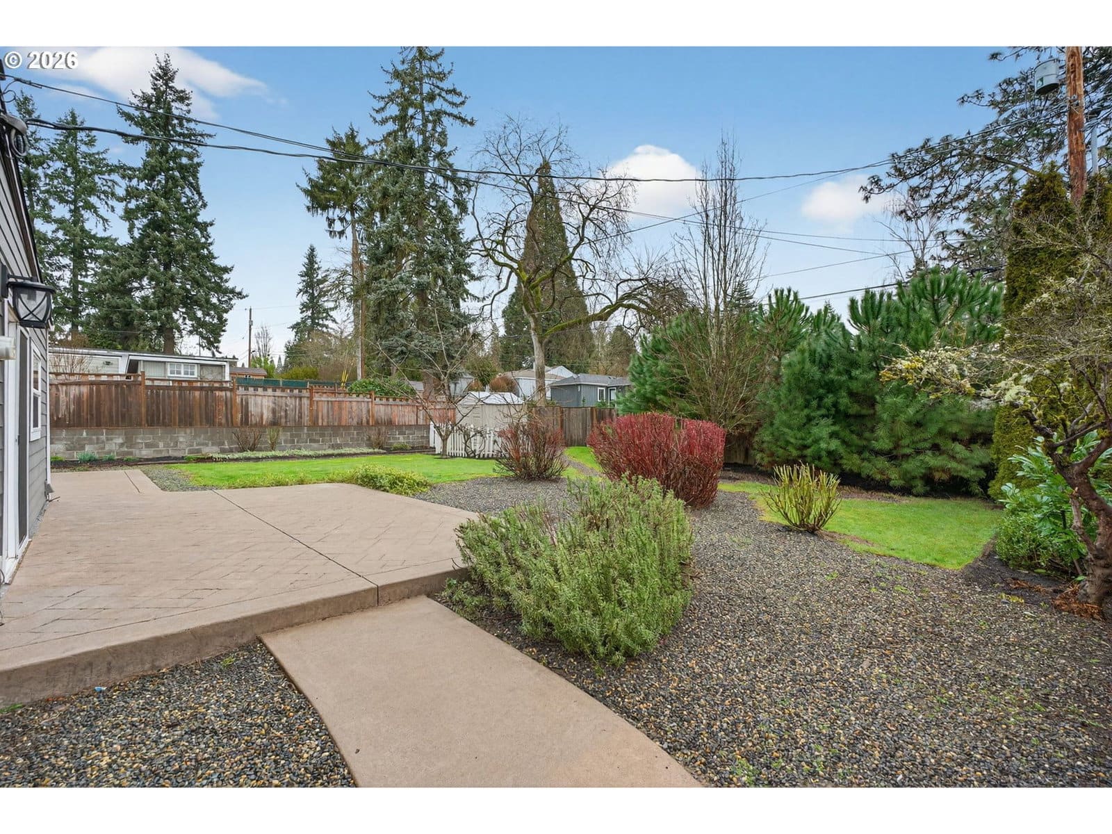 Cedar Hills jewel box! One level living at its best on this beautiful tree lined street in a quiet, sought after neighborhood! This charming ranch lives larger than it appears, sitting on a spacious 8,200+ sq ft lot with ample room to garden, play, or entertain. The welcoming entry opens to a bright living room featuring a fireplace, original built ins and dining space. Refinished hardwood floors and fresh interior paint create a light, inviting atmosphere throughout. The generous cook’s kitchen is stylish and functional with granite counters, stainless steel appliances, and abundant storage. Designed with flow in mind, the kitchen connects seamlessly to the large family room with woodstove and brand new carpet. A “hidden” laundry closet and nearby full guest bath add everyday convenience. You will love the multi purpose bonus room off the family room – an ideal space for a home office, craft room, or playroom! Relax in the primary bedroom, which opens to the backyard patio to enjoy your morning cup of coffee; two additional bedrooms and full bath with tub/shower combo & updated lighting. Step outside to a private, fenced backyard oasis featuring an expansive stamped concrete patio, whimsical garden paths, and mature plantings—perfect for alfresco dining or quiet relaxation. Need storage? An attached large storage room provides additional space for bikes, tools, or hobbies. Central A/C; major updates include new carpeting (2026), refinished hardwoods (2026), new sewer line (2024), new water heater (2023), and new roof (2020). HOA is for RV parking lot south of property. Stroll or bike to nearby Center St park with tennis and basketball courts, a playground with swings and a walking path! Enjoy shopping in nearby downtown Beaverton & newly renovated Cedar Hills Crossing; easy access to public transportation and great freeway access!
