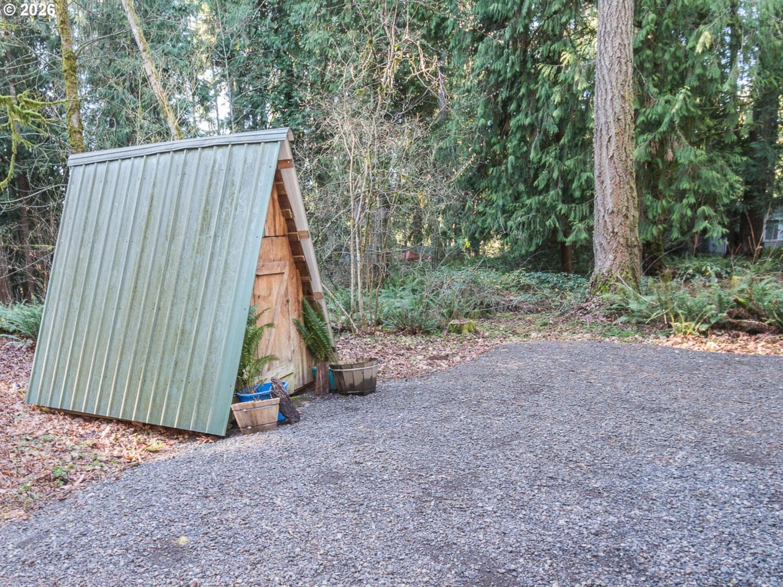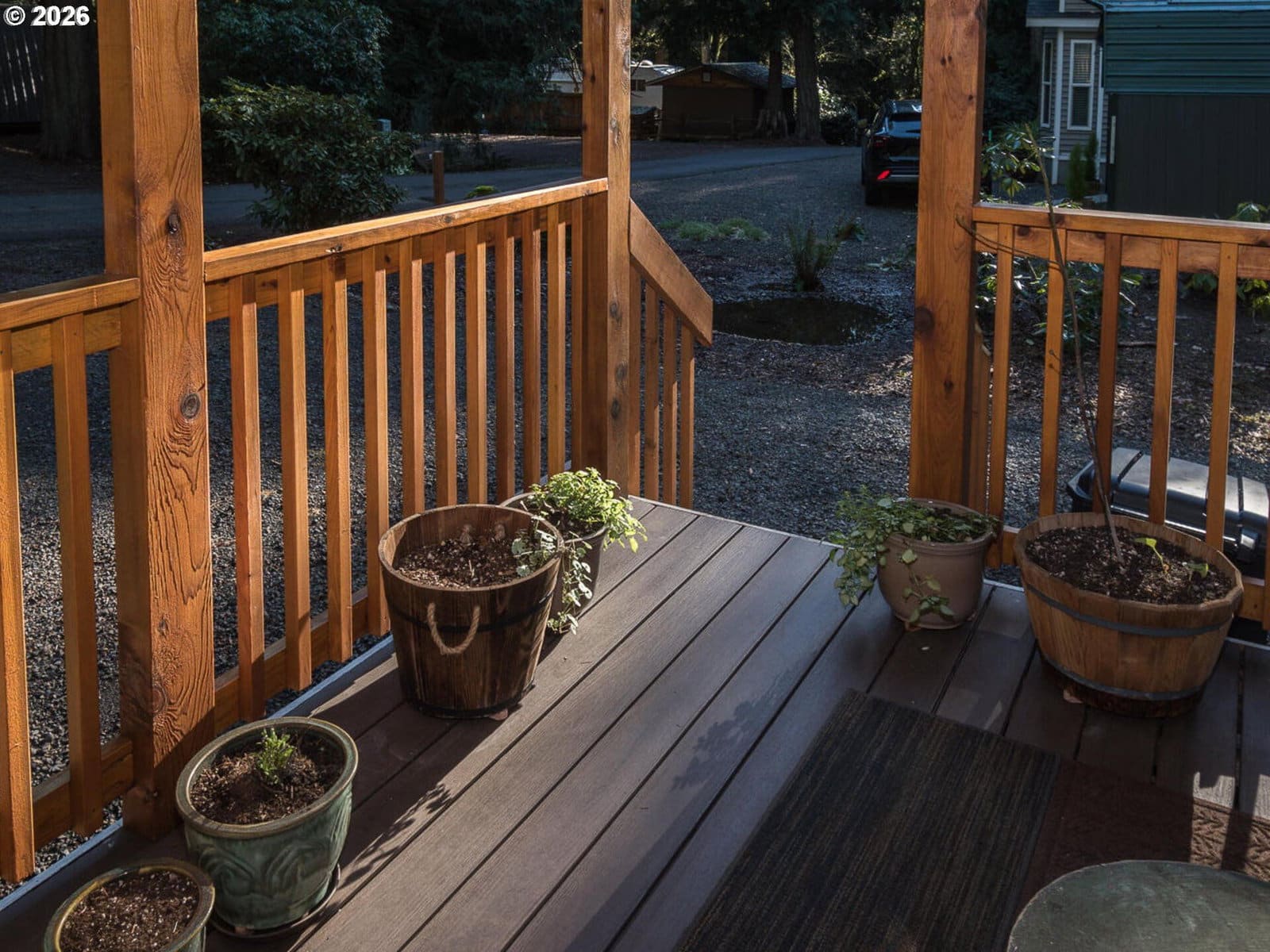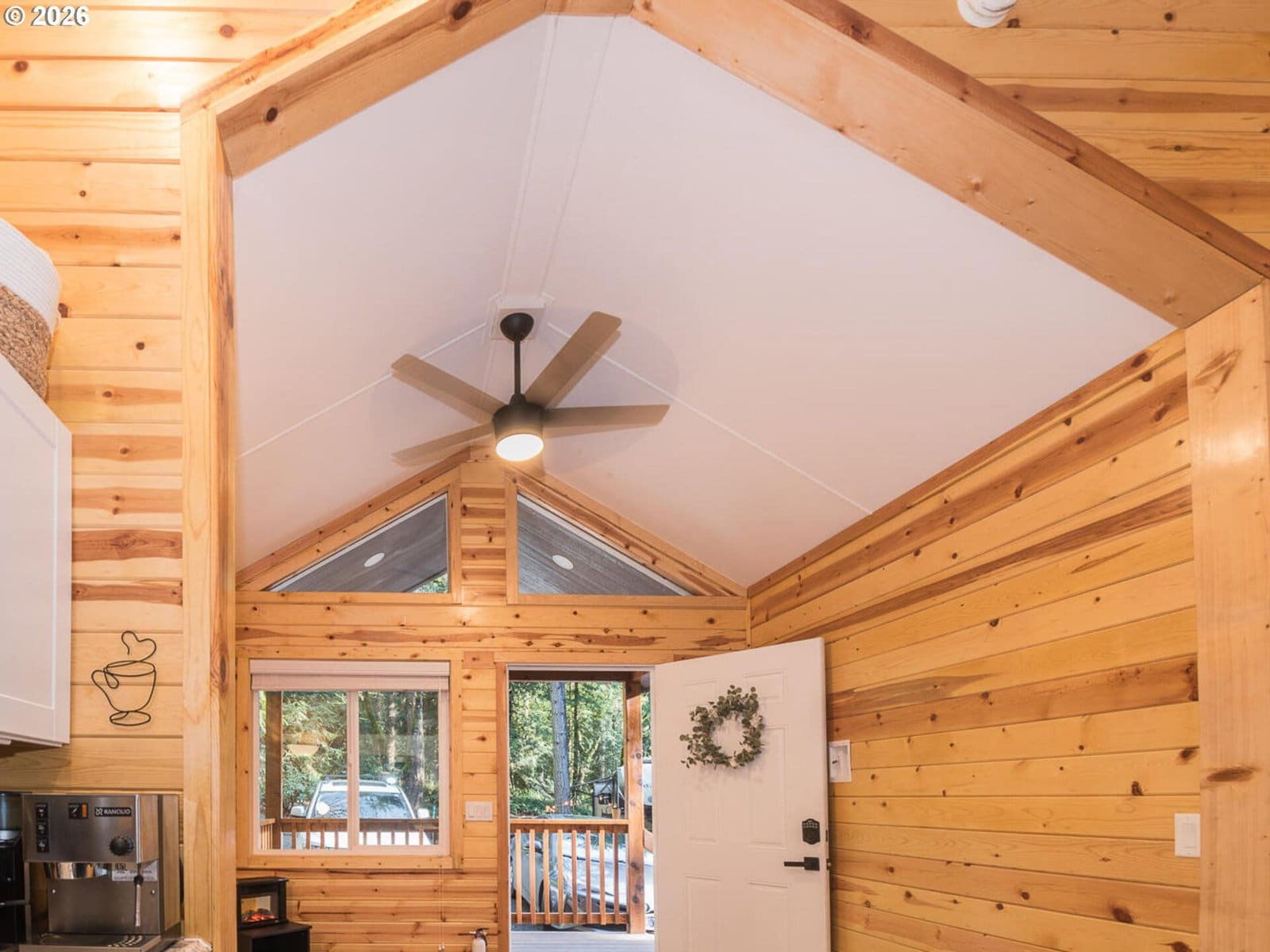 Built in 2022, this custom park model home offers thoughtful upgrades and a warm, cabin-style feel in a serene, forest-like setting—close to the city, yet far enough away to enjoy true tranquility. Natural pine interior walls create an inviting atmosphere to match the forest view when you look out the windows. The full kitchen features all full-size stainless steel GE appliances, including a gas range, large refrigerator with ice and water, dishwasher, island, and a stainless steel apron sink. Separate living and dining areas provide comfortable and functional spaces, with ample storage thoughtfully integrated throughout the home. A spacious loft offers flexible use as an additional sleeping area or bonus space and is not included in the listed square footage. Additional features include a mini-split heating and cooling system, rain gutters with gutter guards, and 50-amp electrical service. Step outside onto the large front deck, take a seat, relax, and enjoy the great outdoors surrounded by lush greenery. The home sits on a generously sized lot and includes a 2024-built 8x8 Tuff Shed, fully insulated with a 30 amp electrical providing power, featuring white shiplap interior—perfect for storage, a workshop, or a private office away from the main home. This property delivers comfort, efficiency, and charm. From the moment you walk in.