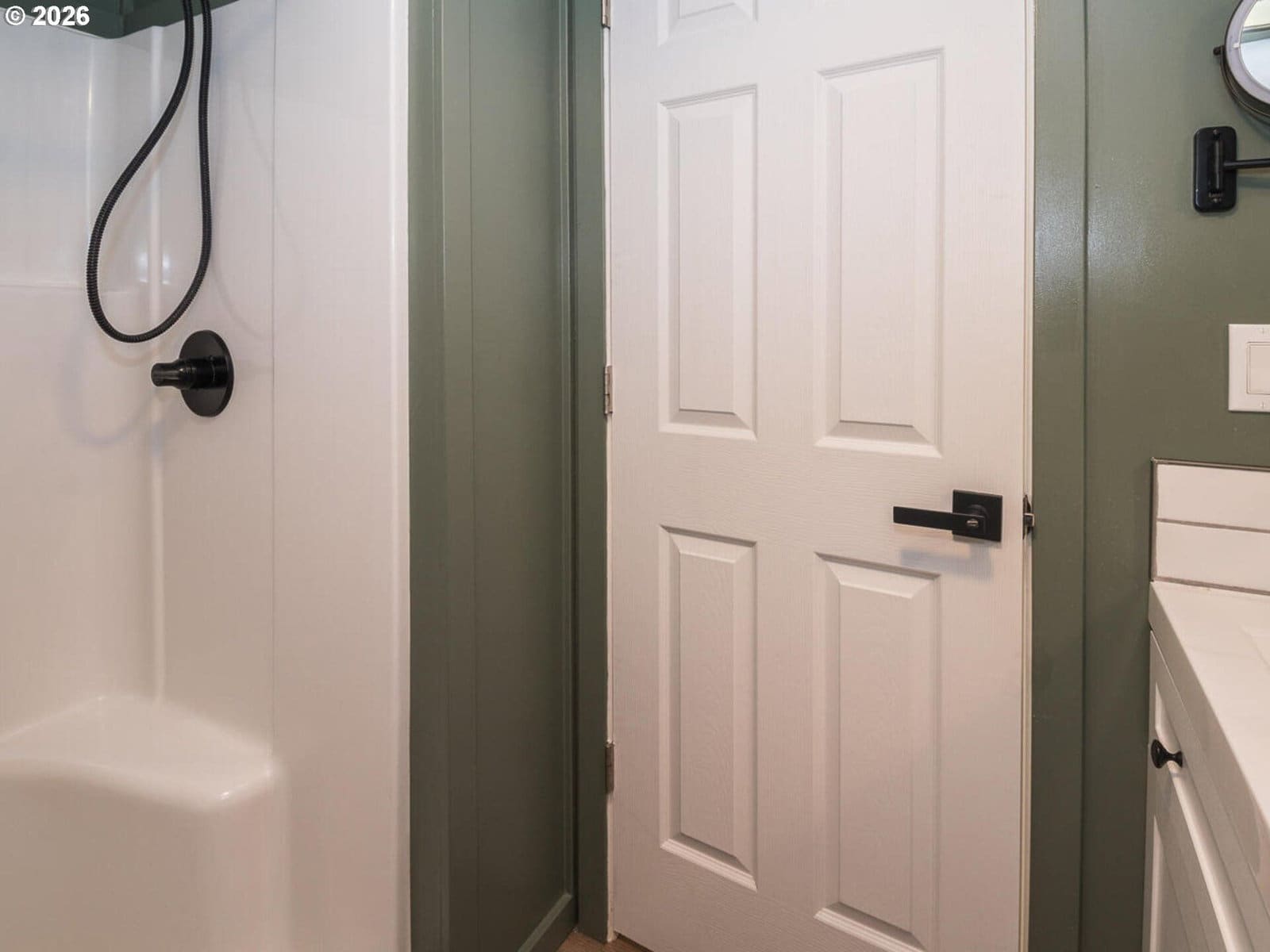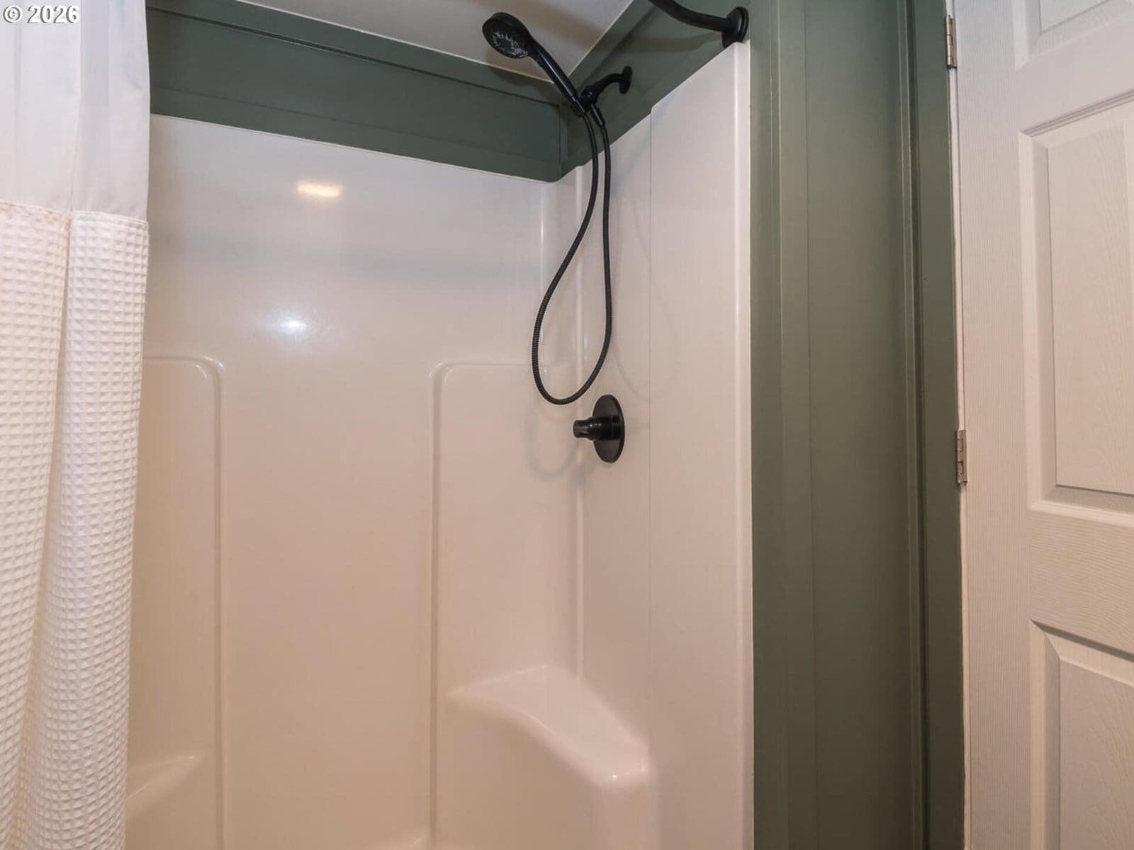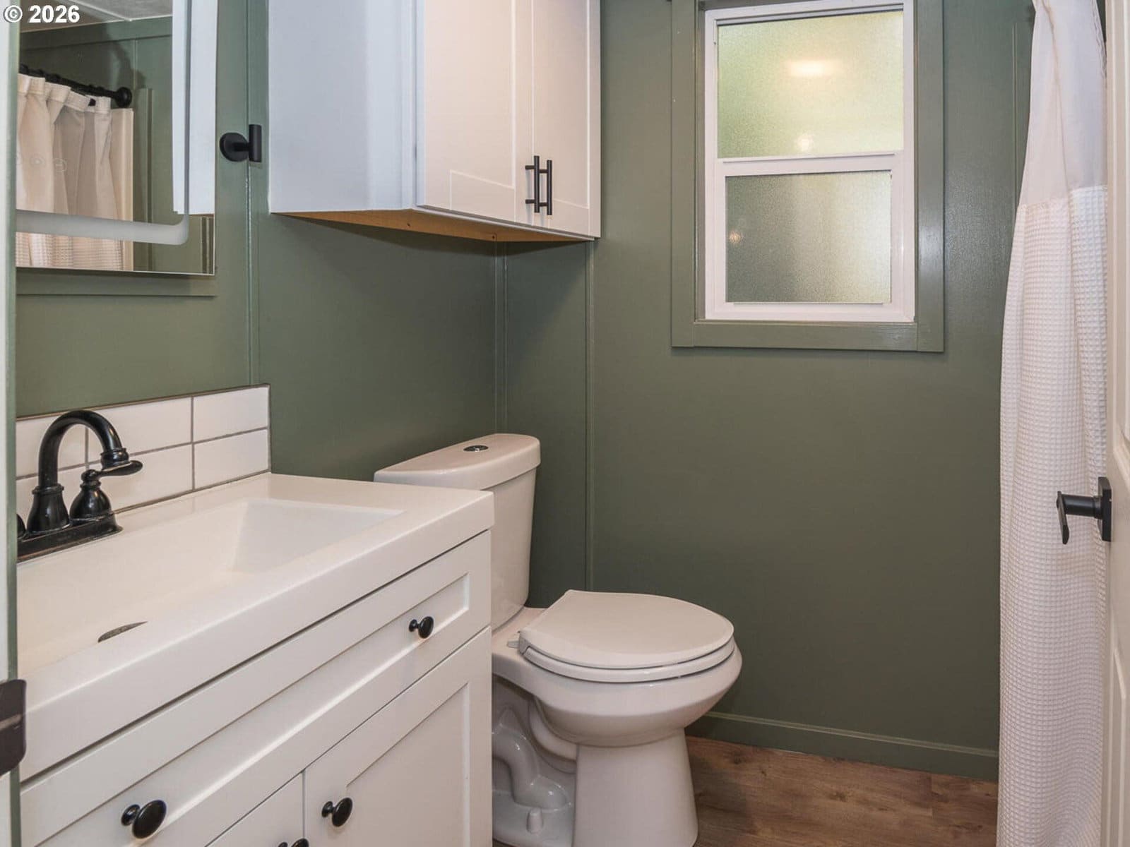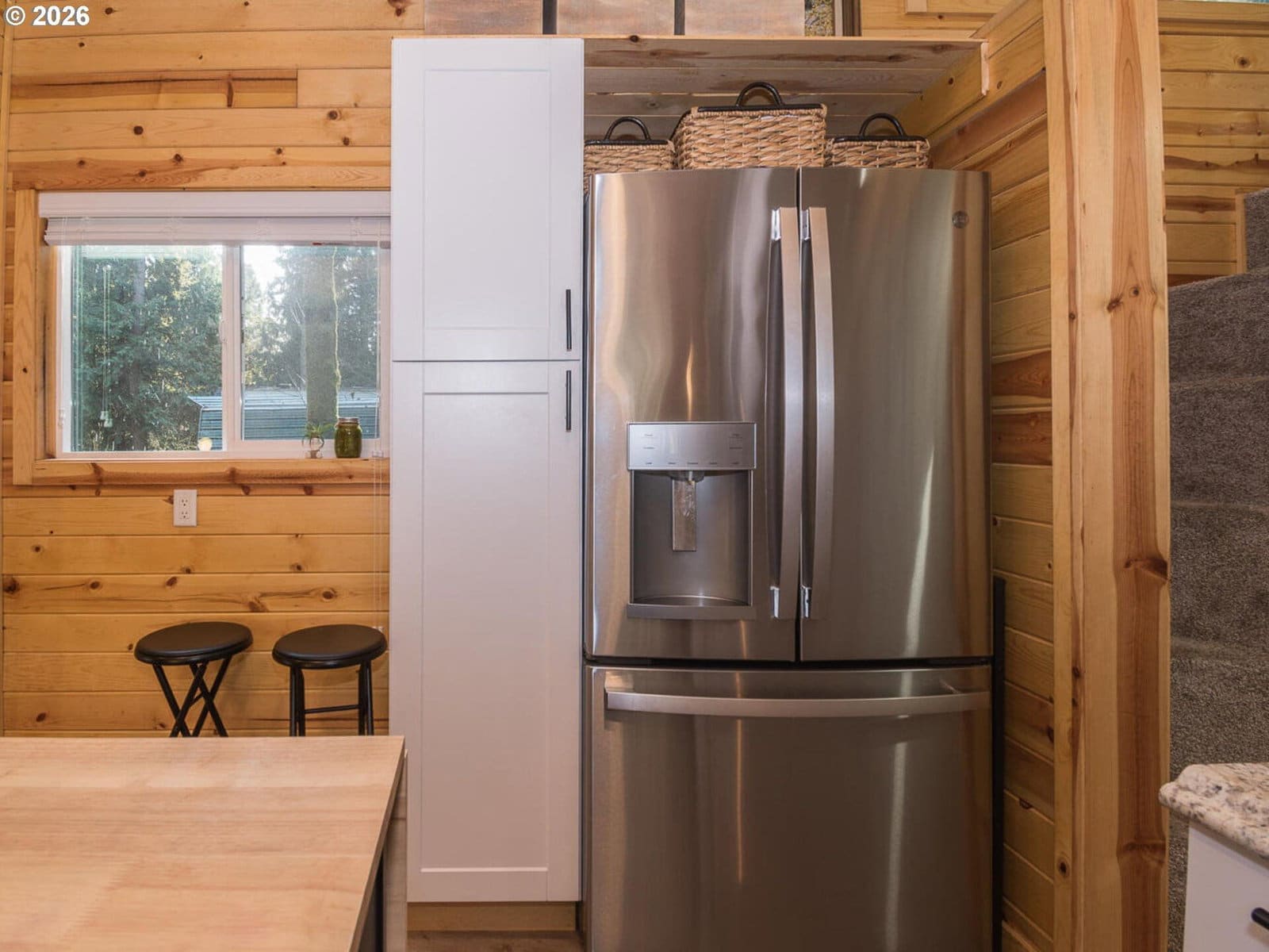 Built in 2022, this custom park model home offers thoughtful upgrades and a warm, cabin-style feel in a serene, forest-like setting—close to the city, yet far enough away to enjoy true tranquility. Natural pine interior walls create an inviting atmosphere to match the forest view when you look out the windows. The full kitchen features all full-size stainless steel GE appliances, including a gas range, large refrigerator with ice and water, dishwasher, island, and a stainless steel apron sink. Separate living and dining areas provide comfortable and functional spaces, with ample storage thoughtfully integrated throughout the home. A spacious loft offers flexible use as an additional sleeping area or bonus space and is not included in the listed square footage. Additional features include a mini-split heating and cooling system, rain gutters with gutter guards, and 50-amp electrical service. Step outside onto the large front deck, take a seat, relax, and enjoy the great outdoors surrounded by lush greenery. The home sits on a generously sized lot and includes a 2024-built 8x8 Tuff Shed, fully insulated with a 30 amp electrical providing power, featuring white shiplap interior—perfect for storage, a workshop, or a private office away from the main home. This property delivers comfort, efficiency, and charm. From the moment you walk in.
