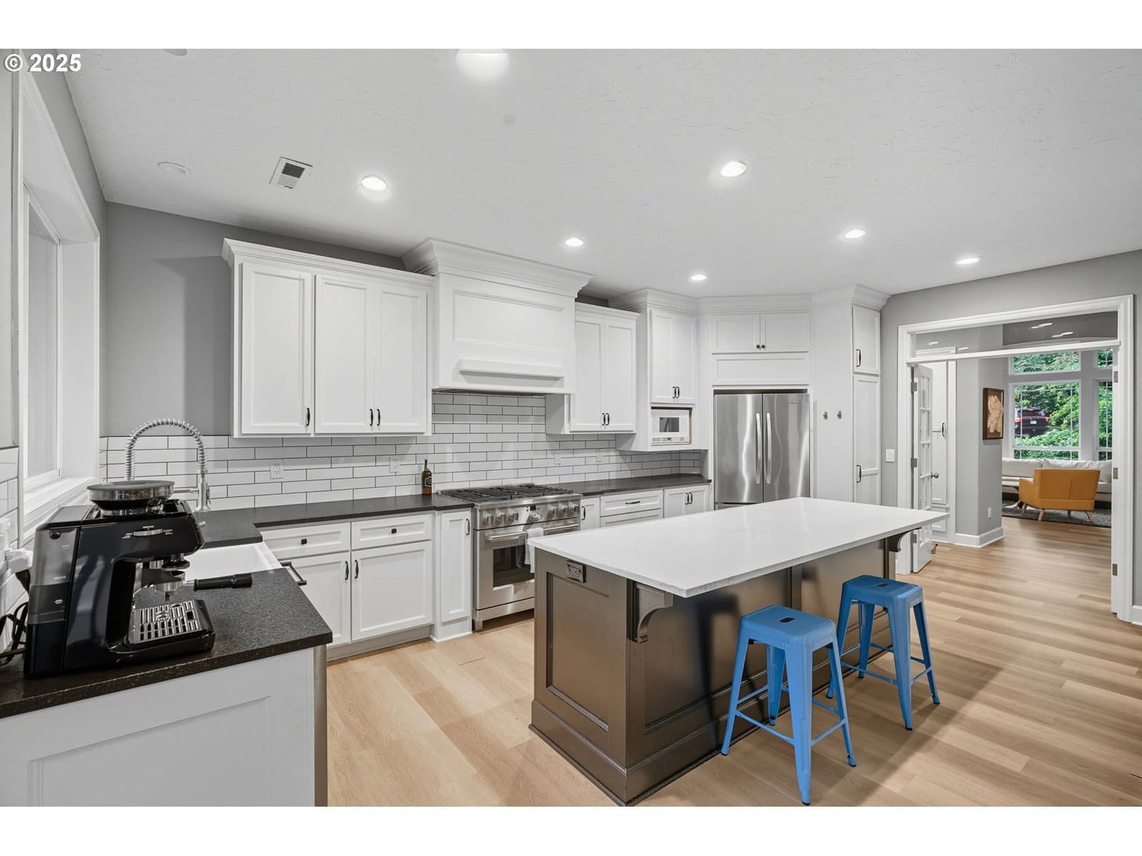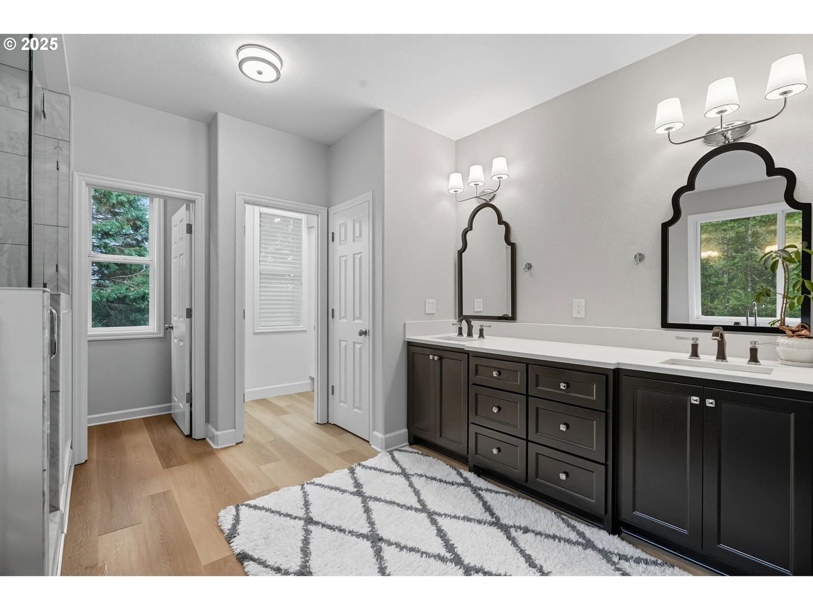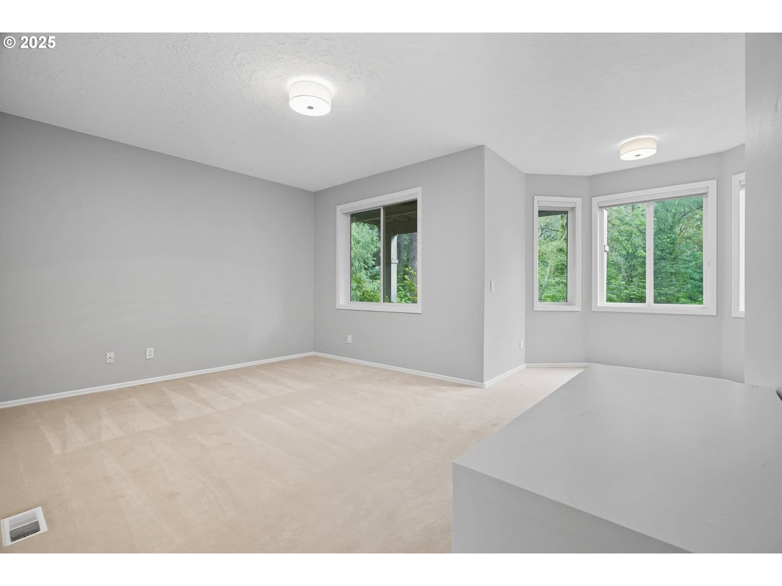 Custom-Built Forest Heights Home with a Level Backyard! Tucked away on a quiet cul-de-sac, this spacious daylight home provides 3 levels, each with its own deck, privacy and major updates. Step inside to soaring recessed ceilings, luxury vinyl plank flooring throughout, and an abundance of natural light. The main-level primary suite overlooks a serene backdrop of trees off of a private deck and features a spa-inspired ensuite with a soaking tub, walk-in shower, and walk-in closet. A second main-level bedroom with French doors offers flexible use as a guest room or office. Plus, enjoy the convenience of a fully-equipped laundry room on the main level. The kitchen features quartz countertops, stainless steel appliances, pantry, and breakfast nook, flowing seamlessly into the family room with a gas fireplace, which opens to a covered TimberTech deck—perfect for year-round outdoor living. On the second level, two additional bedrooms (one with a bay window and ensuite bath) share a versatile loft-style living space. The lower daylight level offers even more flexibility with a flex space ideal for a home gym, a bedroom with ensuite, generous storage, and sliding doors that lead to the completely level backyard with a greenhouse wired with electricity—a rare find that feels private and backs to beautiful trees and woods. A 3-car garage, low HOA, new roof, and recently updated HVAC add peace of mind. This home is the perfect blend of nature, space, and modern convenience. Come see it for yourself! [Home Energy Score = 1. HES Report at https://rpt.greenbuildingregistry.com/hes/OR10242177]