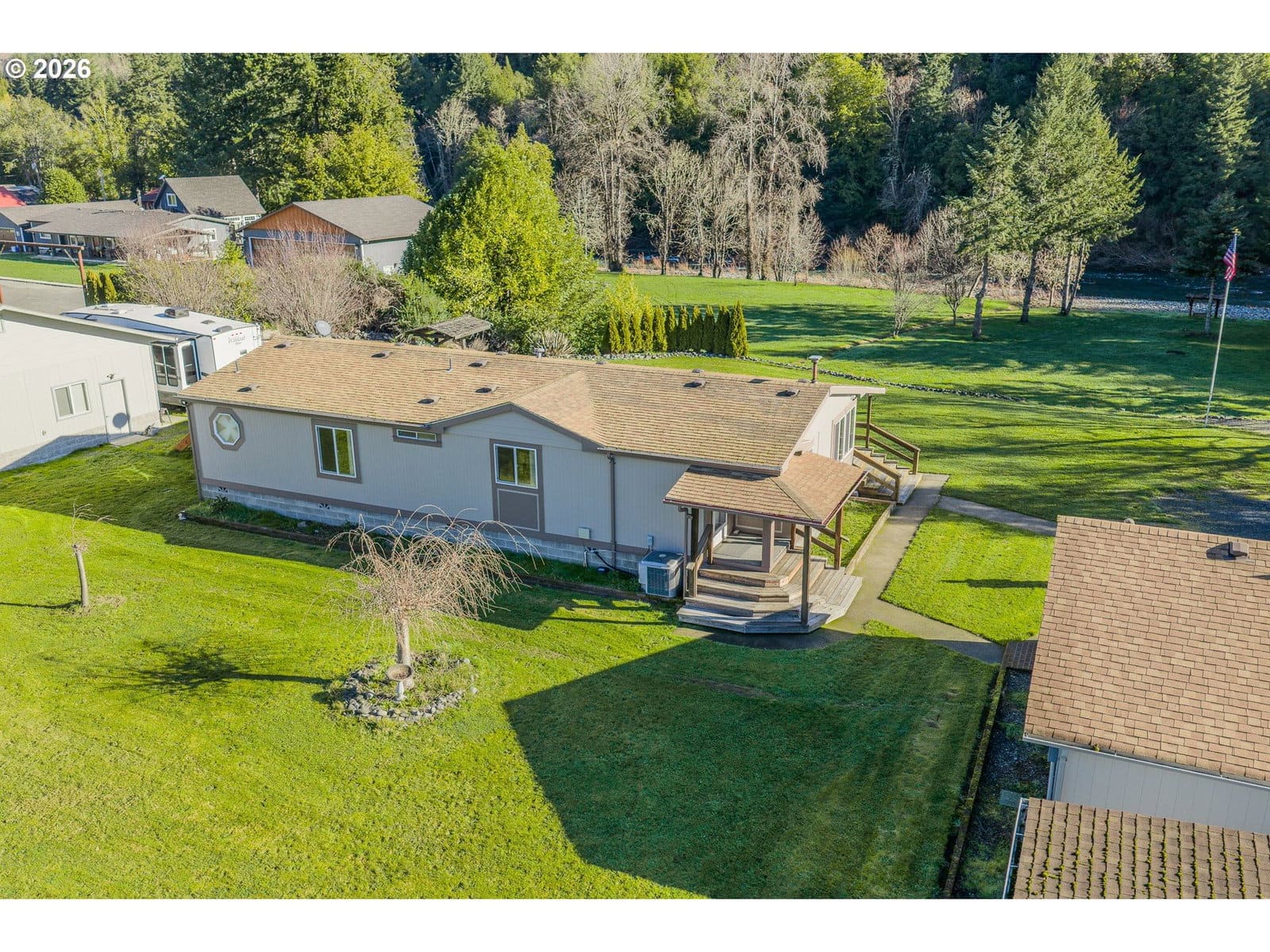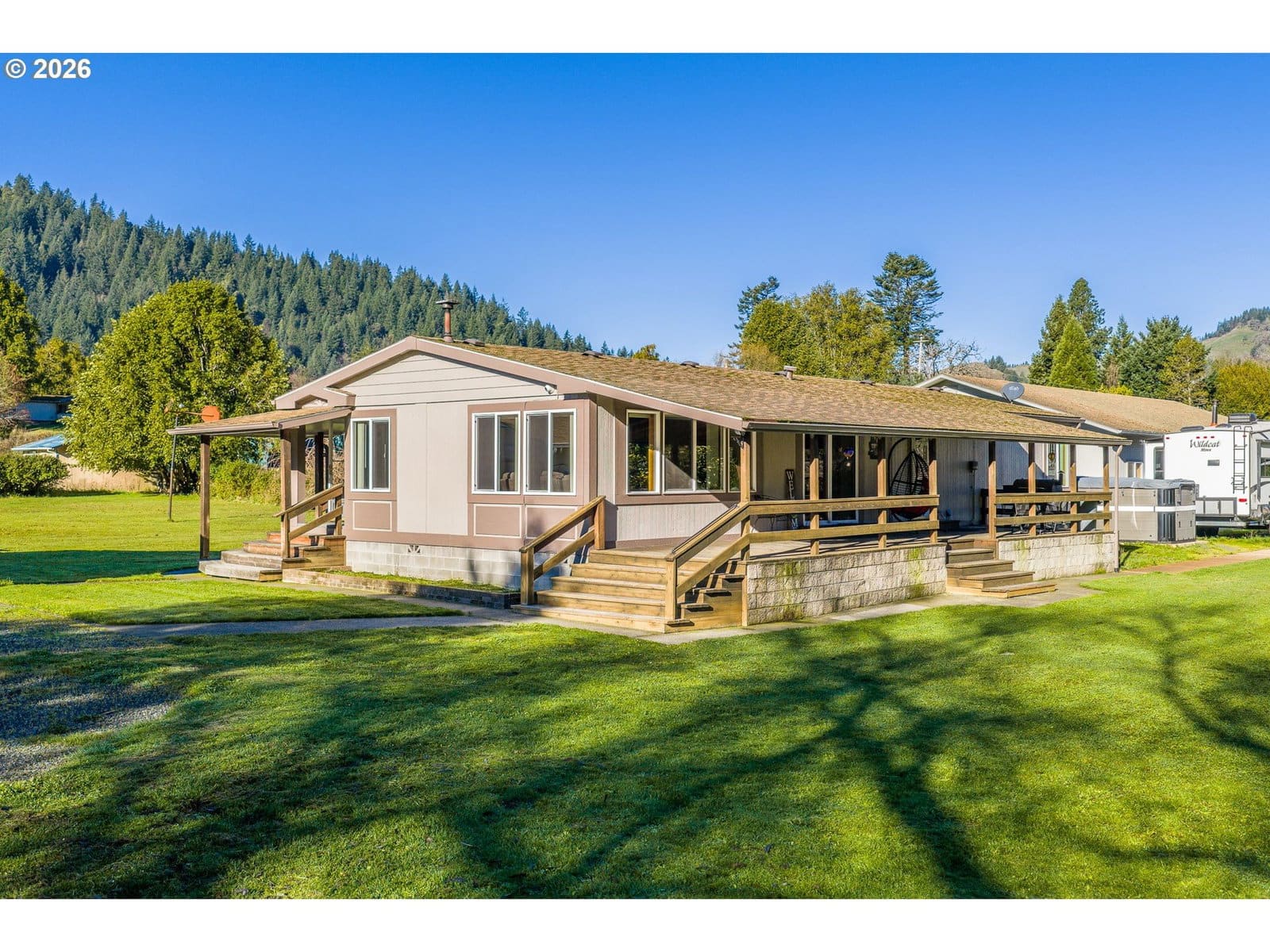 In my opinion this is one of the most beautiful properties you will find! This immaculate, well-maintained one-level Marlette manufactured home is set on 1.84 landscaped acres with South Fork Coquille River frontage and city services. Built in 1992, the home offers 1,512 sq.ft, 2 bedrooms, and 2 bathrooms in a bright, open floor plan.The gourmet kitchen features granite countertops, built-in appliances, a breakfast bar, and ample cabinetry. The dining room opens to the deck through a sliding glass door—perfect for indoor/outdoor living. The spacious living room is filled with natural light and includes a pellet stove, while a heat pump provides efficient heating and cooling year-round. The primary bedroom is generously sized with a walk-in closet. The primary bath offers a garden tub, separate shower, and quartz countertops. The guest bathroom has also been updated with quartz counters. Enjoy the outdoors from the covered porch/deck, surrounded by beautifully landscaped grounds. A detached triple-car garage provides excellent storage and workspace. Including, 0.51 acres behind the home that is a separate tax lot, previously home to a residence, offering potential for a second home or shop (buyer to verify). A rare combination of beauty, privacy, and opportunity—this property is truly worth a look!