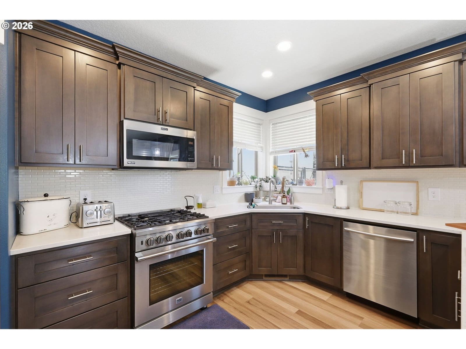 Beautiful 4 bedroom, 2.5 bath home in a desirable upscale neighborhood featuring quality craftsmanship, gas appliances and gas fireplace. Quartz countertops throughout, and custom cabinetry with soft-close drawers and doors. The Kitchen offers stainless steel appliances, and ample storage. The spacious primary suite accommodates a king-sized bed and additional furnishings, complete with a large walk-in closet and spa-like en-suite designed for comfort and relaxation. Enjoy outdoor living under the pergola, perfect for gatherings or quiet evenings. Inground sprinklers, RV parking along with an EV charger (48 amp. hardwired). A well-designed home combining comfort, convenience, and timeless appeal. In the case of multiple offers, a date & time will be set for response.