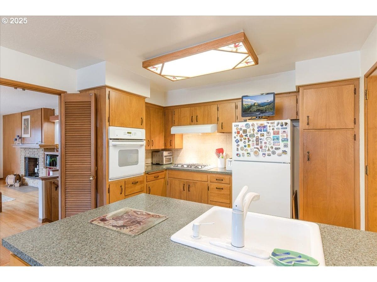 West Slope home(Sunset Heights), ready for you to make it your own. New neutral interior paint. Warm hardwood floors, a cozy fireplace, and built-in bookshelves create an inviting living room. In the evening you will enjoy viewing sunsets from the bay window. The kitchen includes all appliances and offers convenient access to the garage and the backyard deck. Upstairs, hardwoods continue in the hallway and all three bedrooms, including the primary suite with its own bathroom . A guest bathroom with vinyl flooring completes the upper level. The lower level features a spacious additional living space with a second wood burning fireplace and access to the private backyard. You’ll also find a fourth bedroom, a full bathroom, and a laundry area on this floor(washer and dryer stay). Enjoy a fully fenced, private backyard with a newer deck—perfect for relaxing or entertaining. An outdoor shed provides extra storage. Roof, exterior paint, and rebuilt deck are about 3 years old. Conveniently located just minutes from Hwy 26 and 217. Beaverton School District.Home is in Washington County. Welcome home!