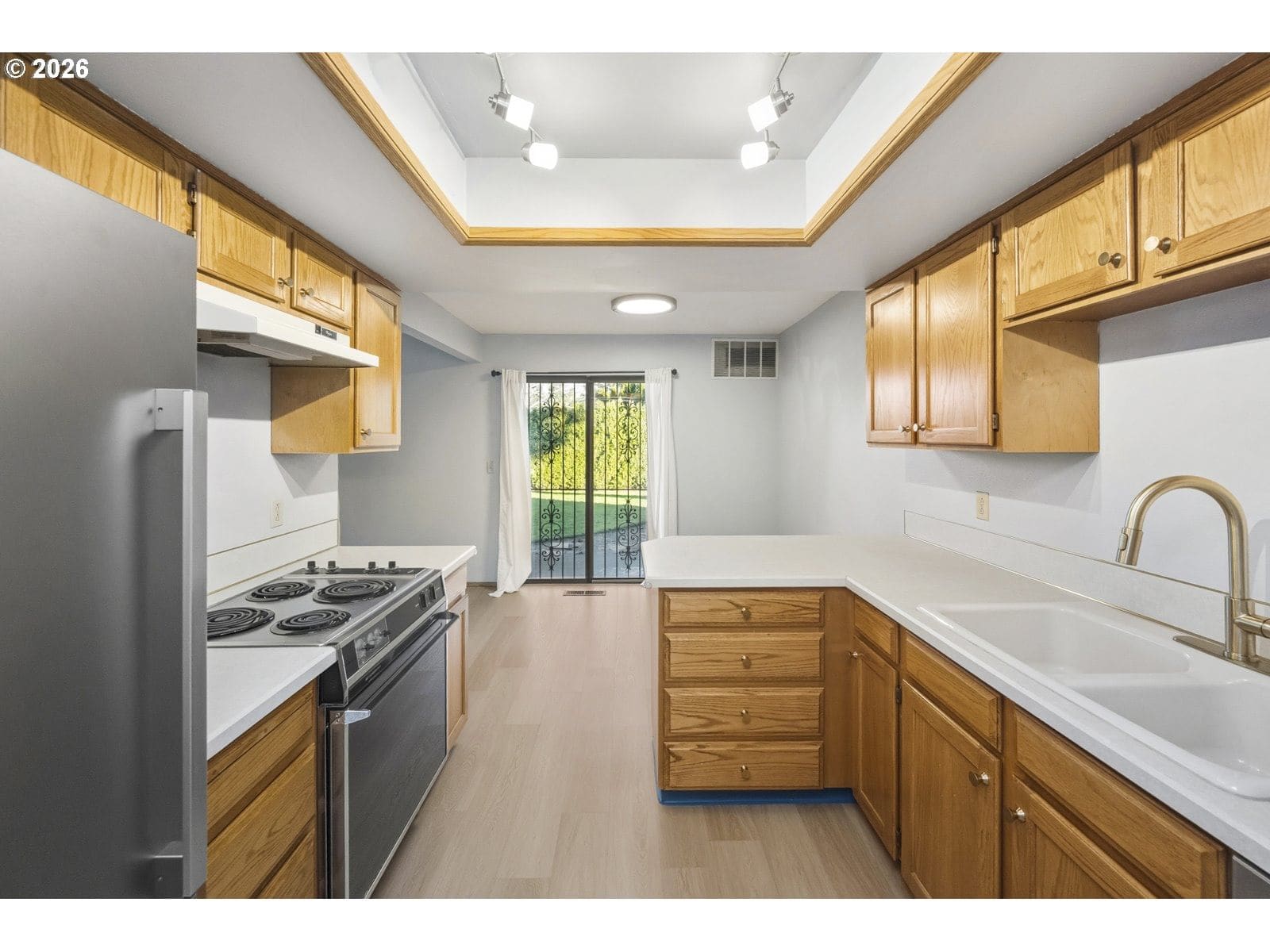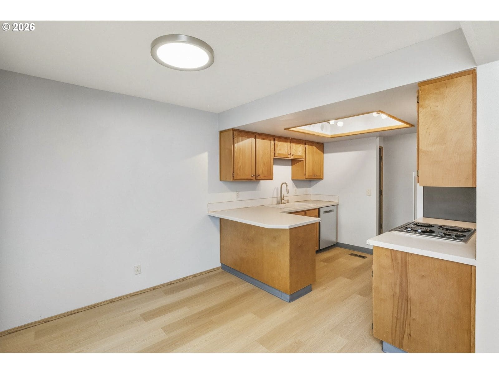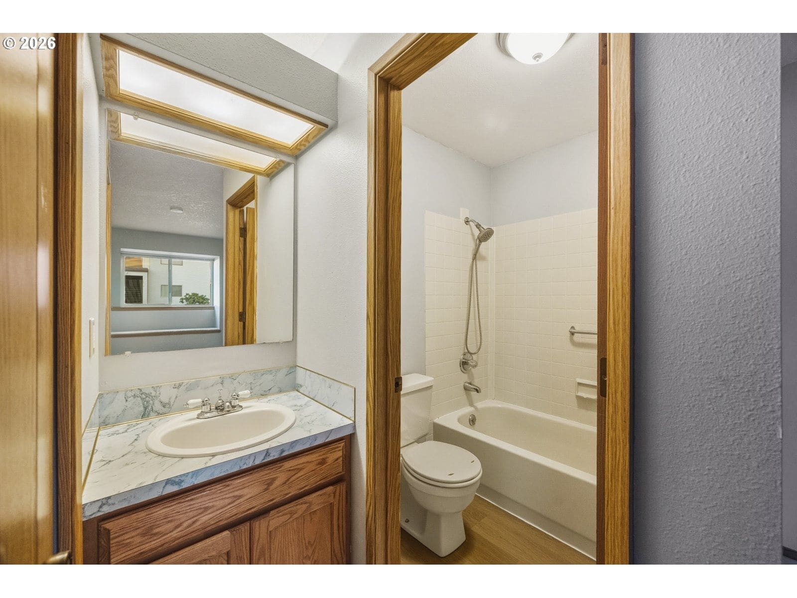 East Portland awaits! At just under 1,000 square feet, this garden-level condo certainly packs a punch. The kitchen has plenty of storage in the solid honey oak cabinets, plus countertop seating at the end of the peninsula and looks out to full-length sliding glass doors that open onto the lush green backyard. The spacious living room has a large established rhododendron just outside that promises spring blooms. The oversized main bathroom features washer and dryer (included with sale!) The primary bedroom has a built-in window seat, walk-in closet, and full en-suite bathroom. A second bedroom with a good sized closet round out the floor plan. Featuring a detached one-car garage for secure parking or storage.