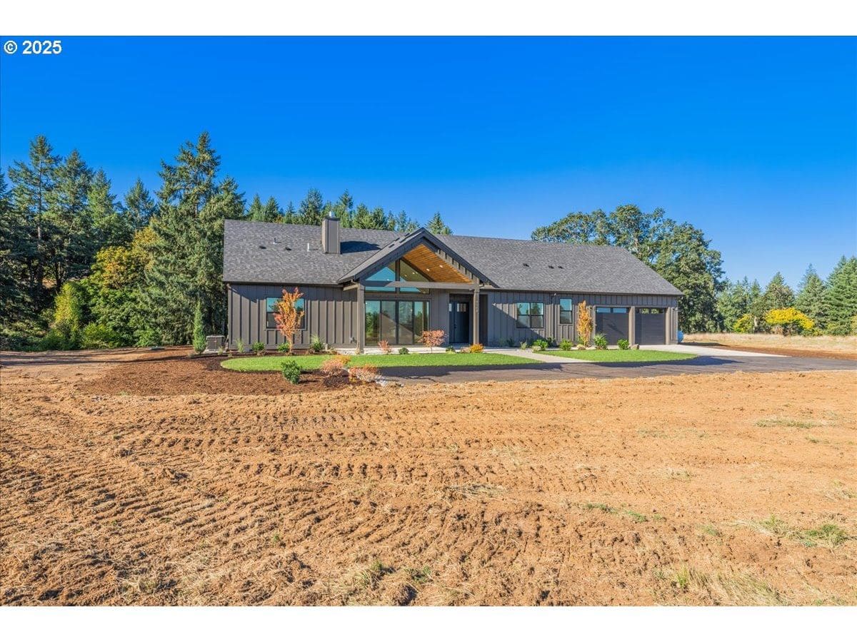 Welcome to this stunning single-level Mascord “Tiffany” plan, newly built by streets of dreams builder, Del Boca Vista. This home is perfectly sited on 4 usable acres in the heart of Oregon wine country. Located on SE Eola Hills Road in Amity, this designer home blends timeless architecture with modern finishes and thoughtful details throughout.The 2,310 sq ft floor plan offers effortless main-level living with soaring ceilings, wide hallways, and an open concept great room that seamlessly connects to the covered outdoor living area—ideal for entertaining year-round. The chef’s kitchen features a large quartz-topped island, custom cabinetry, walk-in pantry, and high-end appliances.The split bedroom design ensures privacy, with a luxurious primary suite boasting a spa-like bath, walk-in shower, soaking tub, and expansive closet. Designer lighting, white oak flooring, and curated finishes give the home a refined yet welcoming feel.The oversized 3-car garage with shop space is perfect for hobbyists or extra storage. Outdoors, you’ll enjoy room for gardens, animals, or simply soaking in the sweeping views of rolling hills and vineyards that define this sought-after location.All this just minutes to Amity, McMinnville, and Newberg, with quick access to renowned wineries, farm-to-table dining, and the charm of Oregon wine country. A rare opportunity to own a brand-new custom home on acreage in one of the Valley’s most desirable settings.