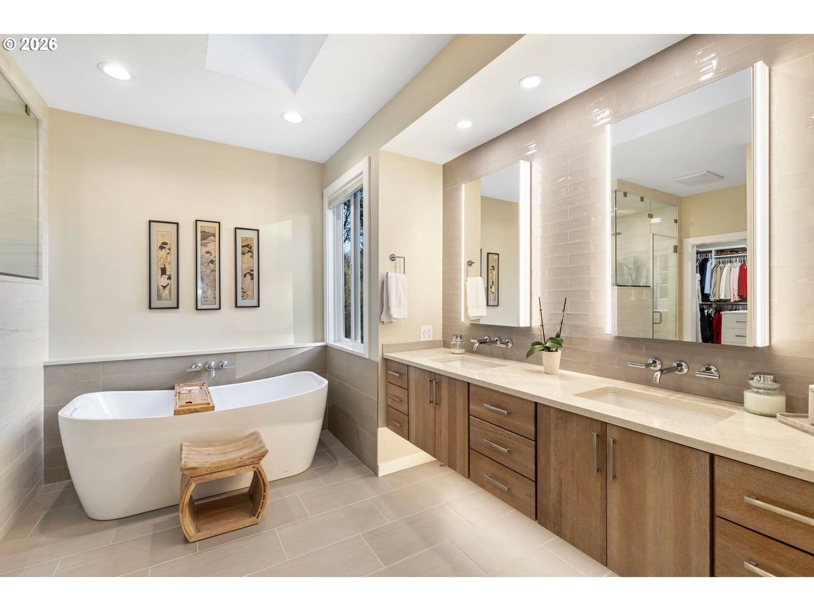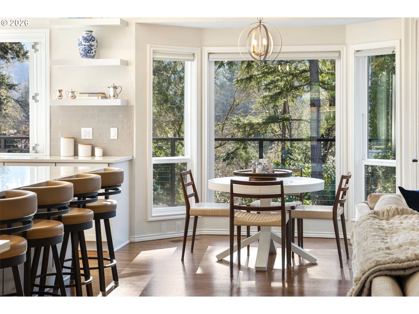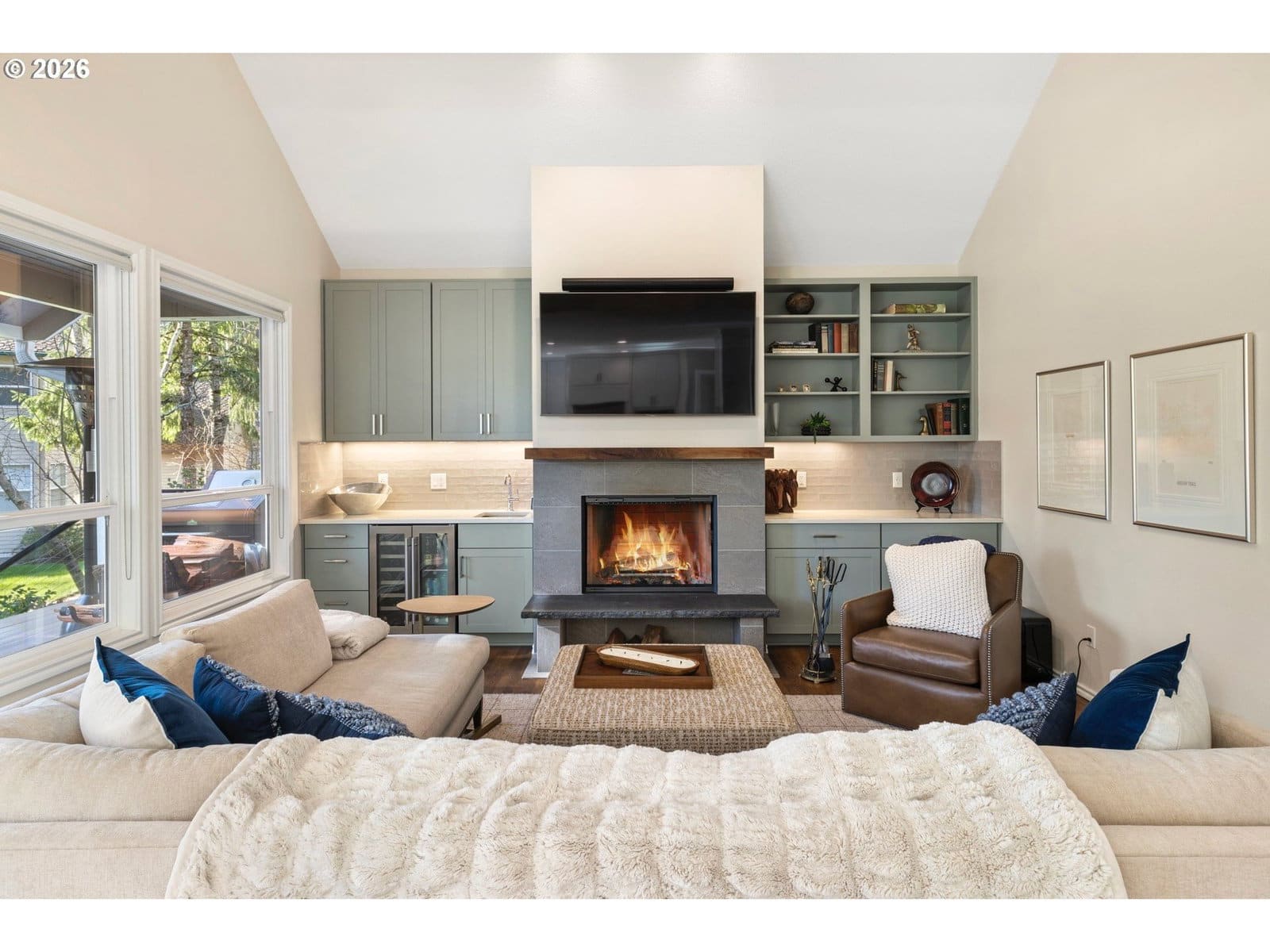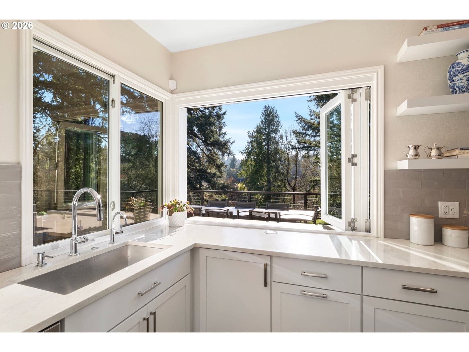 This stunning traditional sits on nearly a third of an acre at the end of a quiet cul-de-sac in the highly desirable Bridlemile neighborhood. A one of a kind floor plan and head to toe remodel that is meticulously maintained and enjoys a forest like green space off the back. The main level features a show stopping kitchen that has all new cabinets, quartz countertops, tile backsplash, a Wolf cooktop, a massive island, a walk in pantry, a breakfast nook, and a one of kind bifold window for access to the outside bar. The family room has a stunning custom gas starter fireplace with builtin cabinets, a beverage and wine fridge and expansive windows. The hard to find primary on the main enjoys high ceilings, deck access and an elegantly updated bathroom with two vanities, a free standing tub, a tile steam shower, and a walk-in closet with a high end custom builtins. The rest of the main level features a cozy den, an entertainer’s dining room, a large formal living room with a gas starter fireplace, a powder bathroom, and a functional laundry room equipped with a sink, fridge and ample counter and cabinet space. The upper level comes with three spare bedrooms, two beautifully updated bathrooms, and a large bonus room that can serve multiple purposes. The one of a kind exterior enjoys a stunning green belt and creek, mature trees and shrubs, and a large flat grass area perfect for outdoor activities. Entertaining is a dream with the new composition deck stretching nearly the entire width of the home, an outdoor bar, a covered area for all weather enjoyment and a inviting fire pit. The massive crawlspace is accessed with a standard size door and is perfect for storage, a shop or opportunity to finish for additional living space. Rest easy with the newer 50 year roof, oversized 3 car garage, high end cedar siding, fresh interior & exterior paint & more! Top of the line schools and only minutes from Hamilton Park, Multnomah Village, Oregon Zoo, OHSU, major highways & trails! [Home Energy Score = 2. HES Report at https://rpt.greenbuildingregistry.com/hes/OR10243711]