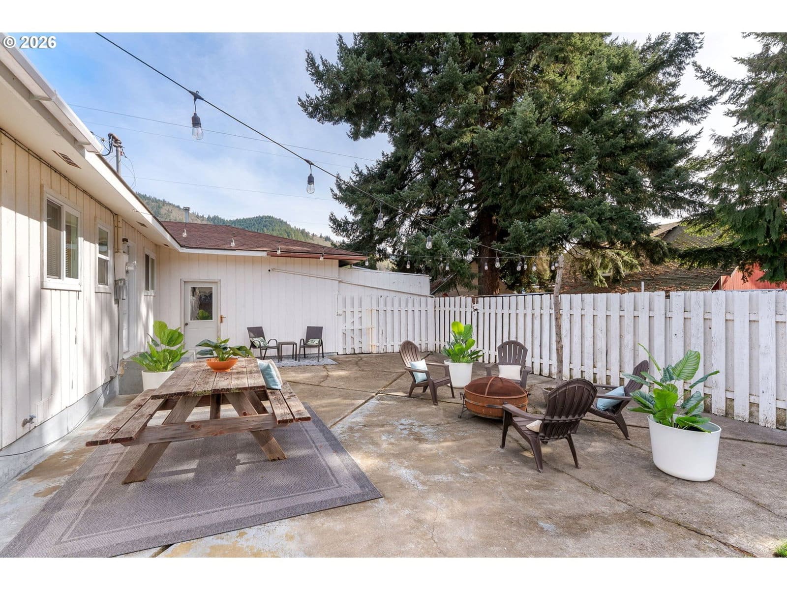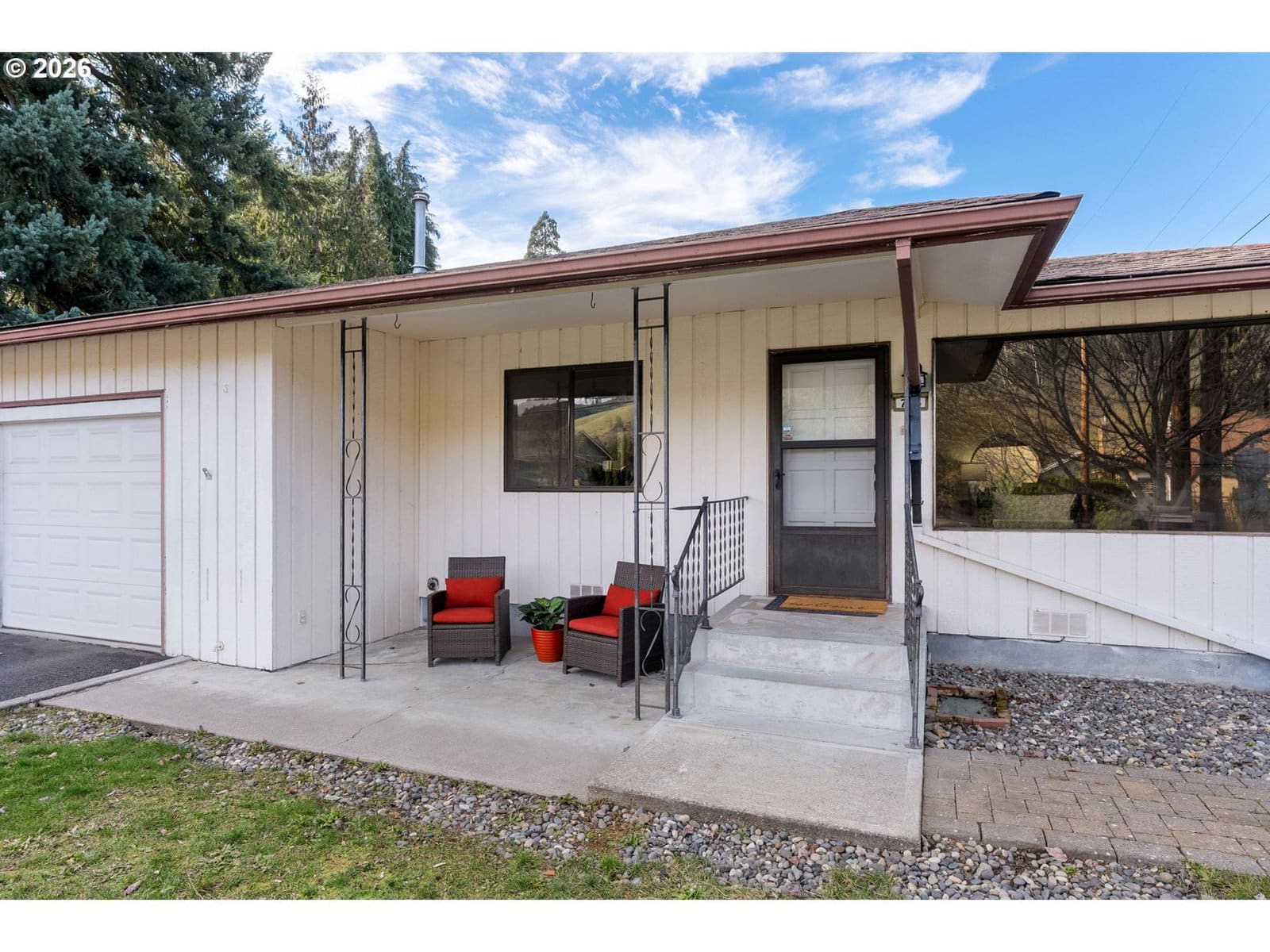 Welcome to this charming one-level home in the heart of White Salmon. Conveniently located close to town, this 3-bedroom, 1.5-bath home offers territorial views of Burdoin Mountain, a great functional layout, and real hardwood floors in the living and dining areas that add warmth and character to the space. The fenced backyard is a true highlight, featuring a spacious patio ideal for entertaining, relaxing, or hosting gatherings, along with raised garden beds perfect for gardening and outdoor living. Zoned R2 with alley access, the property offers strong future potential, including the possibility of an ADU (buyer to perform due diligence). A detached 437 sq ft insulated and drywalled shop adds valuable flexible space that could be used for storage, a workshop, studio, game room, or bonus living area. The property also includes two carports—one off the alley ideal for boat or potential camper storage—one attached garage, and recently installed mini-split systems for efficient year-round comfort. This is a rare opportunity to own a well-located, versatile property with outdoor living, development potential, and strong in-town appeal.