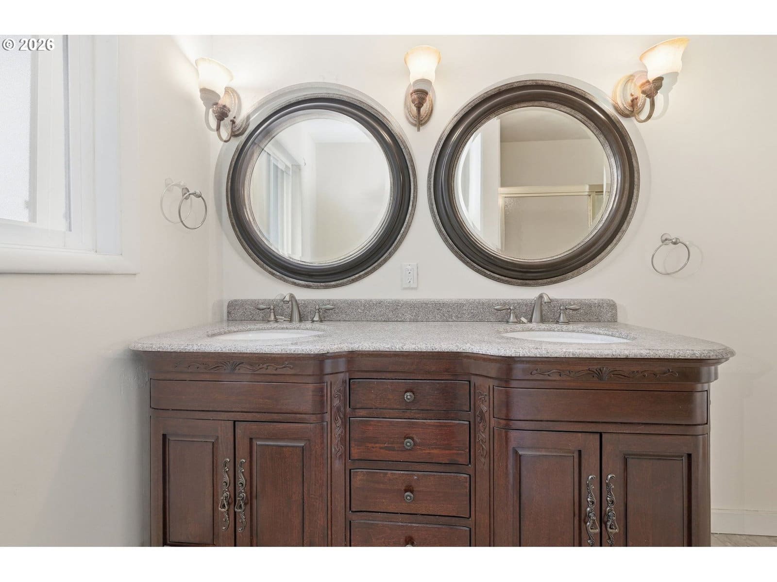 This 3-bedroom, 2-bath home offers a great floor plan and timeless character, ready for its next chapter. Original hardwood floors bring warmth and charm, while fresh interior paint creates a clean canvas for your personal touches.The kitchen features granite countertops, a tile backsplash, and a Whirlpool oven, offering solid bones and functionality with room to make it your own. Just off the kitchen, the spacious family room includes a wet bar and one of two wood-burning fireplaces, making it an inviting space for gatherings or cozy evenings in.The primary suite features a generous layout with a large walk-in closet, dual sinks, a walk-in shower, and a marble-set jacuzzi tub—a comfortable retreat with opportunity to refresh and customize. A second bathroom also includes dual sinks, providing convenience for guests or household members.Outside, the wrought iron gate opens to a private backyard with an irrigation pump and its own well, offering excellent potential for gardening or outdoor living. A 2-car garage adds everyday practicality.With its solid layout, charming features, and room for TLC, this home is a great opportunity for buyers looking to add value and make it their own.