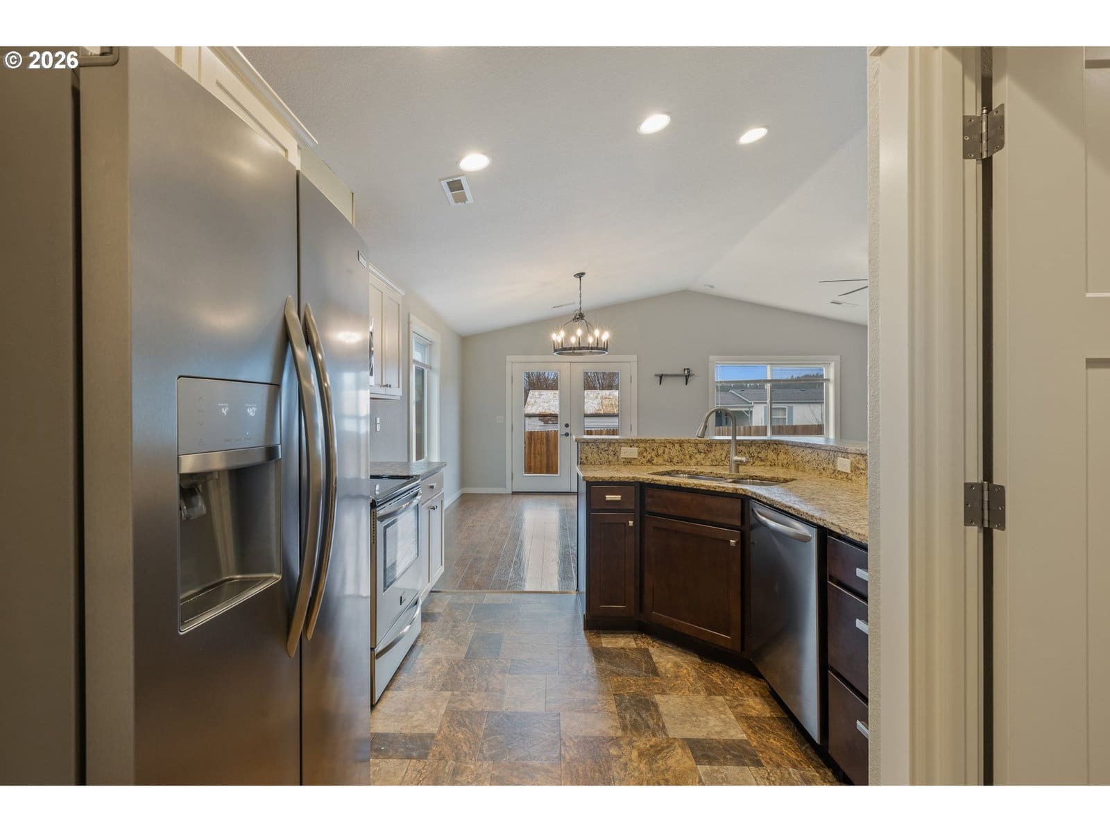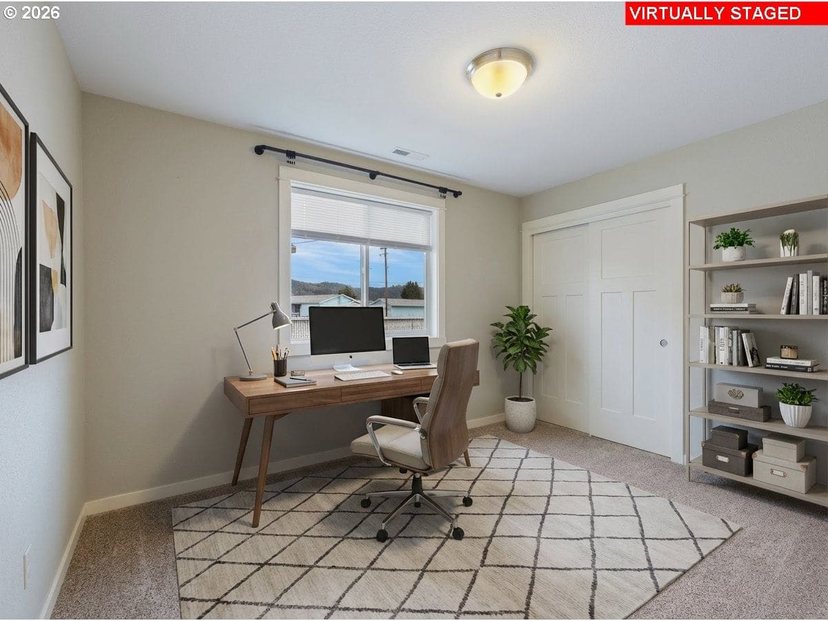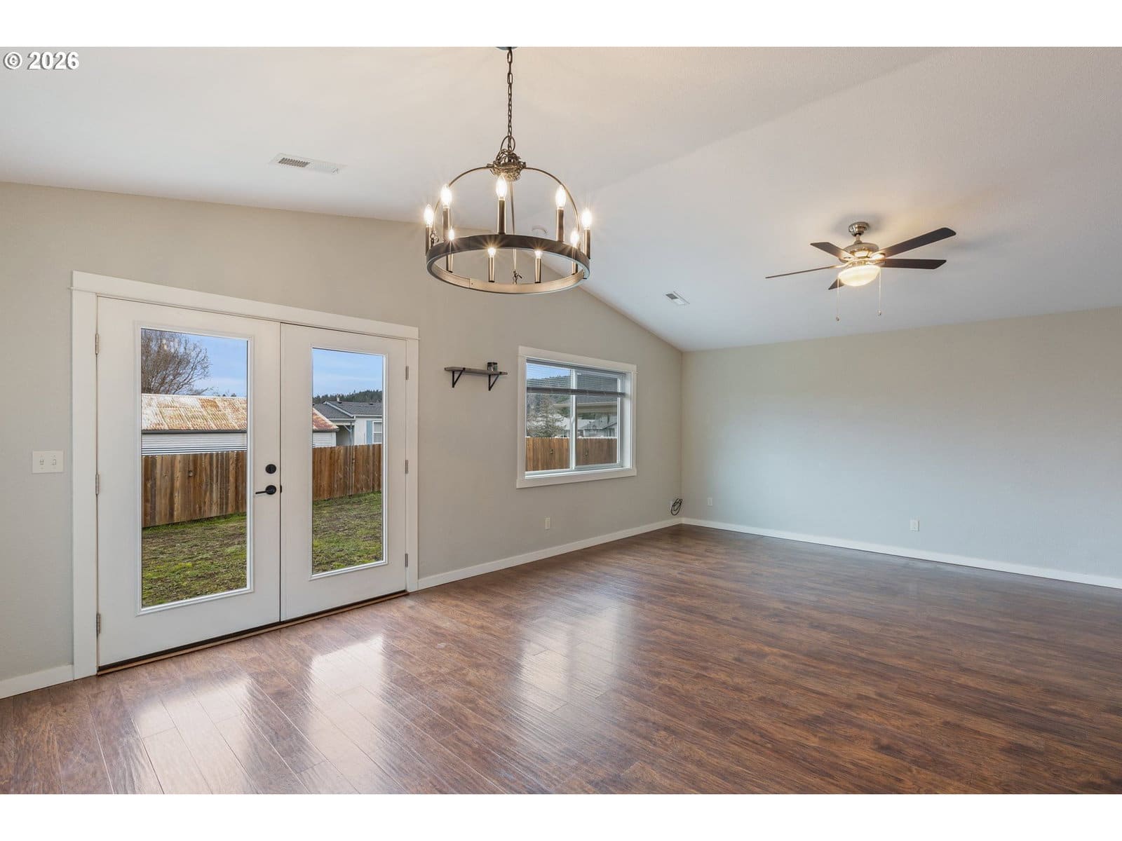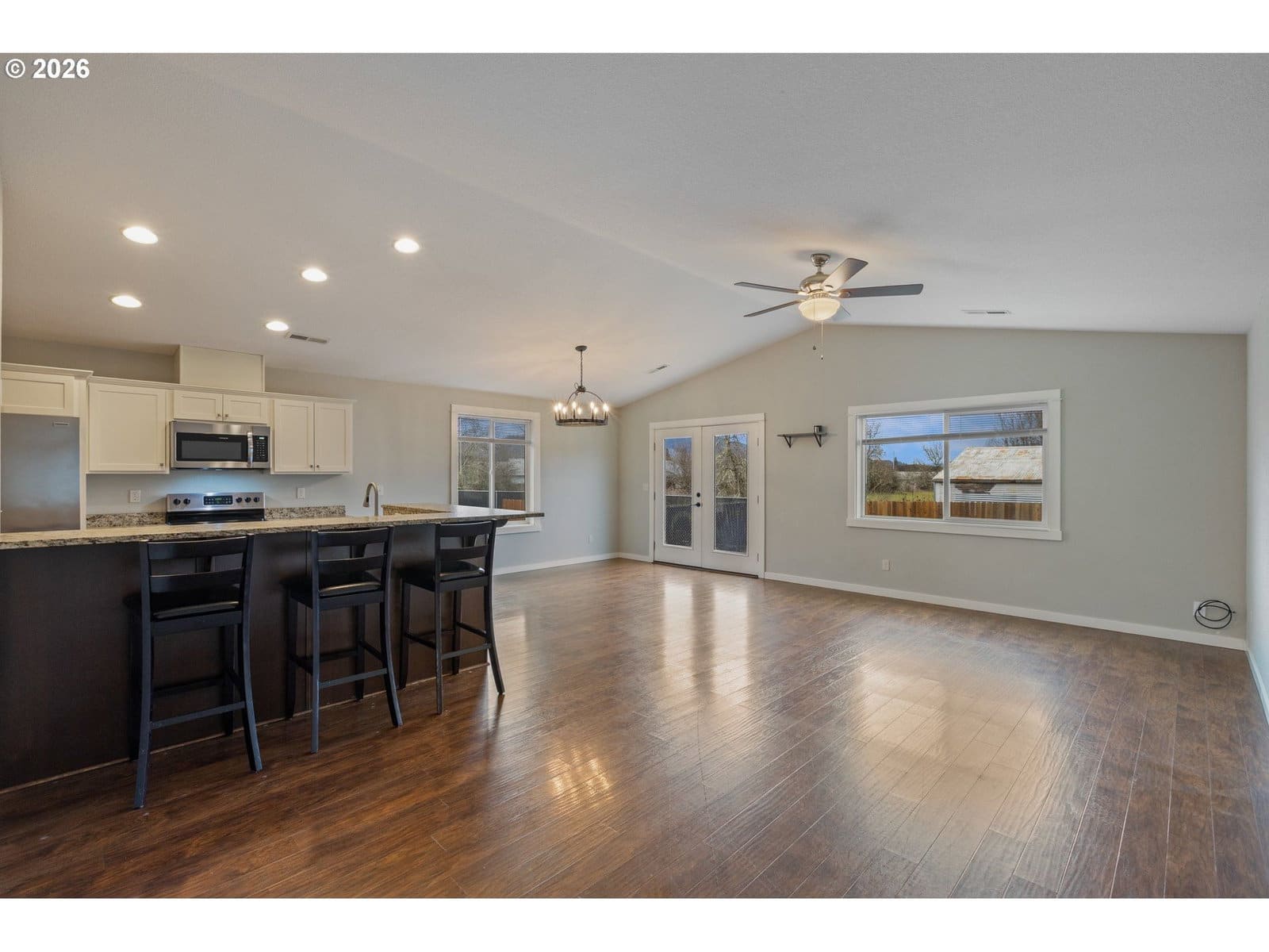 Welcome to this impeccably maintained 2016-built Craftsman Ranch home, where timeless architectural details meet the ease of modern, single-level living. The striking curb appeal makes a lasting impression, featuring contemporary board and batten siding, elegant gables, and a crisp, high-contrast color palette. This is a home designed for those who appreciate both style and substance, offering a spacious open floor plan that maximizes every square foot and creates a seamless flow for everyday living. As you step inside, the entryway leads you into an inviting living room that serves as the heart of the home. Soaring vaulted ceilings and a stylish ceiling fan create an airy feel, while durable luxury vinyl plank (LVP) flooring flows throughout the entire open space. The gourmet kitchen is a true centerpiece, showcasing stunning textured granite countertops that offer ample workspace. Complete with a large pantry and stainless steel appliances, this kitchen is as functional as it is fashionable, making it the ideal spot for morning coffee or hosting holiday gatherings. The primary suite is a true retreat, featuring a generous walk-in closet and a contemporary walk-in shower. Two additional spacious bedrooms provide plenty of versatility, whether you need room for family, a dedicated guest wing, or a bright home office. Practicality is woven throughout the design, including a convenient laundry room situated just off the oversized two-car garage to keep daily chores organized and out of sight. The living experience extends outdoors through elegant french doors that lead to a patio and a fully fenced backyard. This outdoor space is your personal canvas—perfect for summer barbecues, gardening, or simply relaxing in the fresh Oregon air. Enjoy quick I-5 access for a hassle-free commute and easy weekend trips to the Umpqua Valley's famous wineries, trails, and rivers. Combining modern luxury with an unbeatable location, this home is a must-see—schedule your tour today!
