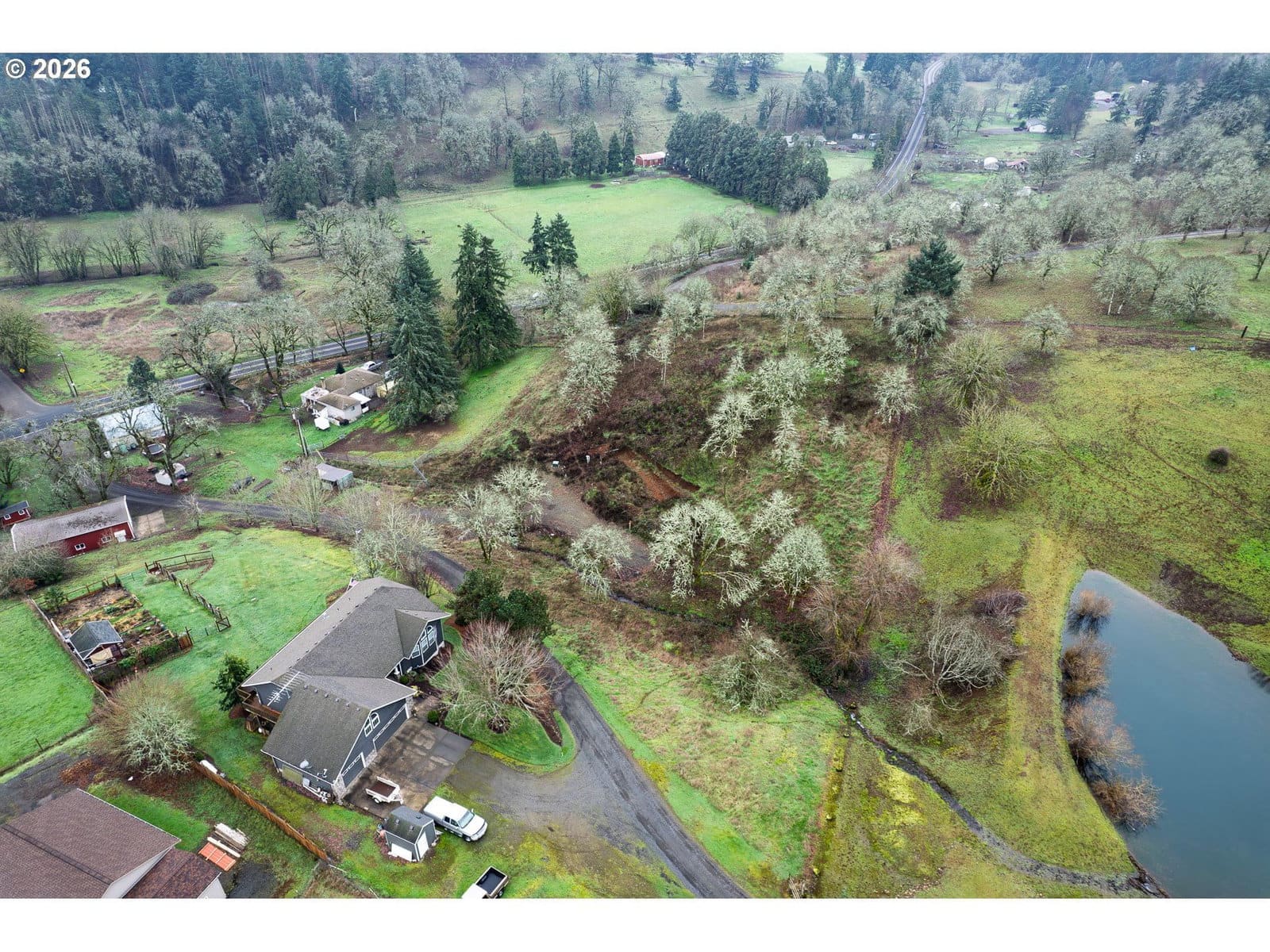Property is located on a private road in the rural area of Turner w/views of the Cascade mountain range. The lot is almost 2 acres w/slight sloped area and flat area great for building site as there is already a dig out for the custom already approved building design the seller has or bring your own vision and build. Property has metered electric already installed and ready to go, shared well w/recorded easement, and septic approval. Park on property for showings (gravel parking), please do not block the road as it's a private driveway. Property also has a seasonal creek running through it. Check with the county for MFH, buyer to do their own due diligence (MFH are on that private road).