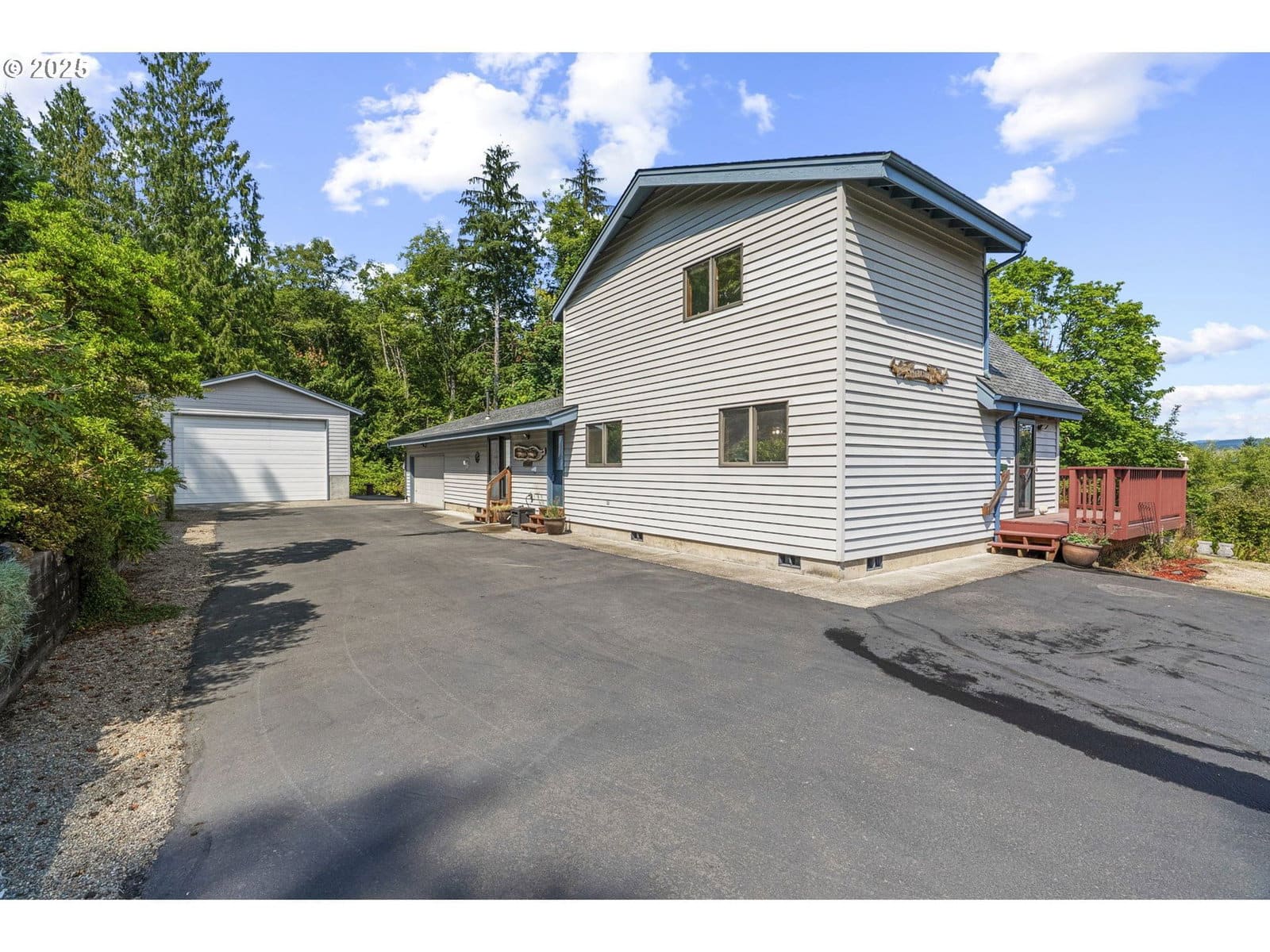 3 bed 2 bath Custom Home Minutes from I5. This Home has a Beautiful Scenic View with Ample Privacy. Outside there is a Large 864 Sq Ft Shop w/ Large Built in Walk in Meat Storage Cooler. Off the Large Back Deck the View and Hot Tub awaits. There are Apple Trees, Plumb Trees, Blueberries and More, plus a Large Garden. The Chicken Coop could provide Fresh Eggs and the security gate at the bottom of the driveway makes things that much better. Inside the large clerestory windows emphasize the view even more. The kitchen is updated with a beautiful island as well as a fully updated primary bath. This has been an amazing home for 30+ years and the opportunity to make it yours is now. Call your favorite Realtor for a showing today