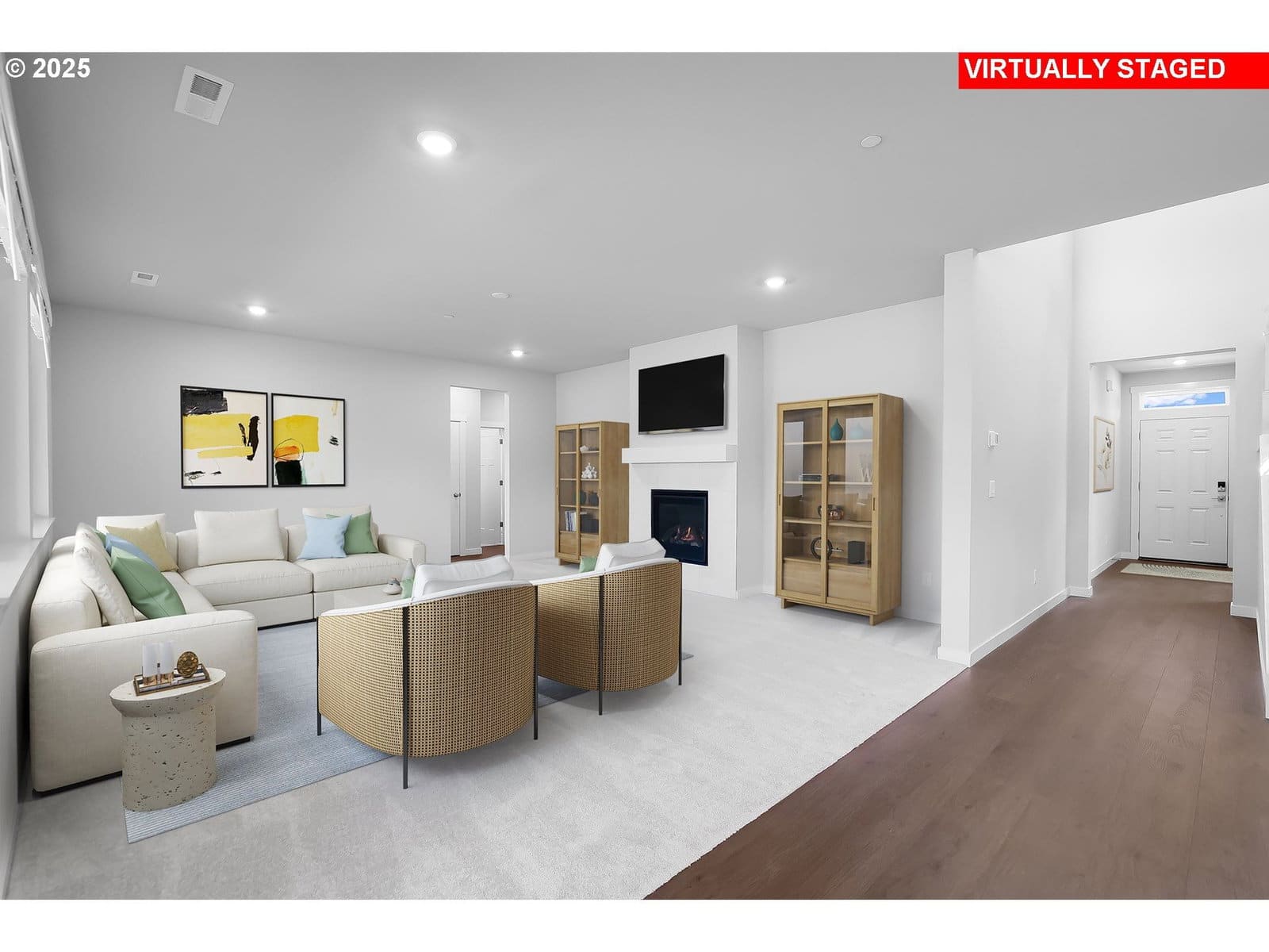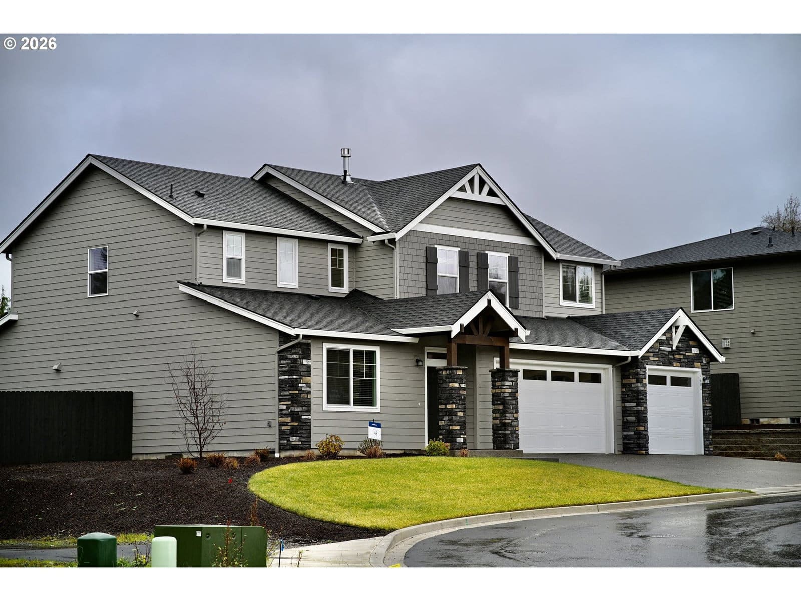 This two-story new construction Hammond home in Salmon Creek Ridge features a three-car garage and is just minutes from Salmon Creek trails, I-5, and shopping. The main floor includes a private bedroom and bath, a den off the entry, and an open kitchen, dining area, and great room warmed by a fireplace. Upstairs, a loft connects three bedrooms, including a primary suite with a soaking tub and walk-in closet. The kitchen includes quartz countertops, shaker-style cabinets, and a vertical tile backsplash. LVP flooring runs through the kitchen and entry, and LVT covers baths and laundry. The primary bath has a tiled shower with a separate tub. Wooden shelving, landscaping, and fencing complete the home. Central air conditioning, a refrigerator, washer and dryer, and blinds are included. Located on homesite 49, this home is move in ready. Flex credit/closing cost incentive available when financing with preferred lender! Use towards rate buydown and closing costs. Builder Paperwork, 1% E Mto FATCO,