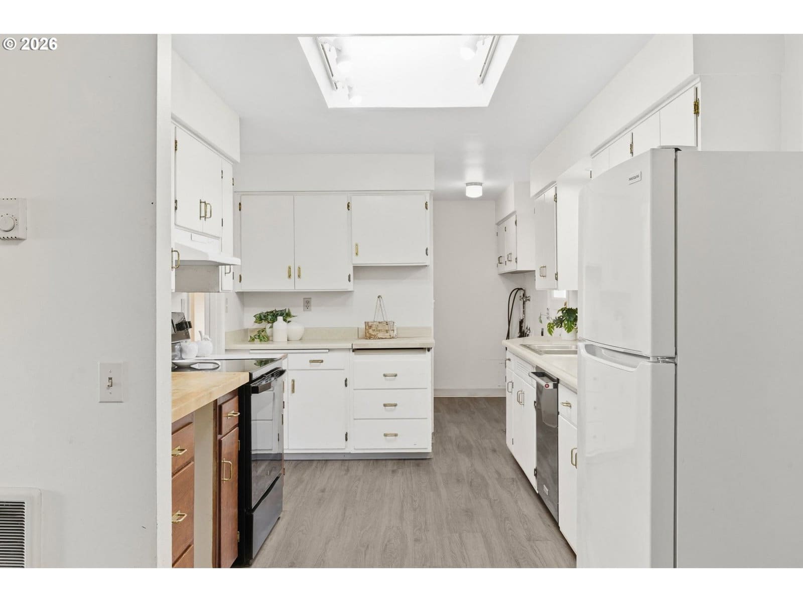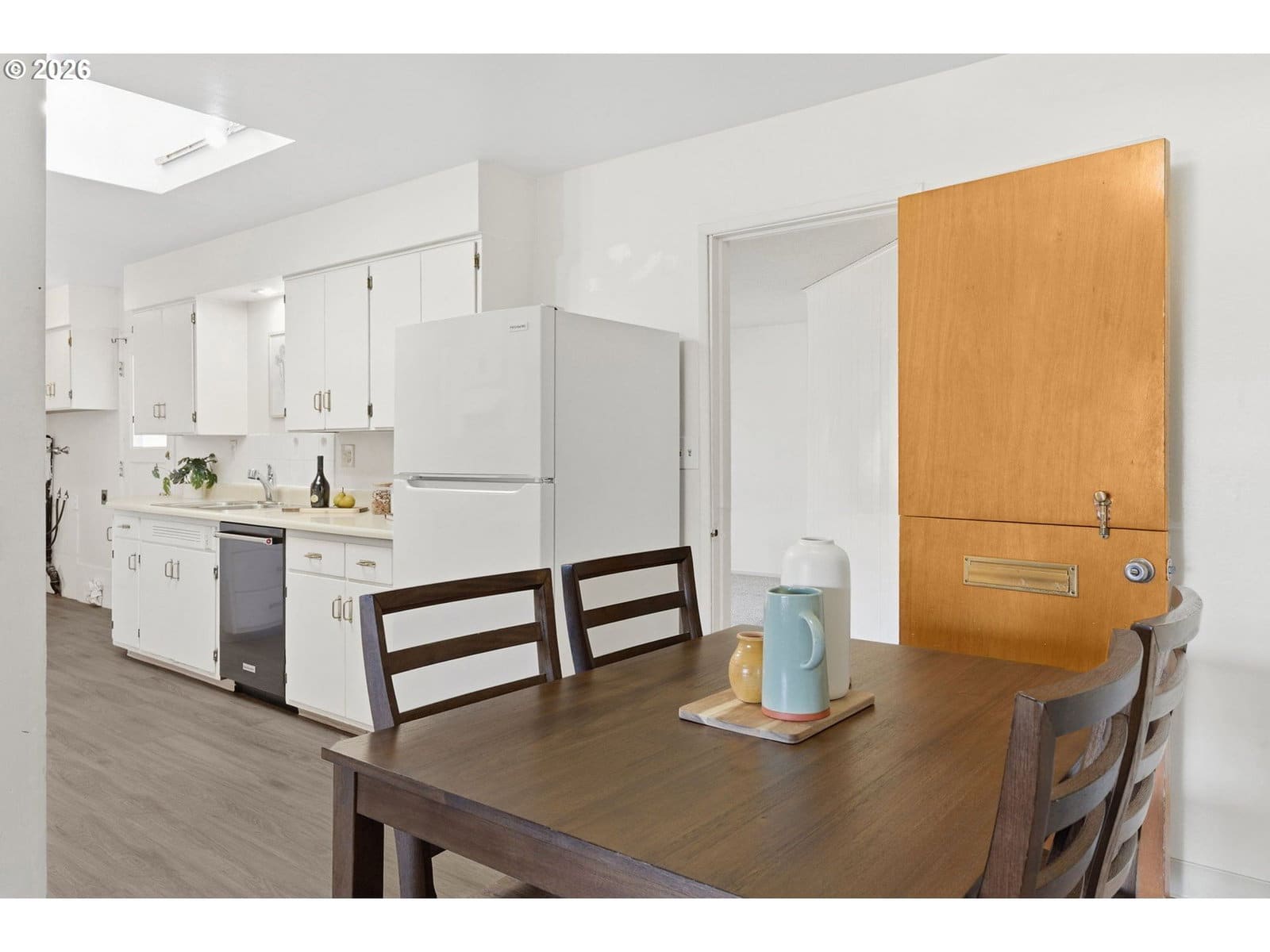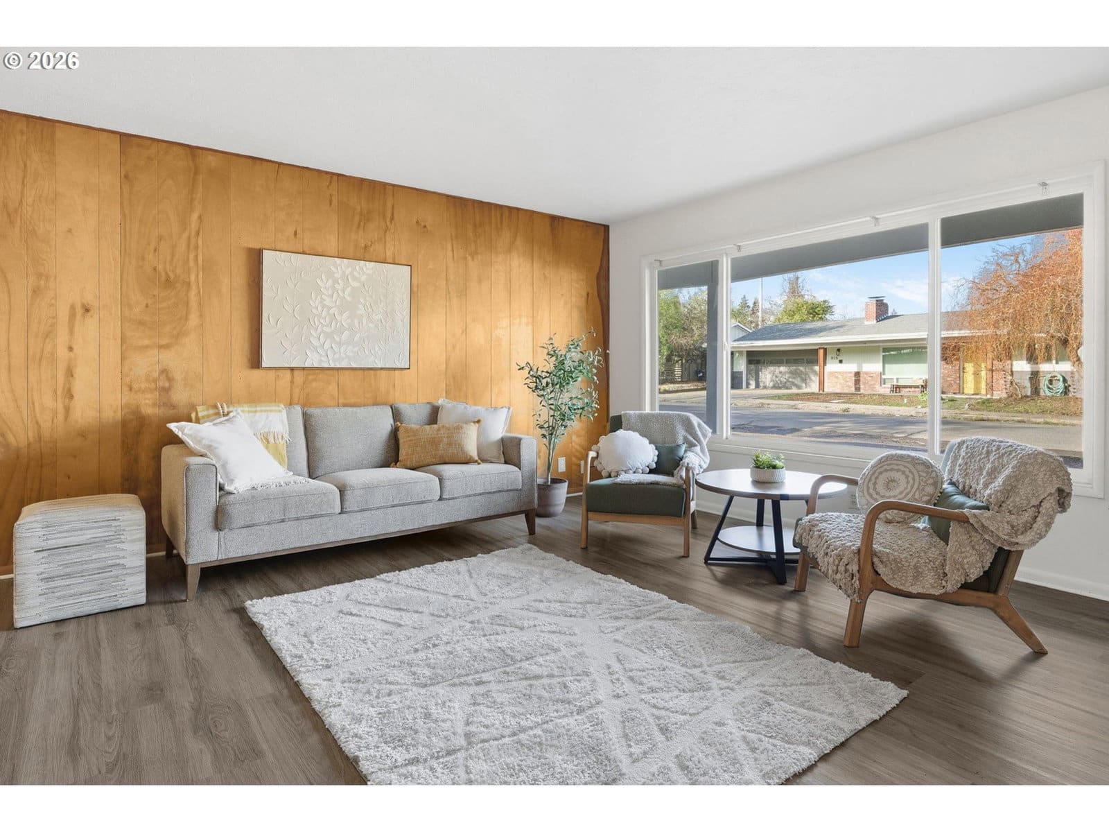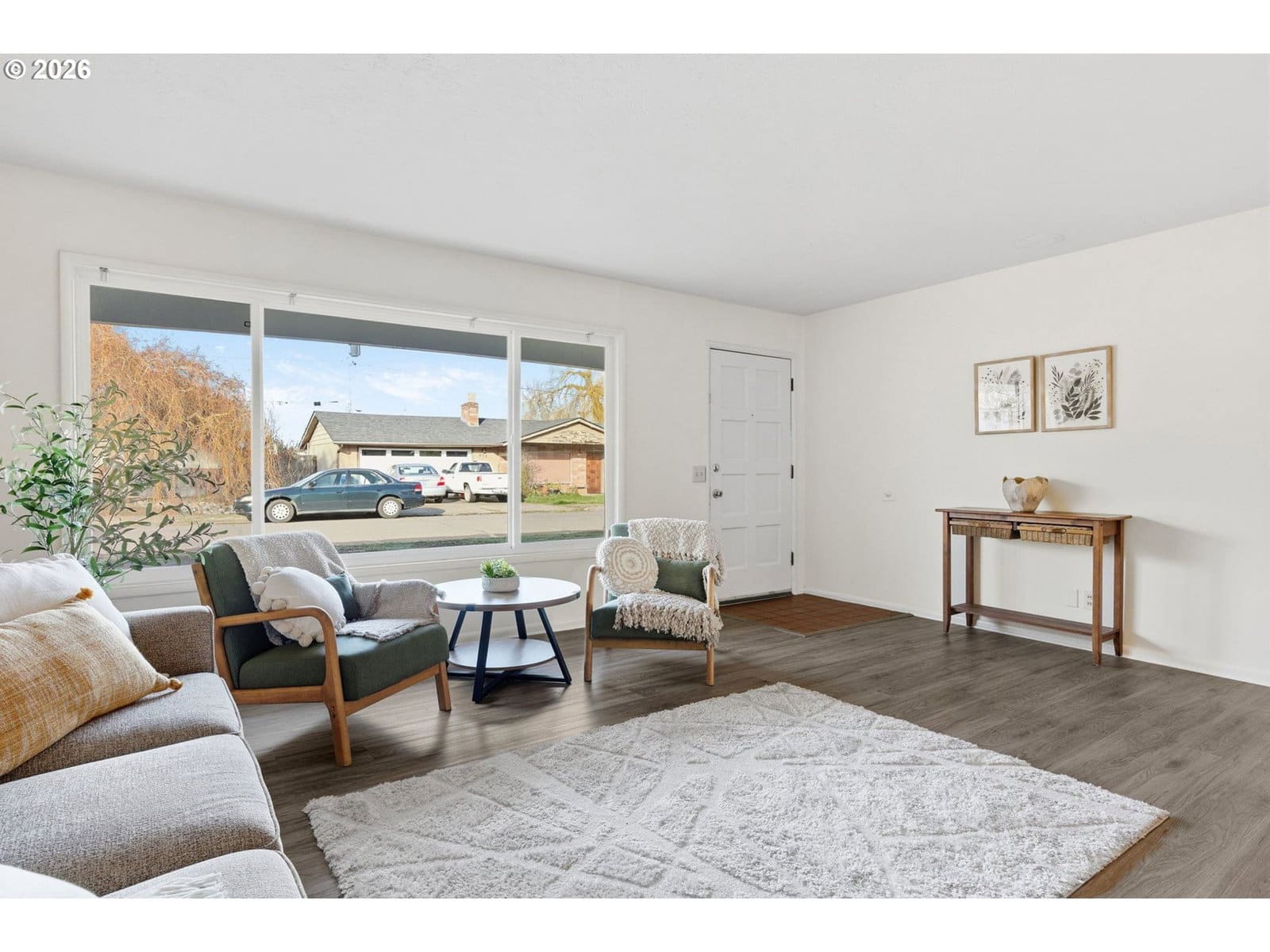 This well-located single-level home checks many of the boxes buyers look for in SE Eugene. With four bedrooms, two living spaces, plus a separately accessed additional office space, it offers flexibility for everyday living, remote work, or a home-based business. A brand-new fence, a level lot with no steps, and easy access throughout make the home especially functional and approachable. The location is a standout: city trails are within view of the front door in one direction and Tugman Park in the other. You’re a short walk or roll to well-loved neighborhood bakeries, restaurants, and shops. Inside, a brick-surround wood-burning fireplace brings a subtle mid-century feel, while original closet built-ins add practical storage and character. The windows are updated and recent electrical improvements have been done. The south-facing backyard is ideal for gardening and has been recently simplified, cleaned up, and seeded creating a clean slate for future landscaping or outdoor living plans. If you’re looking for a sunny South Eugene landing pad, without the steep hills, this is the one!