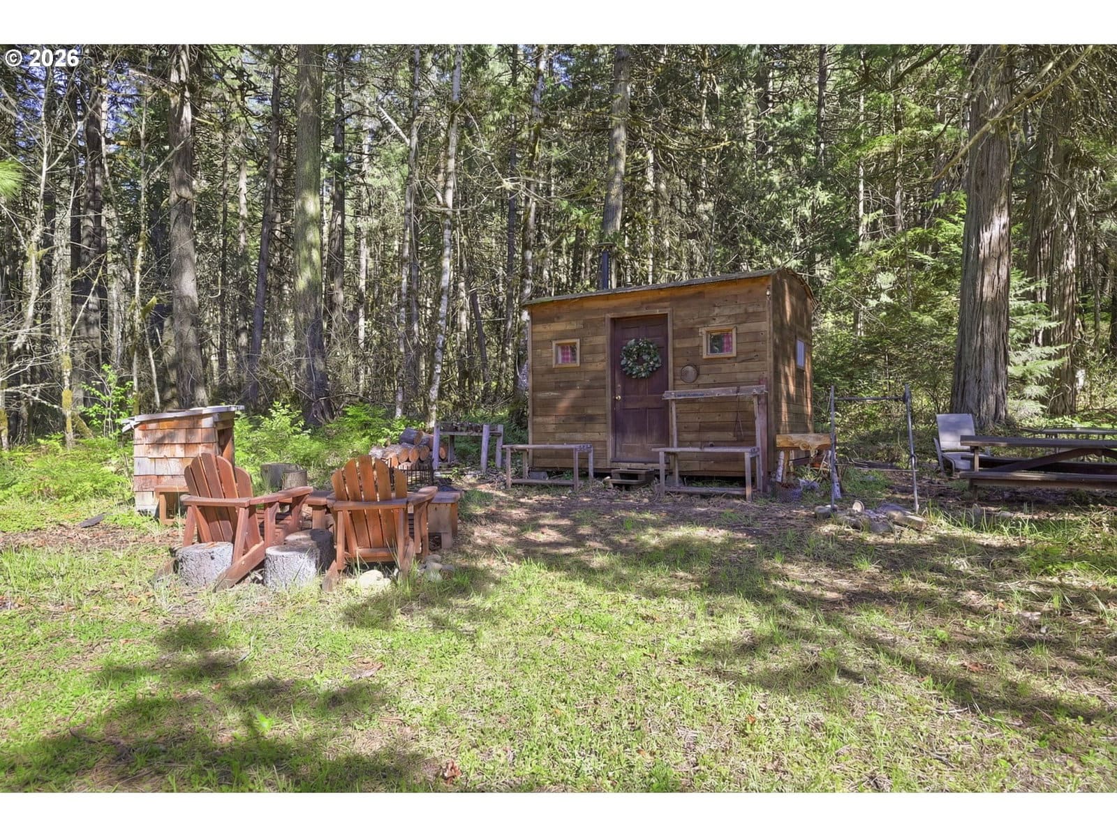 Tucked away in the natural beauty of Oakridge, this well-kept and tastefully updated 3-bedroom, 2-bath home offers the perfect blend of comfort, privacy, and opportunity. Inside, you’ll find birch cabinets, beautiful molding, and a clean, inviting interior with thoughtful paint choices throughout. The kitchen features sleek black and black stainless steel appliances—all of which stay—along with a refrigerator included. Washer and dryer are negotiable. The layout offers an ensuite-style setup with great separation of space, making it ideal for a variety of living situations. Step outside and enjoy your own private retreat, complete with a fenced garden space, cozy firepit, and a charming rustic cabin tucked in the backyard—perfect for relaxing, hobbies, or creating your own little getaway space. Nature paths wind through a couple acres of surrounding forest, and you can even hear the water bustling from the nearby fish hatchery bordering the property. There is a gate at the road for added privacy and offers ample parking, including two 30 amp RV hookups, making it perfect for guests or extended stays. There’s plenty of room for an RV and all your outdoor toys, along with ample outbuildings for tools, storage, and tinkering. A versatile container on-site provides even more space for a workshop or additional storage. Zoned mixed use, this property opens the door to endless possibilities. Whether you’re looking to run a business from home, build a dedicated commercial space, or create a live/work setup, the flexibility here is hard to find. There’s potential to operate a business on-site while enjoying the convenience of living on the same property—making it ideal for entrepreneurs, hobbyists, or anyone looking to combine lifestyle and livelihood in one unique setting. Minutes from Hills Creek Dam for fishing and water sports, surrounded by waterfalls and hiking trails, only 30 minutes to the ski resort, this is your chance to own a slice of PNW paradise!