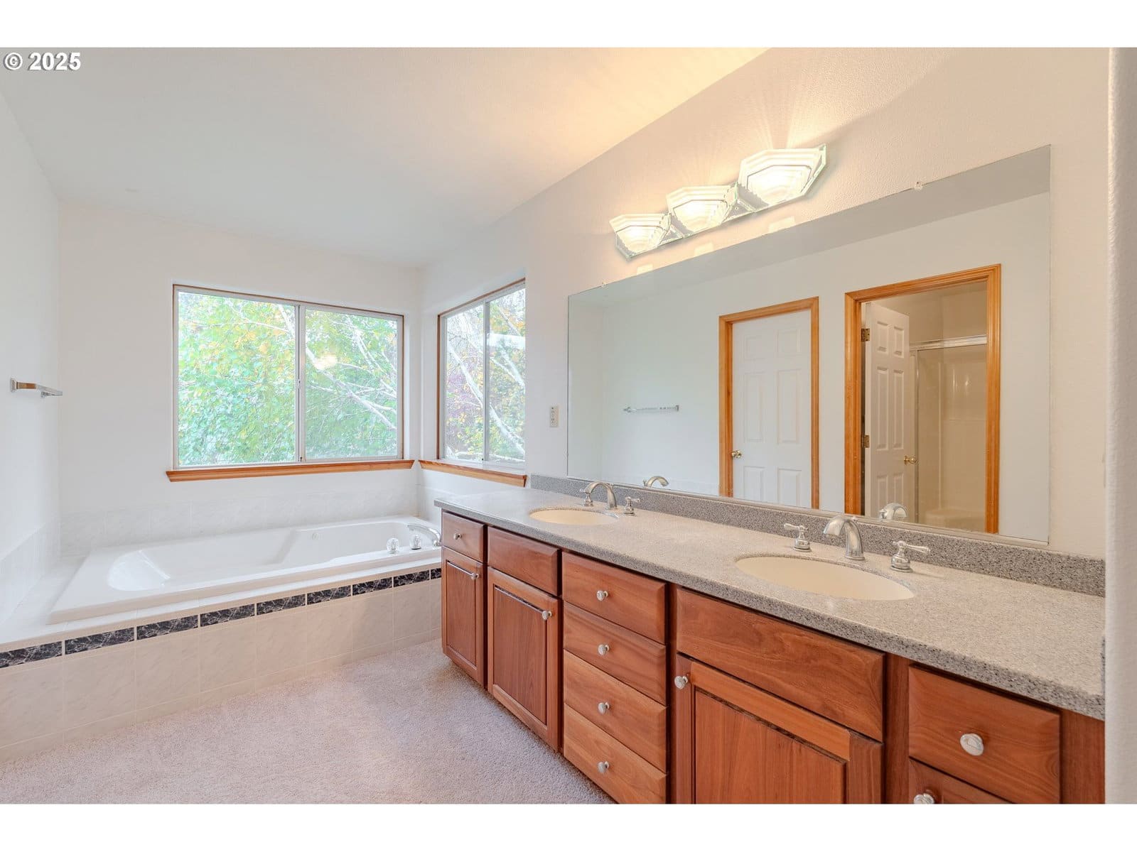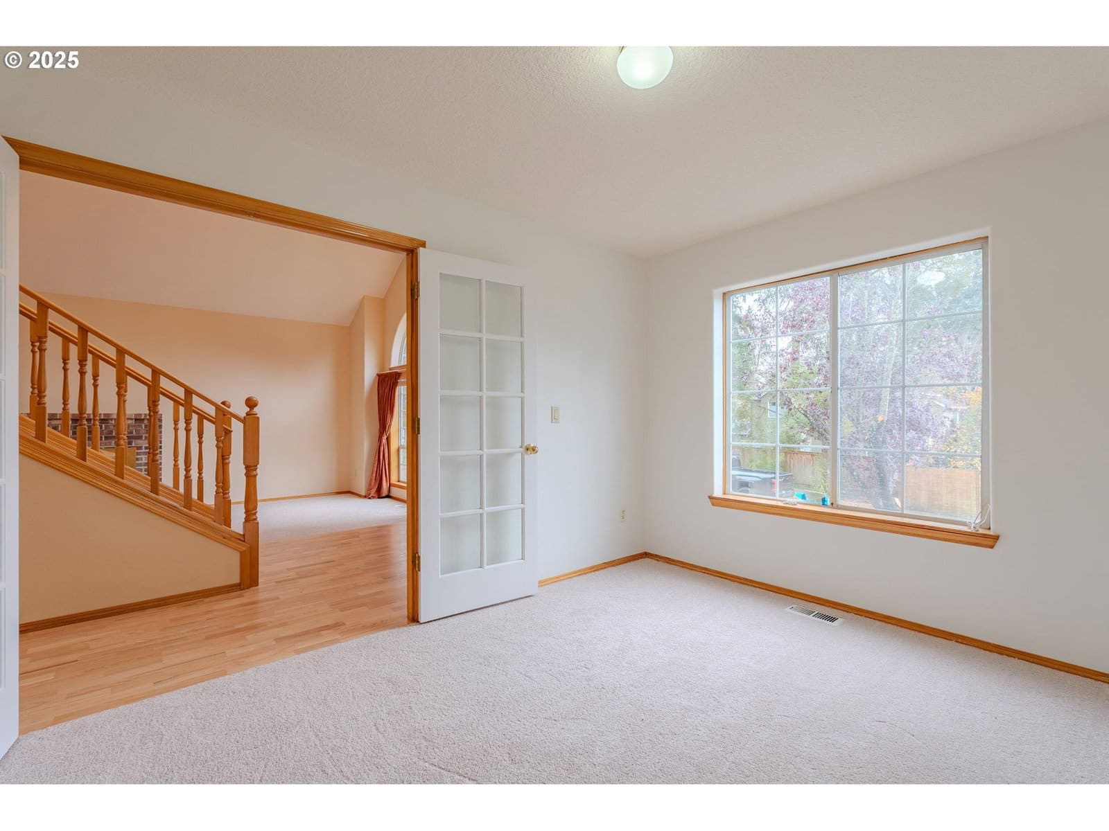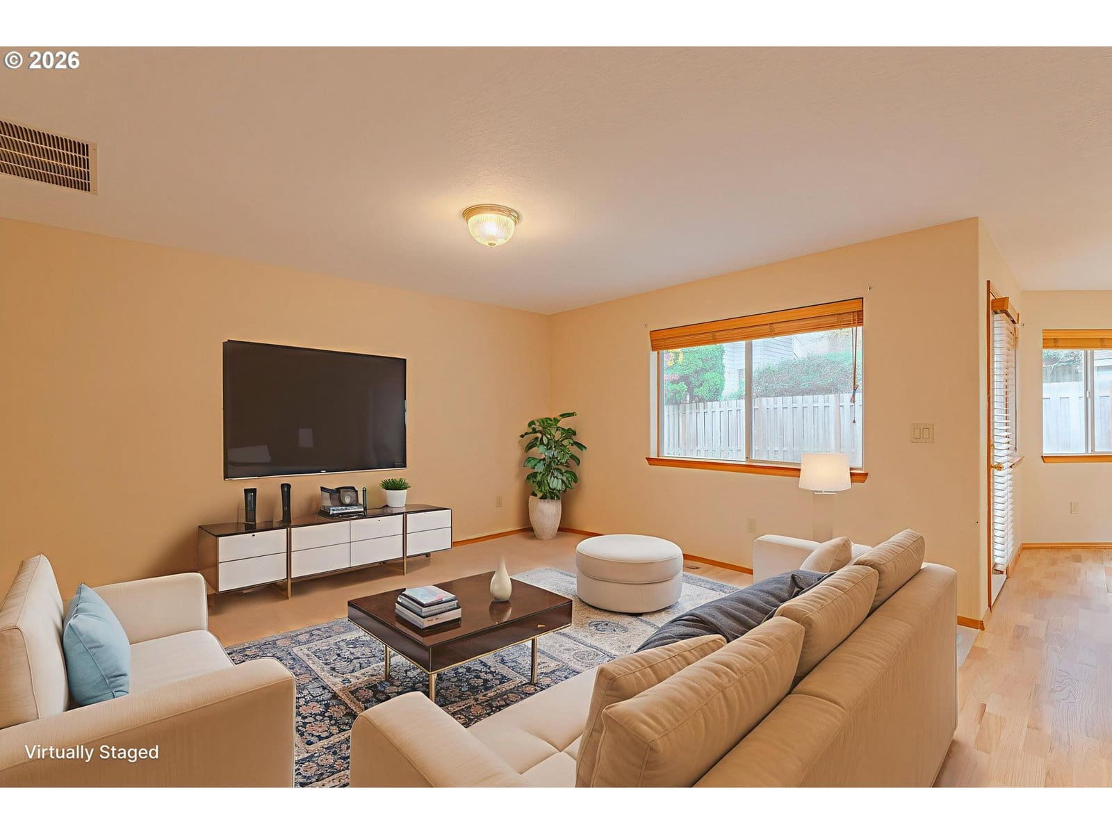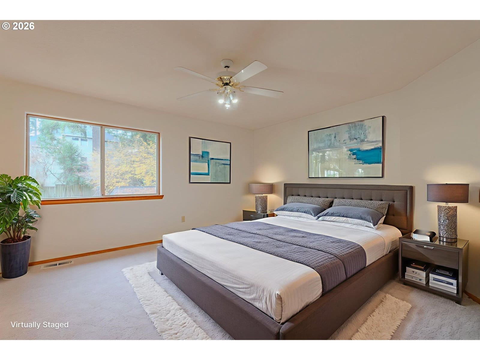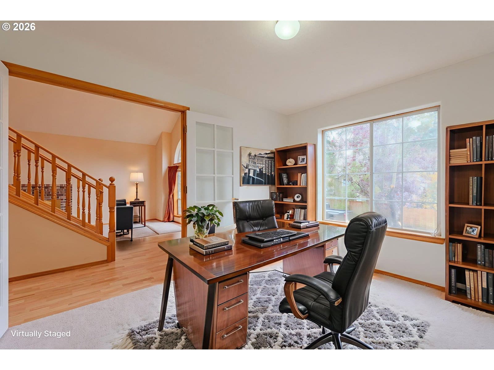 This light-filled home impresses from the moment you step inside, featuring freshly refinished hard-surface flooring, new carpet, and freshly painted bedrooms that bring a crisp, modern feel throughout. Vaulted ceilings, skylights, and abundant windows create a bright, airy atmosphere in every room. With four spacious bedrooms upstairs and a main-level office or fifth bedroom plus a full bath, the flexible layout perfectly suits multi-generational living or work-from-home lifestyles. The refreshed kitchen showcases sleek quartz countertops and updated cabinetry, combining modern style with everyday functionality. Thoughtful storage solutions are found throughout the home, including a unique custom storage design in the oversized tandem garage, offering exceptional organization for tools, gear, and seasonal items while still accommodating multiple vehicles. Enjoy the outdoors in the fully fenced backyard with an irrigation system and plenty of space to relax, garden, or play. Nestled in a quiet cul-de-sac with ample parking and located near top-rated schools, this home delivers the perfect balance of comfort, convenience, and community.