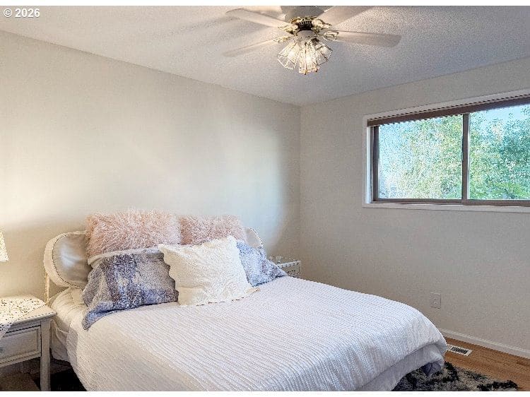 Beautifully maintained one-level ranch in the heart of Aloha with a huge, fully fenced backyard and working hot tub—perfect for entertaining and relaxing year-round. This 3-bedroom, 2.5-bath home features a light-filled layout, wood-burning fireplace, surround sound, and a large bonus room with private entrance and gas fireplace—ideal for guests, multigenerational living, or a home office.Updated kitchen with granite counters, stainless steel appliances, hardwood and mid-century modern parquet floors, attached dining area, and a private primary bedroom with ensuite. Oversized 2-car garage with built-ins, fresh paint, energy-saving attic upgrades, and extra storage. Close to parks, schools, shopping, and transit. **Move-in ready!***