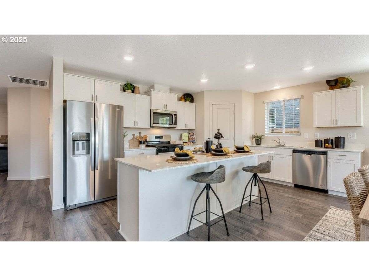 New construction in Salem! The Moreland is a functional one-level floor plan by D.R. Horton that has 1,630 square feet and boasts 3 bedrooms, and 2 bathrooms. The two front bedrooms are connected by a centrally located full bathroom for enhanced convenience. The laundry room is right by the kitchen and has easy access from the garage. The stylish kitchen is completed with stainless-steel appliances, a practical corner pantry, central island, quartz countertops, gas range/oven with a vent hood, inviting you to unleash your culinary creativity. Adjacent to the kitchen, the dining area is effortlessly connected to the expansive living room. This open-concept layout offers tall ceilings and large windows that fill the space with natural light. A centrally located fireplace in the great room adds style and warmth. The primary bedroom offers a walk-in closet, an en suite bathroom with a double vanity. Receive a closing cost credit with use of builder’s preferred lender, reach out for more information. Sales office hours are 9:30am – 4:30pm daily. Be a part of this wonderful community at East Park Village! Photos are representative of plan only and finishes may vary as built.