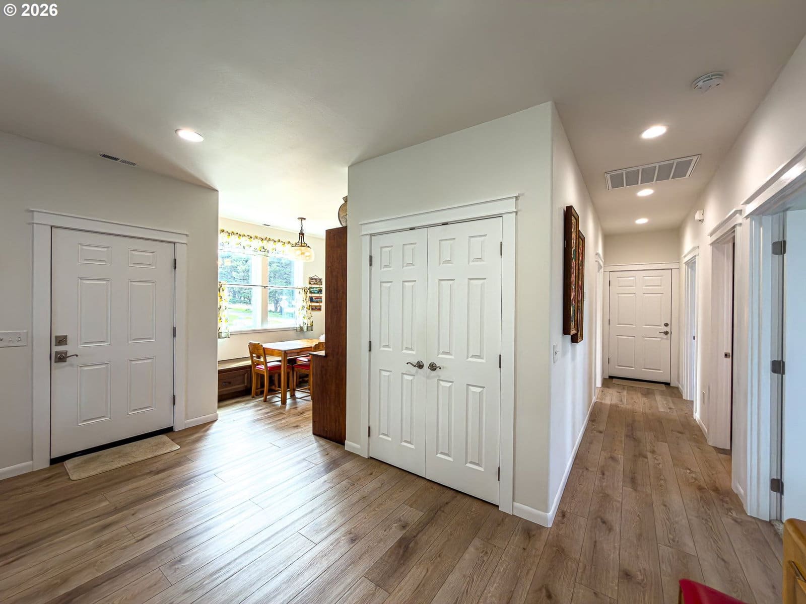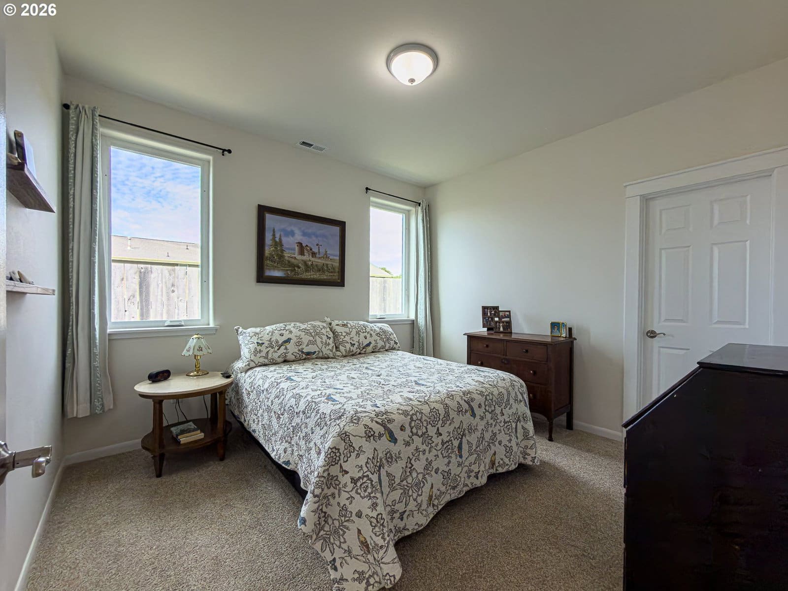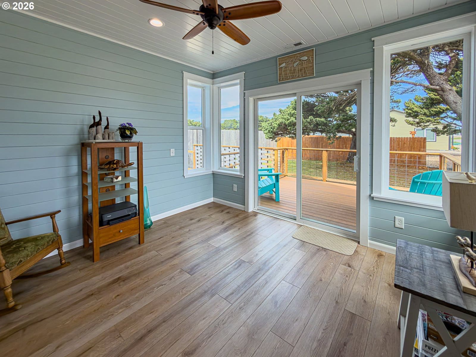 Experience coastal living at its finest at 3214 Lincoln Ave SW in Bandon, Oregon, where this impeccably maintained, custom-built single-level home offers effortless comfort just moments from public beach access in a sought-after neighborhood of newer homes and welcoming neighbors. Designed for easy living, the residence pairs low-maintenance appeal with exceptional craftsmanship throughout, from the inviting front porch to a light-filled living room featuring a stone-stacked fireplace that flows seamlessly into a beautiful custom sunroom and out to a composite deck, ideal for year-round enjoyment. The primary suite features a thoughtfully appointed ensuite with a granite countertop, built-in linen cabinetry, and a stunning tiled walk-in shower, while the second bedroom is conveniently located near a well-appointed guest bath with granite finishes and another elegant tiled walk-in shower. The sparkling kitchen impresses with slab granite counters, a gas cooktop, a generous walk-in pantry, and included appliances. A double car garage, efficient heat pump heating, LVP flooring throughout and a spacious laundry room complete with washer & dryer add to the interior amenities. Additional highlights include a sunny south-facing concrete patio, lush landscaping with a charming clover lawn and convenient concrete walkways surrounding the home, This flawless home offers a refined blend of style, function, and coastal proximity, creating a place you will truly love coming home to. Make sure to watch the Video Tour!