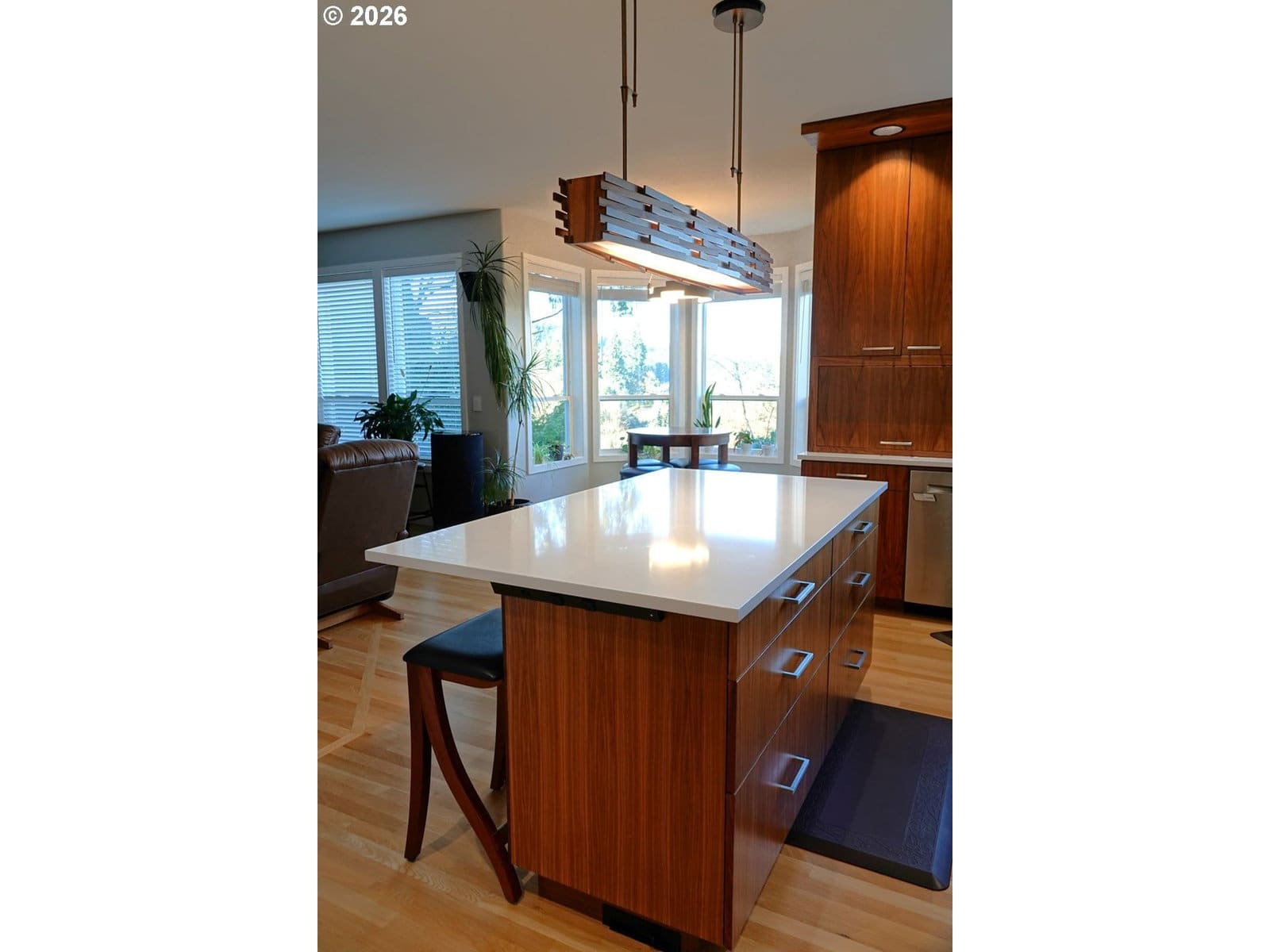 Beautiful home in the River’s Edge Neighborhood of Willamette in West Linn, with unrivaled sunset and seasonal Tualatin River views. Tualatin River Open Space behind the home insures you will not have neighbors behind you. If you are looking for a built-in community, this home is for you. All the neighbors are friendly and look out for each other.Remodeled in 2020 with new Custom Kitchen, Great Room, Family Room, and Powder Room. The kitchen is a cook’s dream, complete with a BlueStar 36” Range with 6 burners and convection gas oven, Vent A Hood, deep single stainless steel undermount sink, and custom cabinets. Custom cabinets in the kitchen include ample pantry and storage spaces, and pull-out drawers for easy access. Fun touches include a knife and spice drawer, and an appliance garage. The great room has built in shelves, and cabinets with pull-out drawers. Granite and quartz grace the two gas fireplaces of the home. A local artist designed and built the cabinets in all remodeled rooms, the kitchen island light fixture, and the mantels on both fireplaces. Oak floors on the first floor were sanded and refinished during the remodel. Master bedroom upstairs is situated at the back of the house and includes a sitting nook to take in the views.