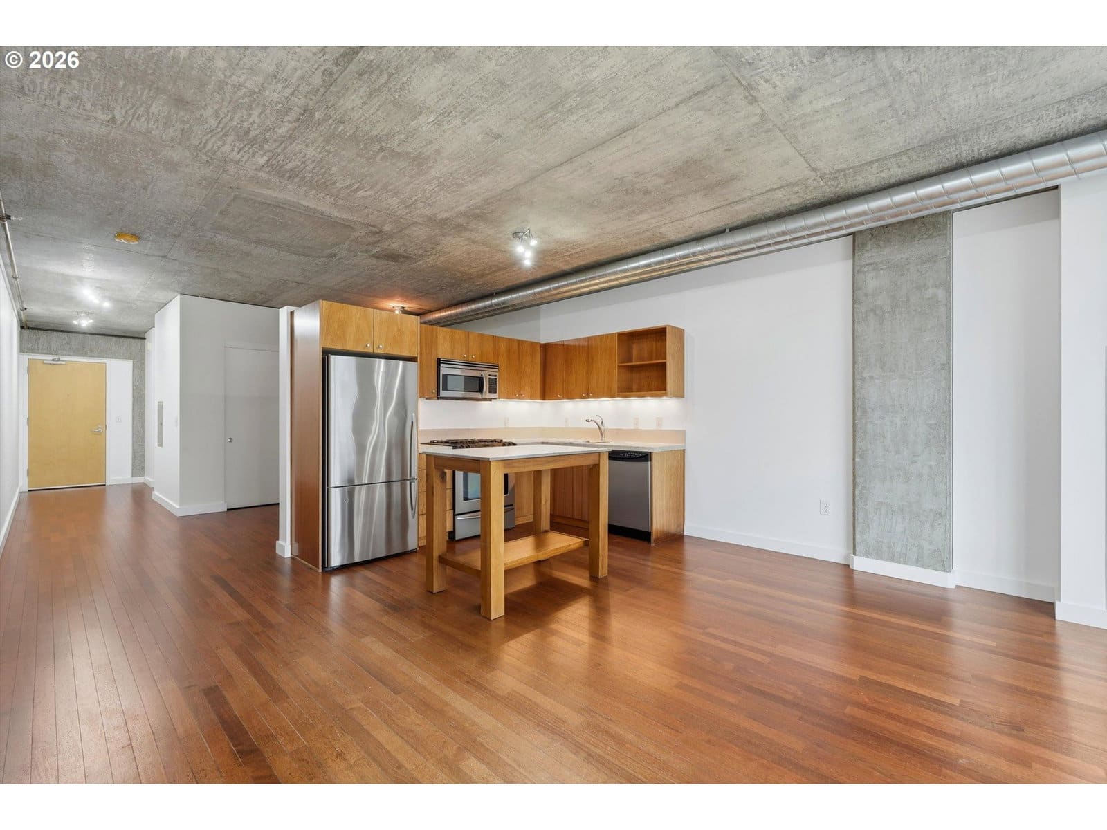 Enjoy west-facing city, sunset, and stadium views at this modern 14th-floor loft condo next to Providence Park, home of the Timbers & Thorns. Move in ready with fresh paint and new LED lighting. This home features hardwood floors, stainless steel appliances and an in-unit washer & dryer, and don't forget the storage unit in the secure garage. All appliances are included for your convenience. Save with low HOA fees that cover the cost of water, sewer, gas, trash, security, and concierge services. You only pay for electric and internet. With a stellar 99 walk score, you can easily stroll to Downtown, The Pearl, NW 21st/23rd Ave, Washington Park, the International Rose Test Garden, and Japanese Garden. Just one block from Max/Bus lines so it’s easy to get around town. You’ll love the energy efficiency of this LEED Gold Certified building.
