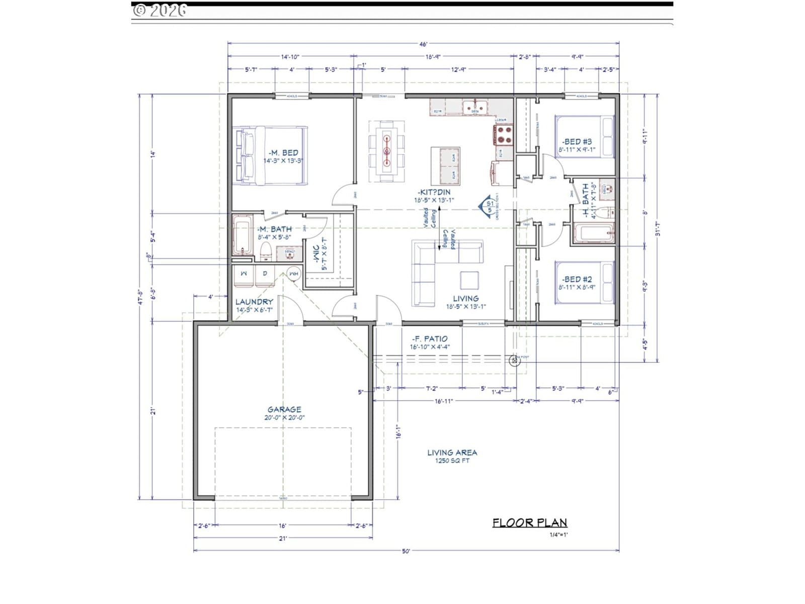 3 beds · 2 baths · 1,250 SQFT