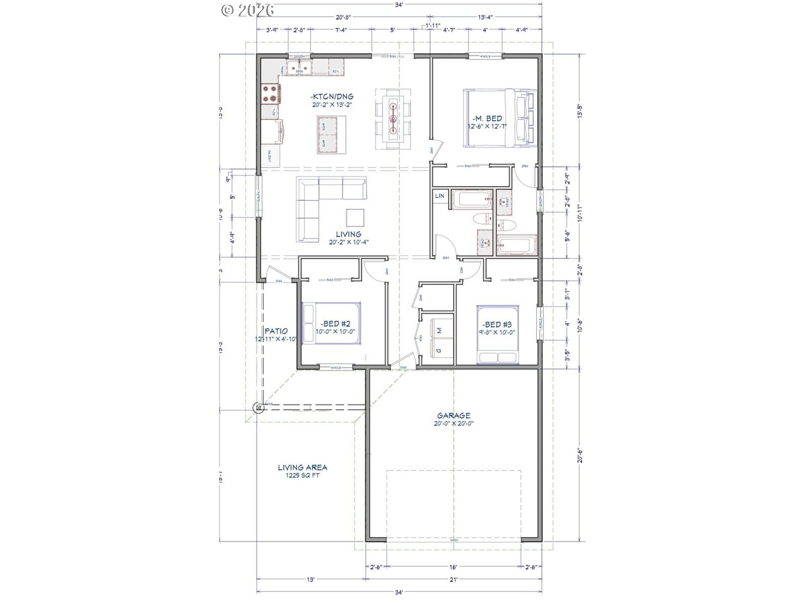 3 beds · 2 baths · 1,225 SQFT